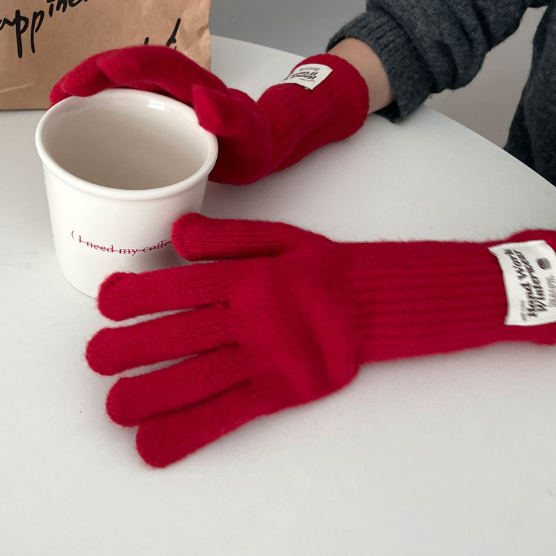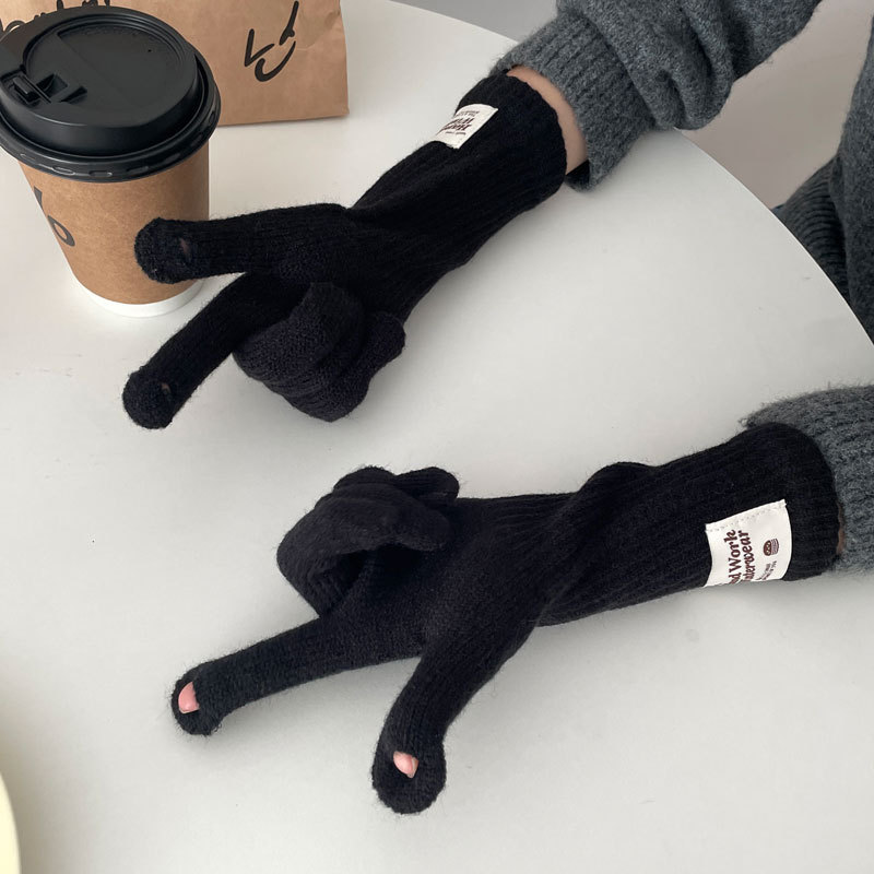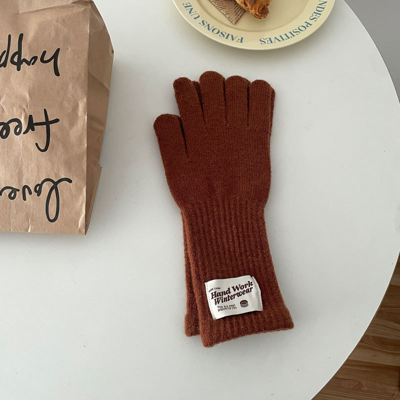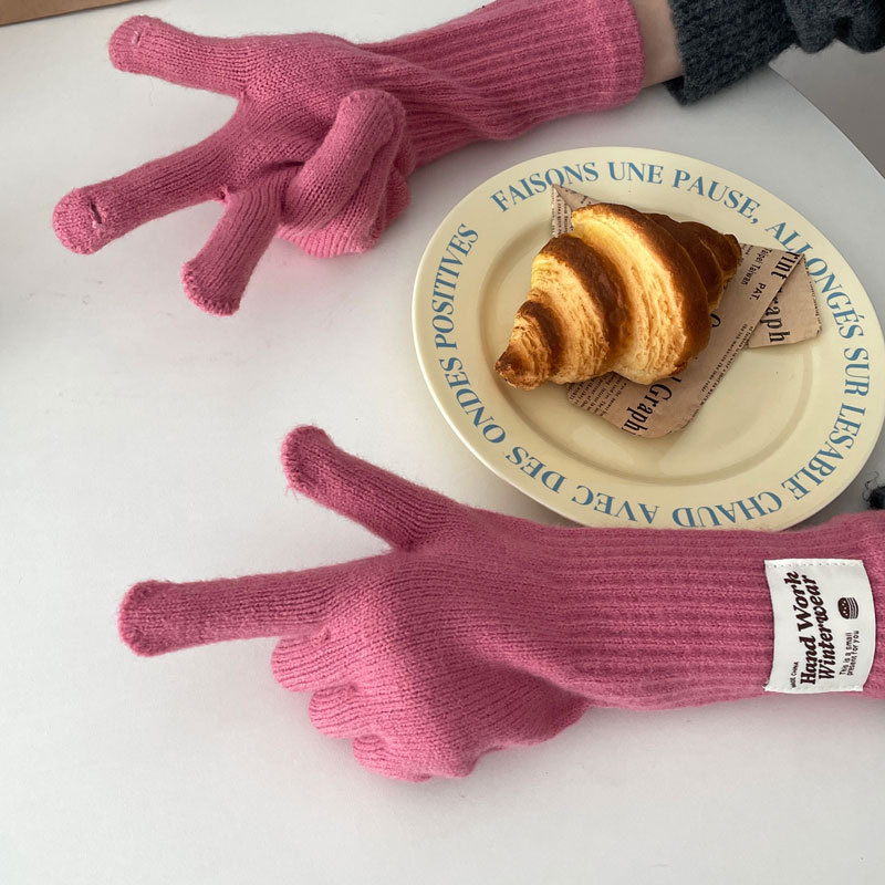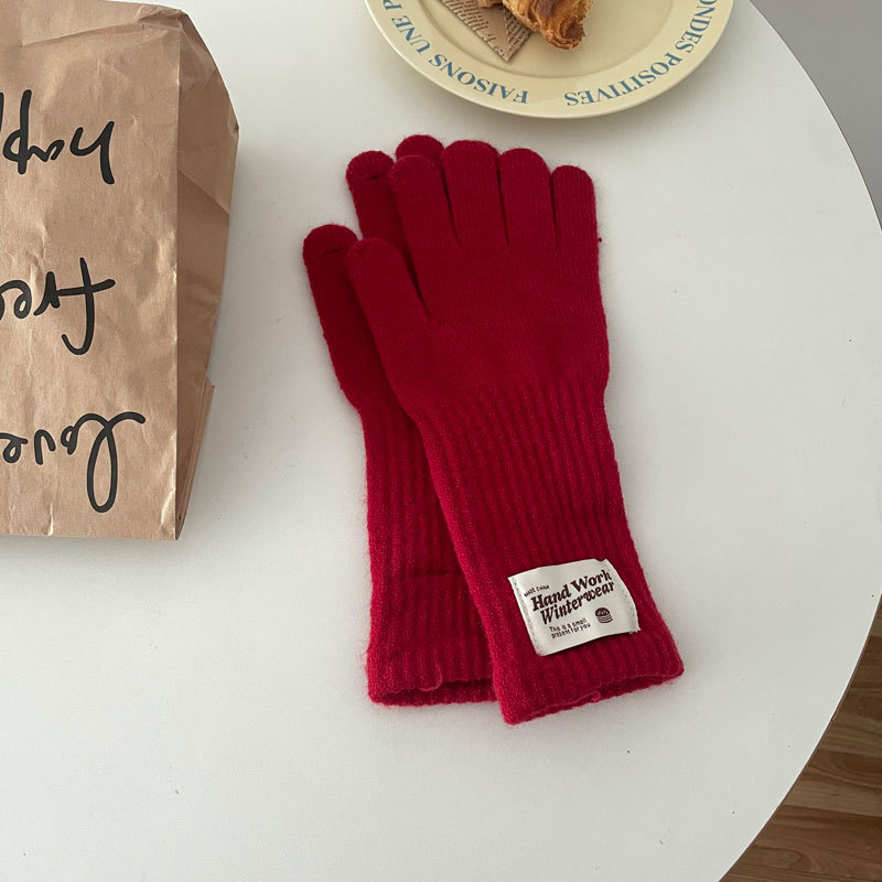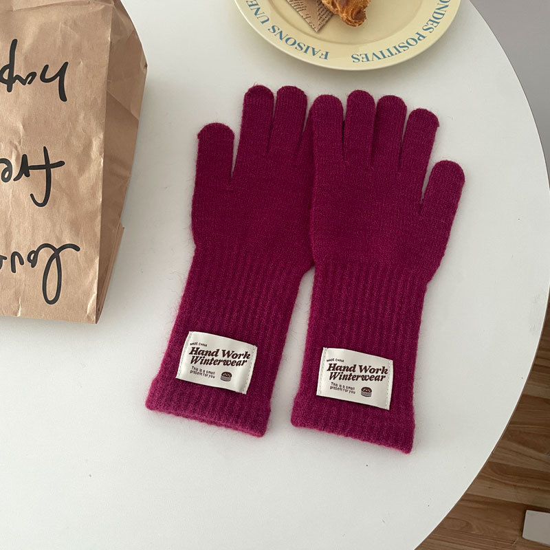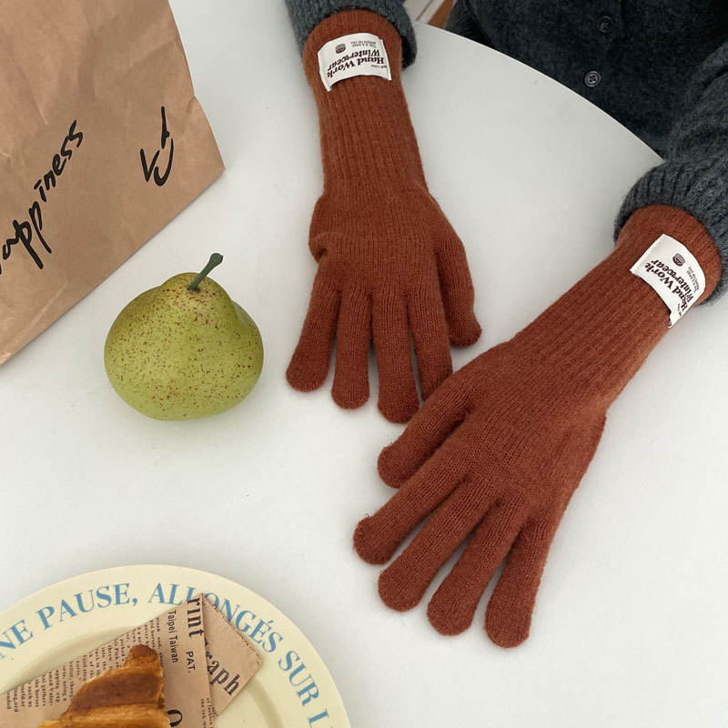 24 가을과 겨울 새로운 단색 다섯 손가락 손가락 장갑 여성의 터치 스크린 겨울 따뜻한 니트 장갑을 타고스토어 가기