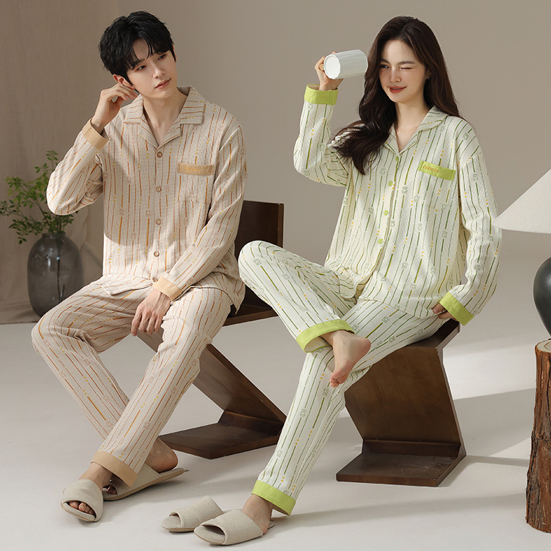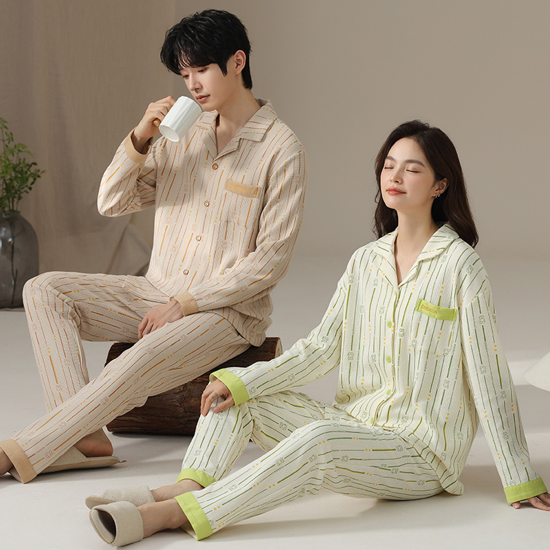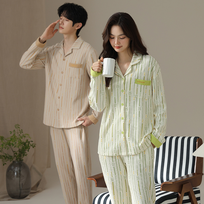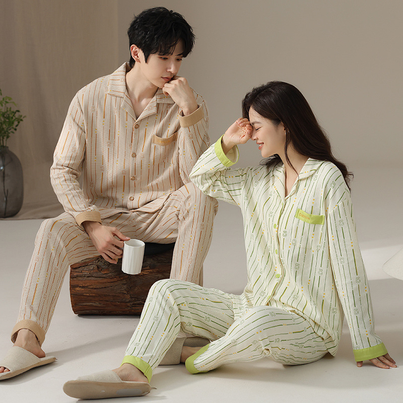 런마 커플 와플 코튼 긴 소매 봄과 가을 남성과 여성을위한 새로운 캐주얼 홈 의류는 세트 밖에서 착용 할 수 있습니다 도매 수 있습니다스토어 가기