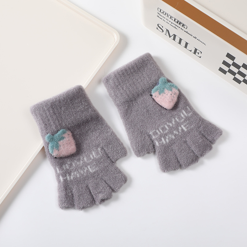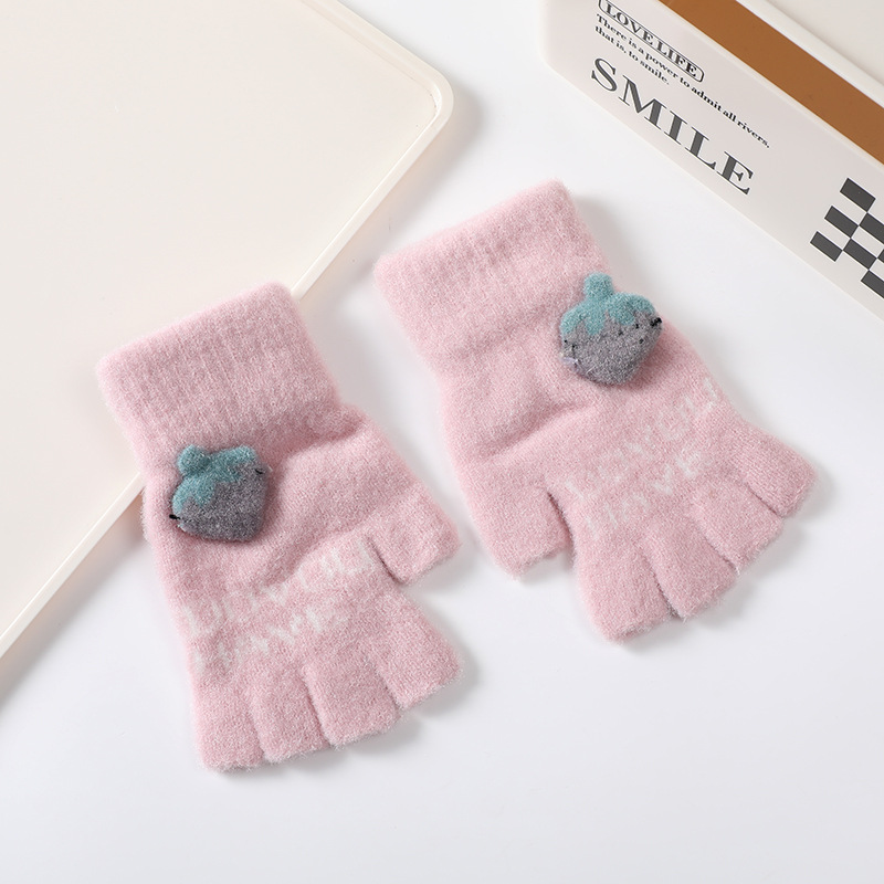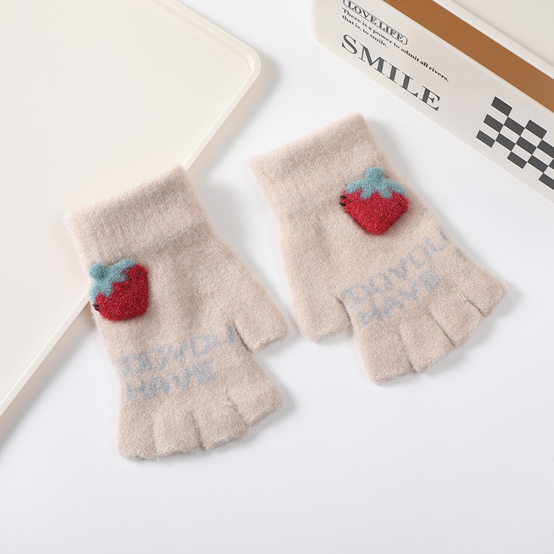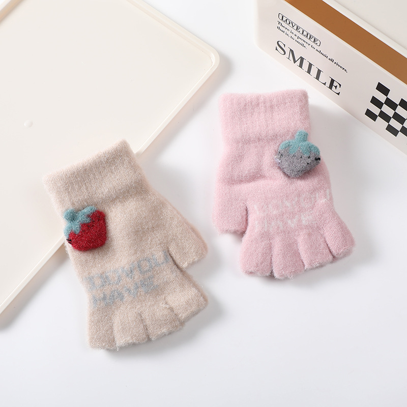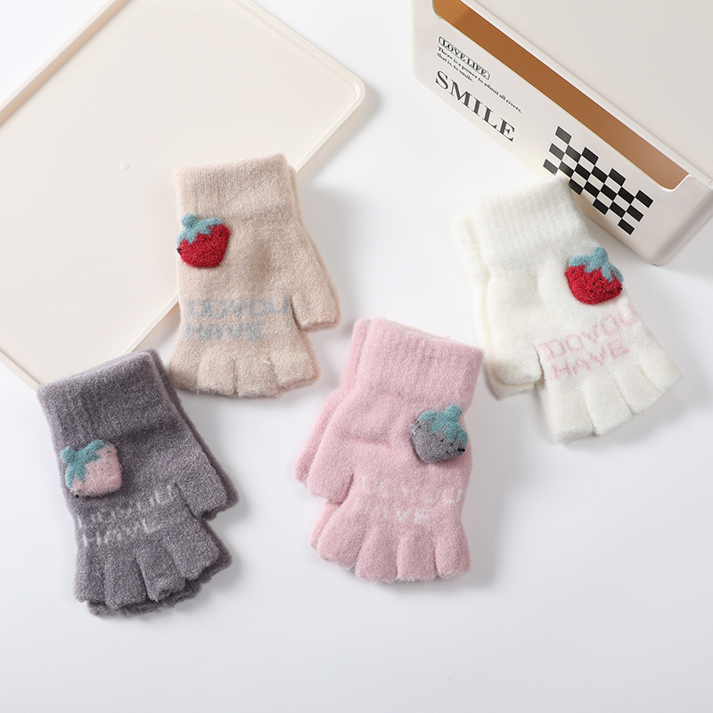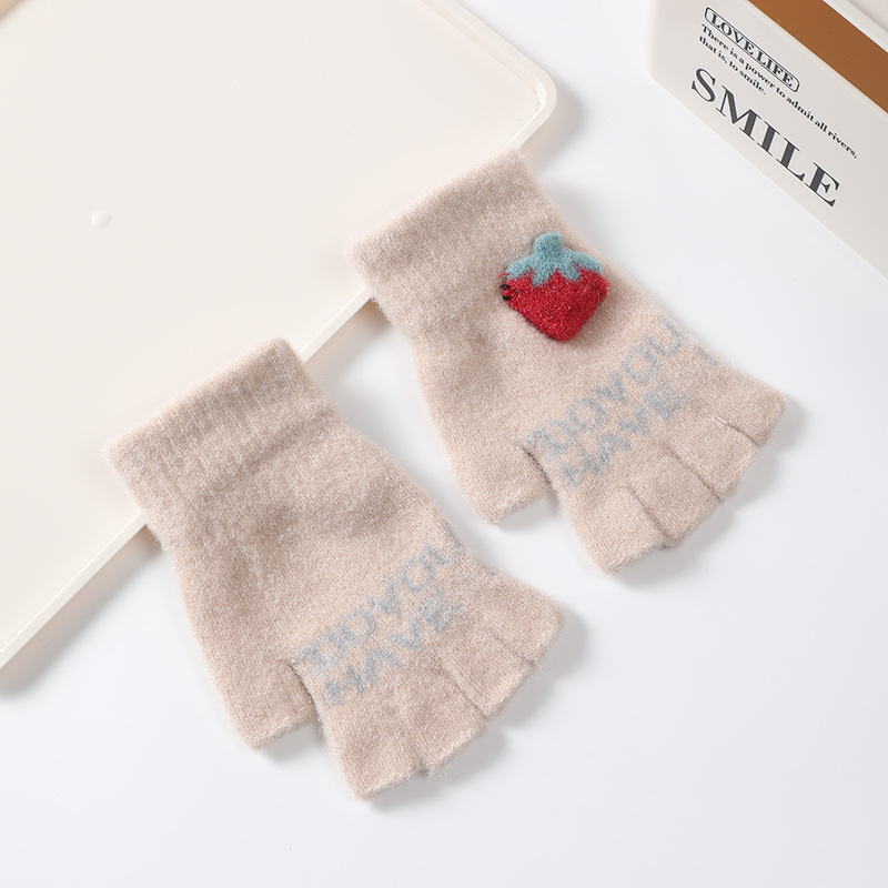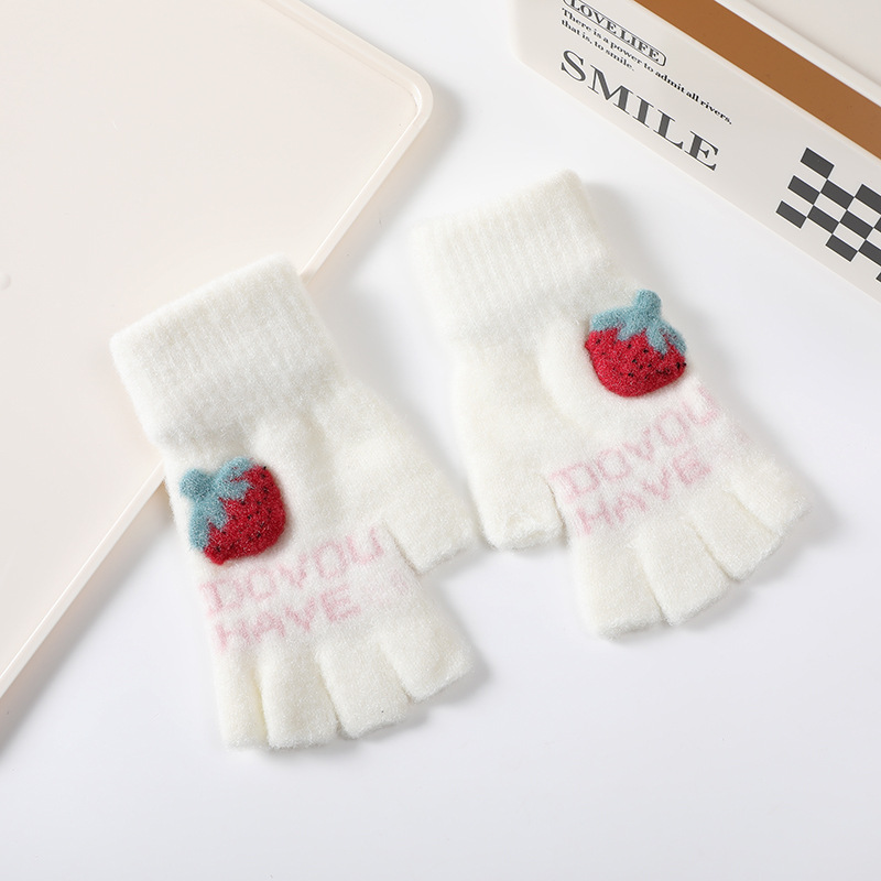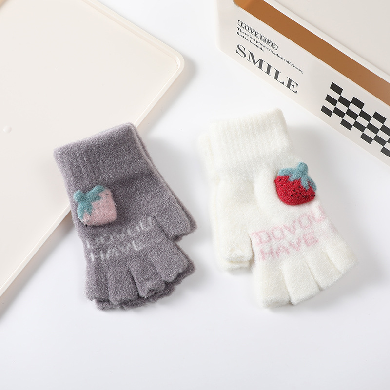 장갑 여성의 겨울 따뜻한 딸기 터치 스크린 한국 스타일 귀여운 학생의 기모 감기 방지 봉제 니트 다섯 손가락 장갑스토어 가기