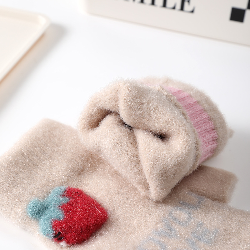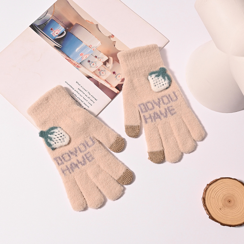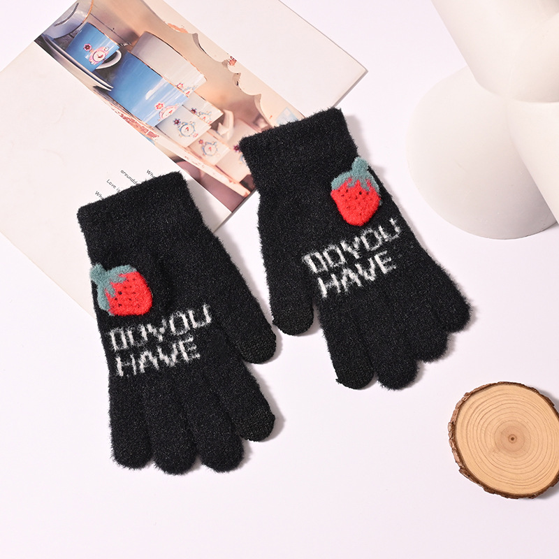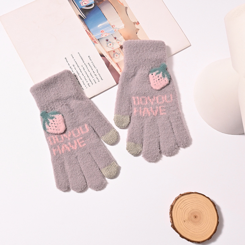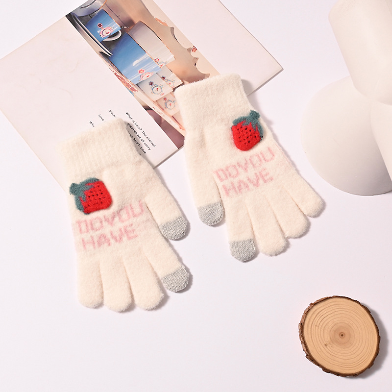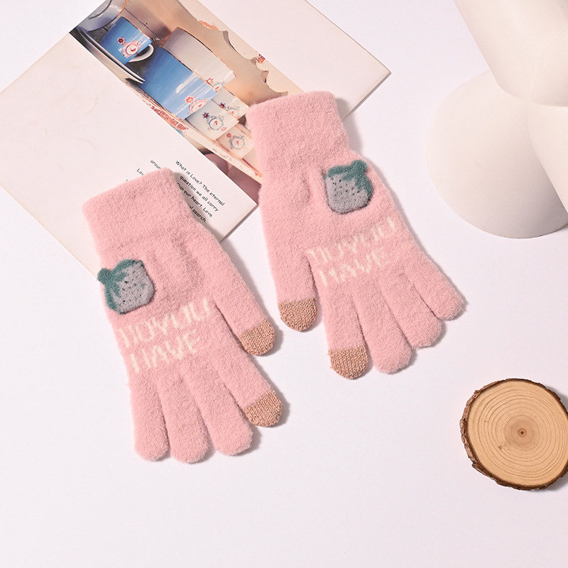 장갑 여성의 겨울 따뜻한 딸기 터치 스크린 한국 스타일 귀여운 학생의 기모 감기 방지 봉제 니트 다섯 손가락 장갑