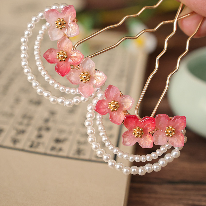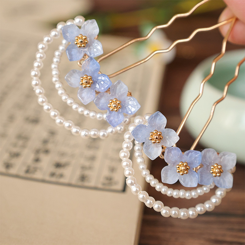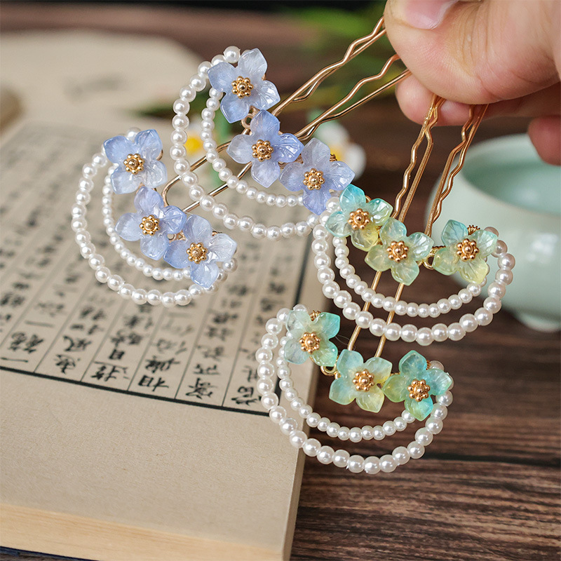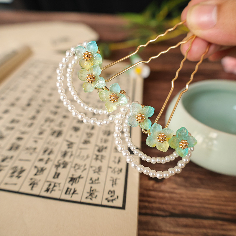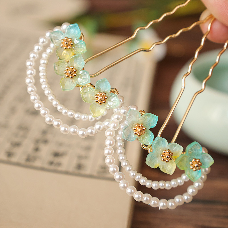 작은 신선한 꽃 머리 머리 머리 쌍 헤어핀 골동품 한후 그라디언트 작은 꽃 U 자형 헤어핀 디스크 머리 보유 머리 장식 보석스토어 가기