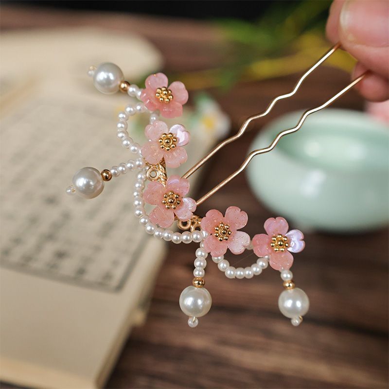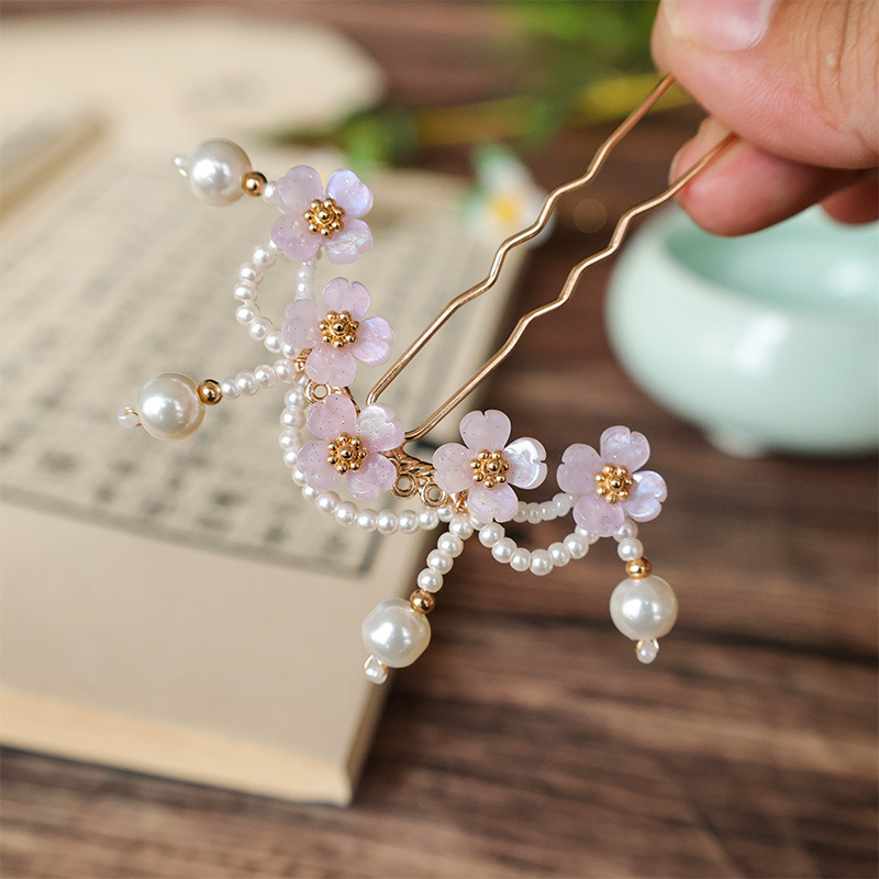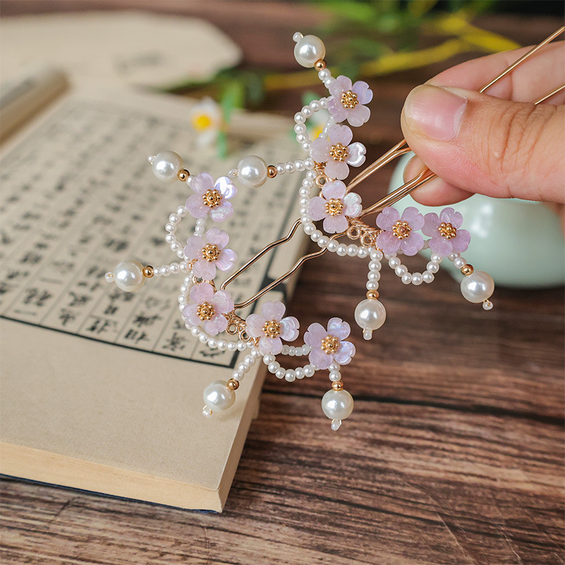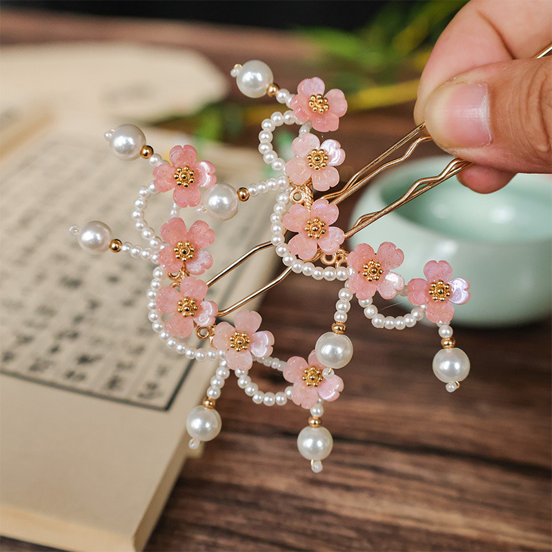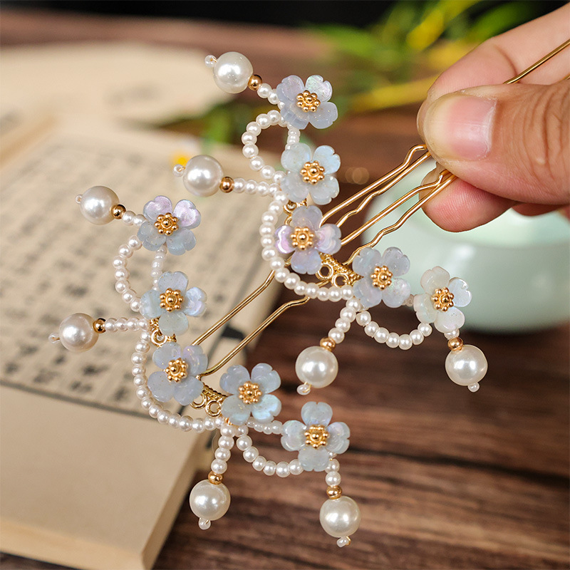작은 신선한 꽃 머리 머리 머리 쌍 헤어핀 골동품 한후 그라디언트 작은 꽃 U 자형 헤어핀 디스크 머리 보유 머리 장식 보석스토어 가기