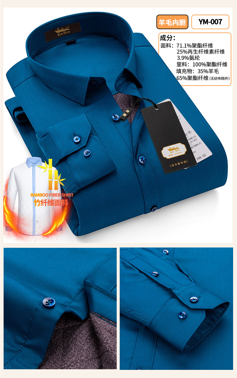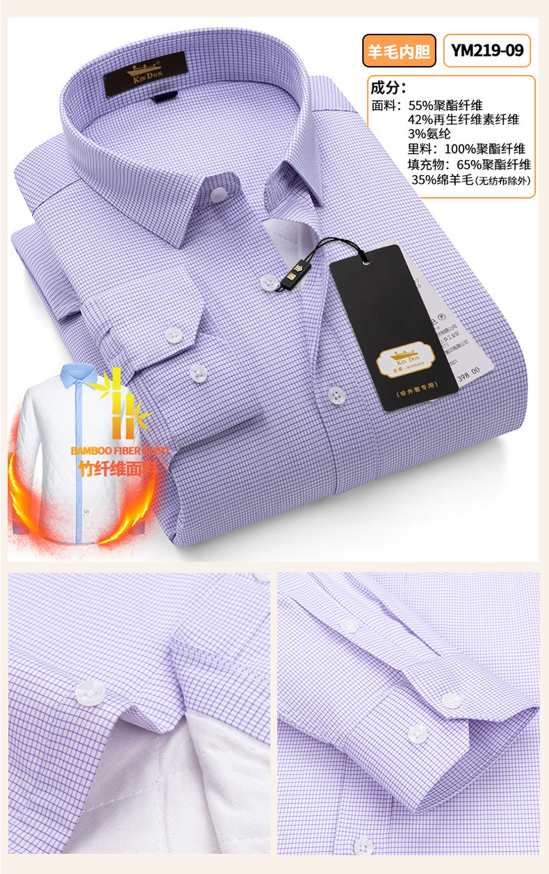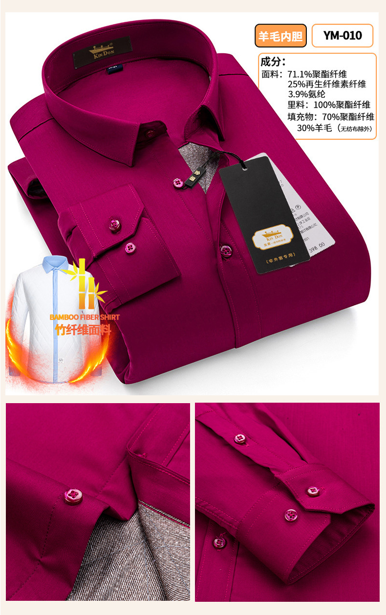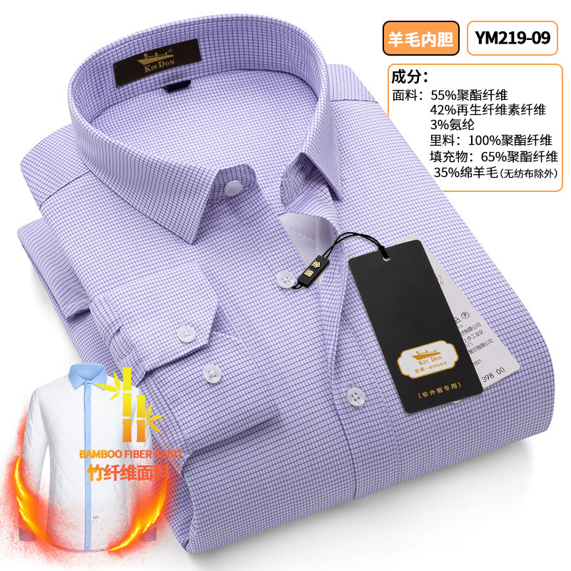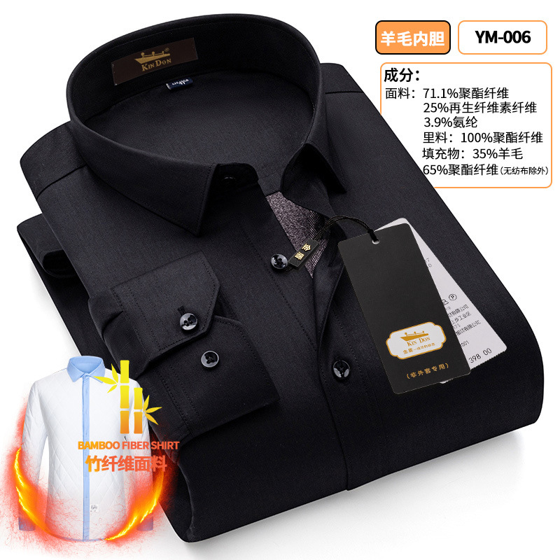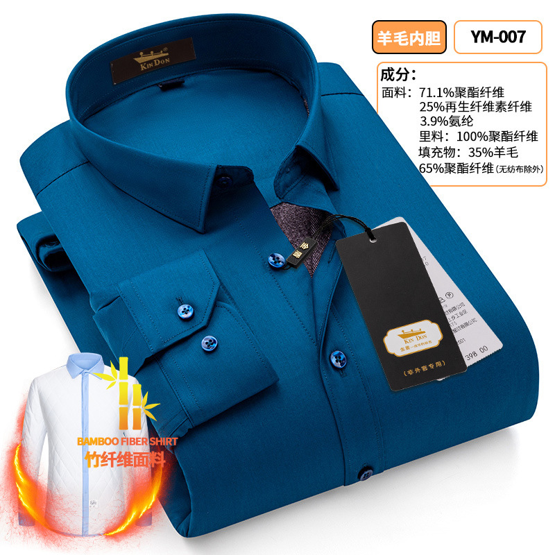 황금 방패 양모 스트레치 남자의 따뜻한 셔츠 두꺼운 기모 대나무 섬유 겨울 사업 캐주얼 다림질 셔츠스토어 가기
