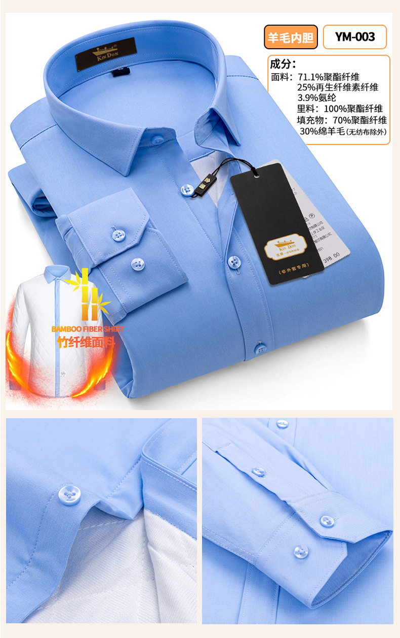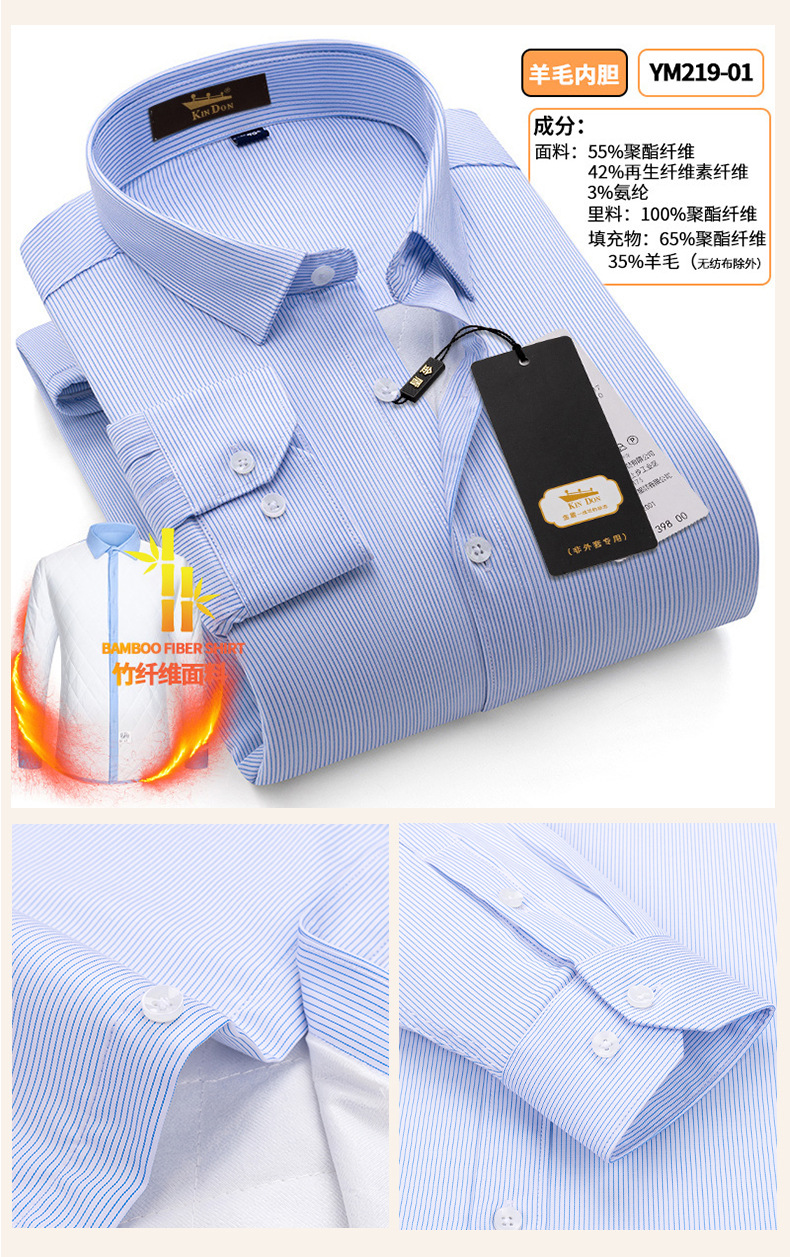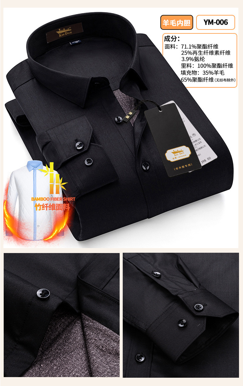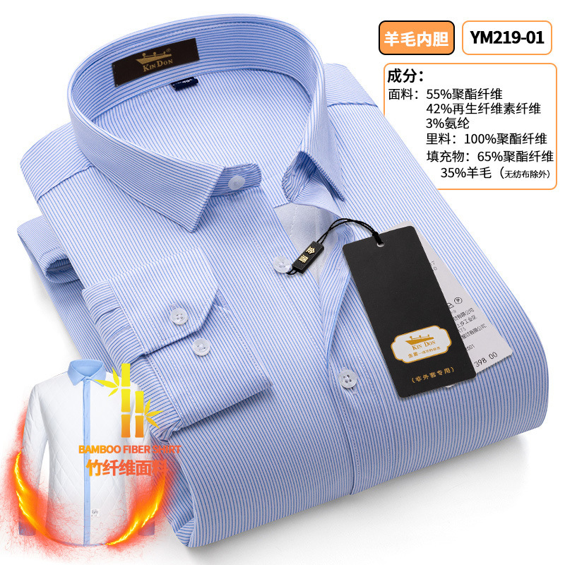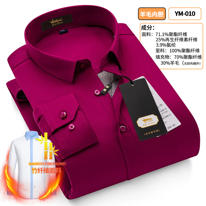 황금 방패 양모 스트레치 남자의 따뜻한 셔츠 두꺼운 기모 대나무 섬유 겨울 사업 캐주얼 다림질 셔츠스토어 가기