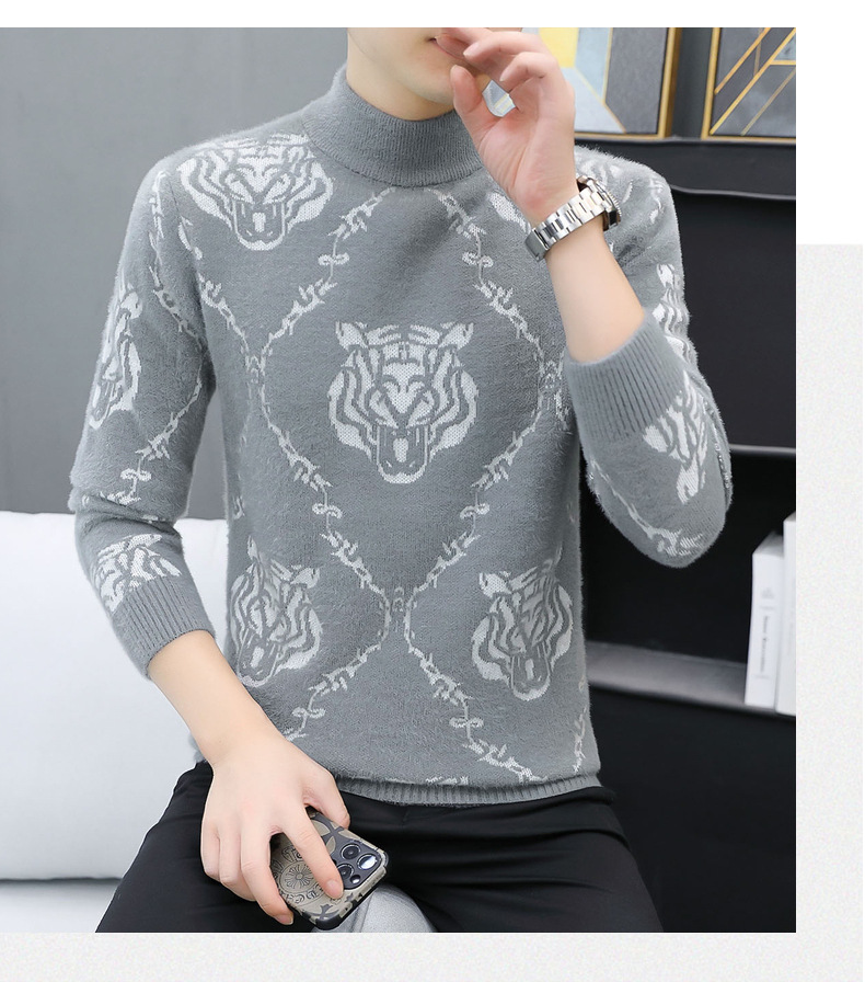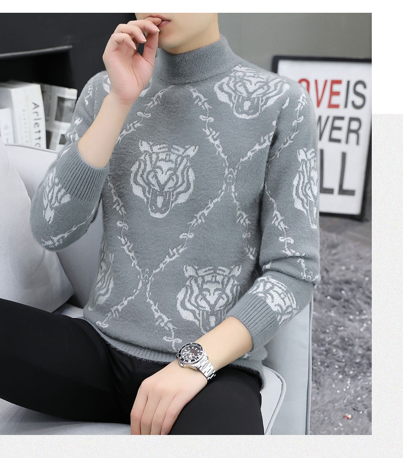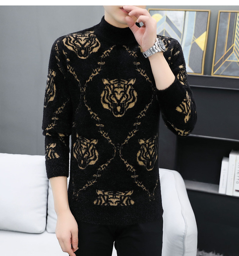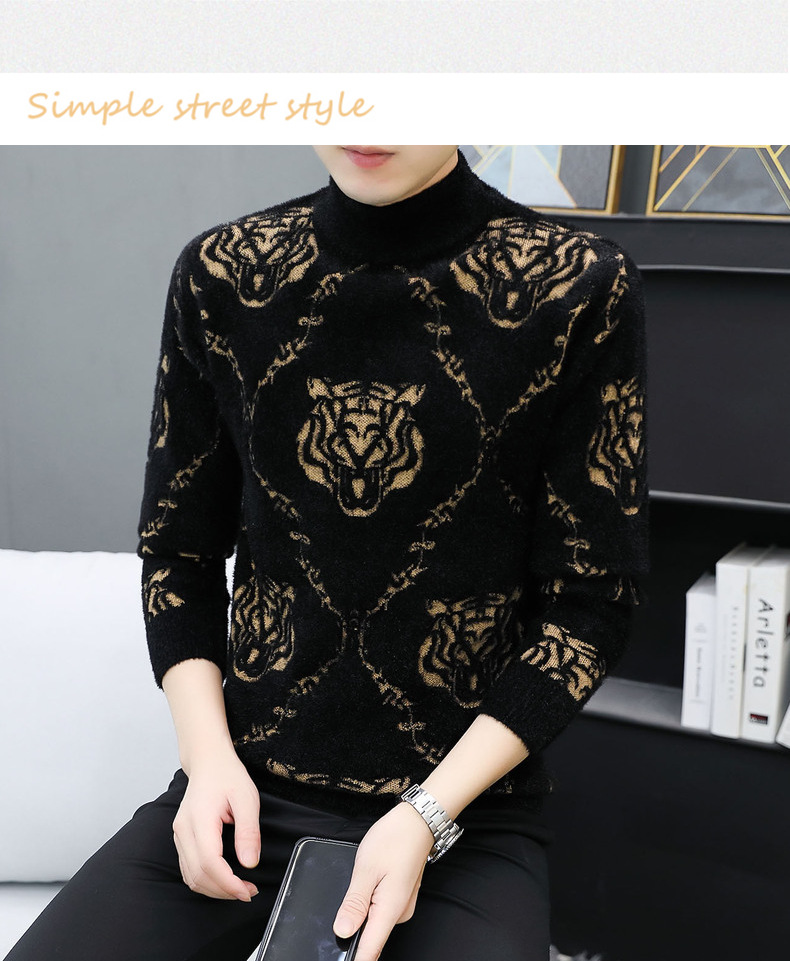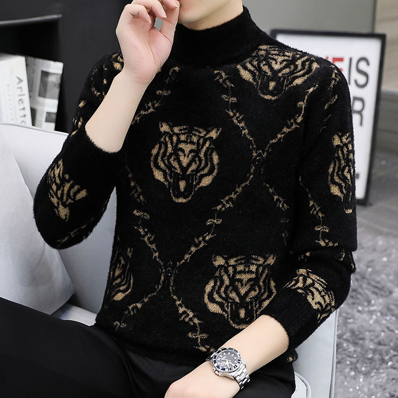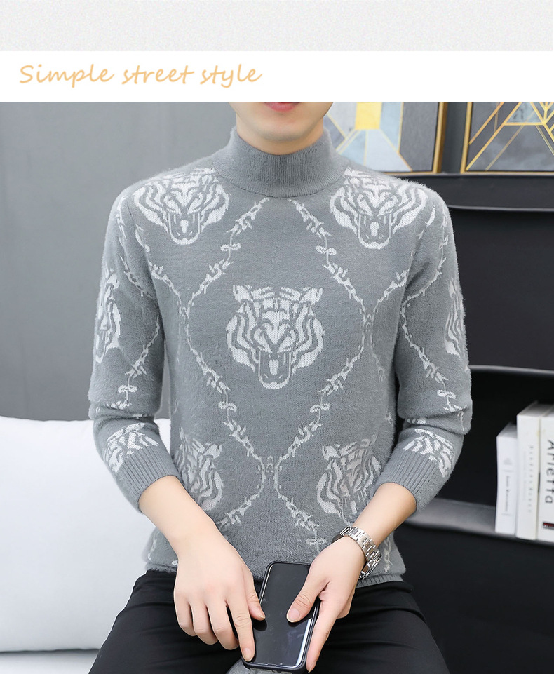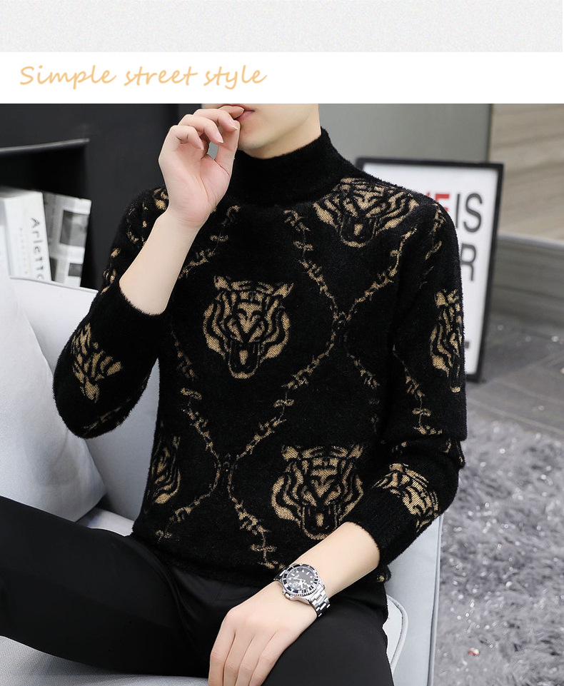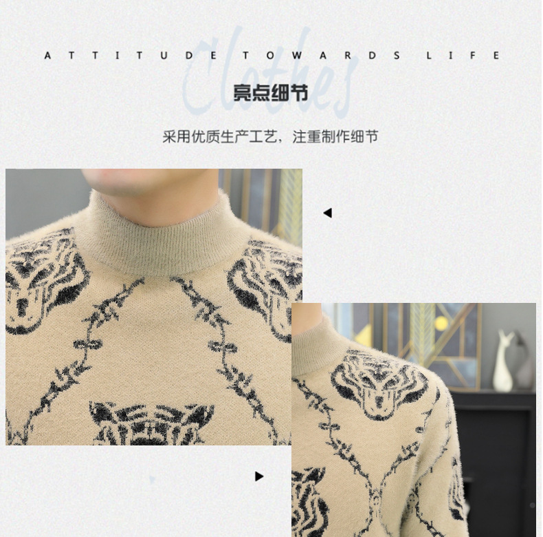 고급 하프 터틀넥 스웨터 남자 겨울 패션 새로운 따뜻한 니트웨어 남자 캐주얼 베이스 자카드 남자 스웨터스토어 가기