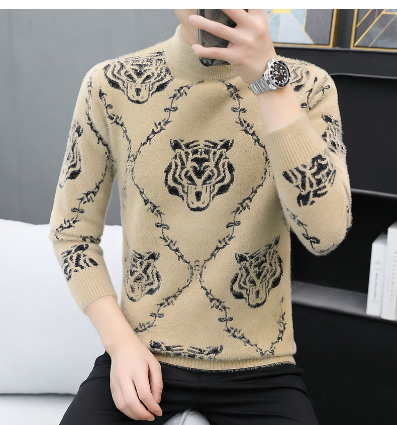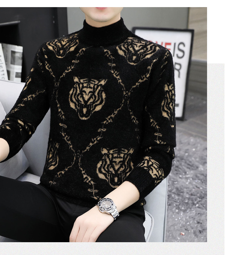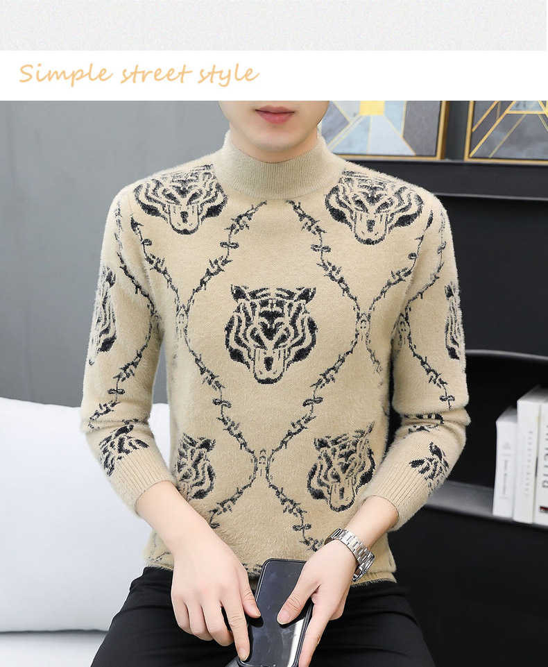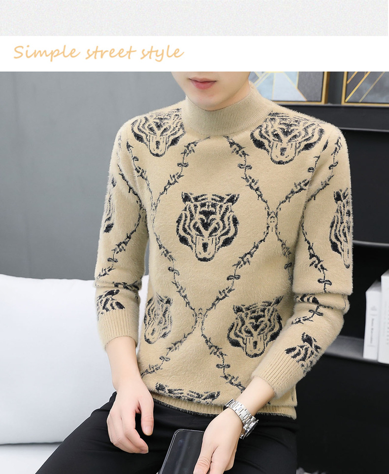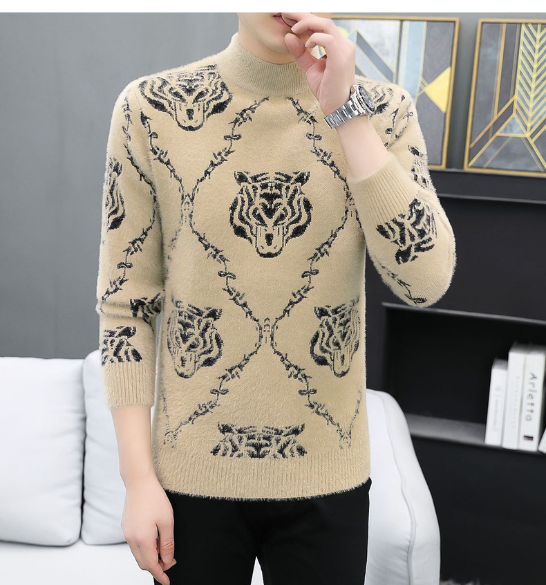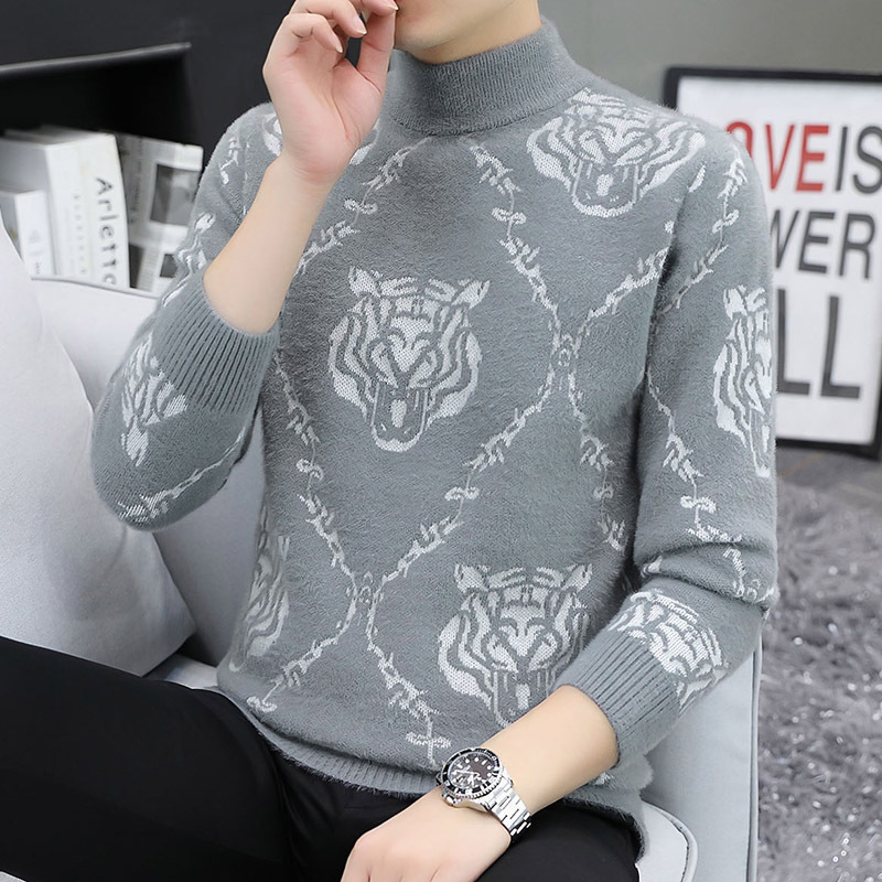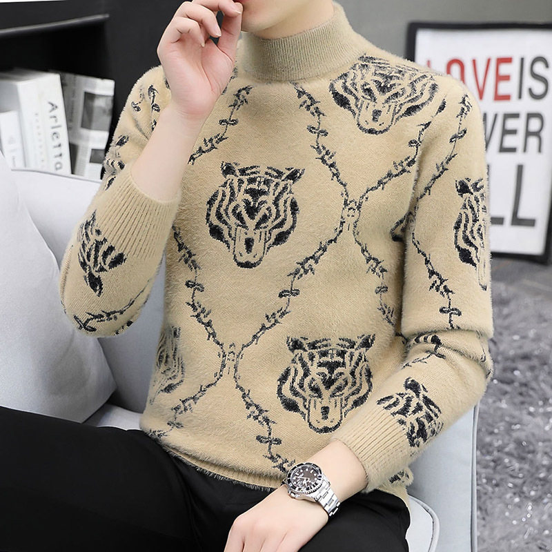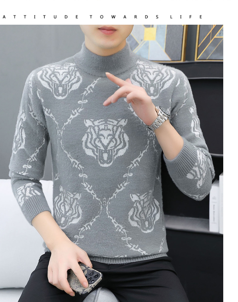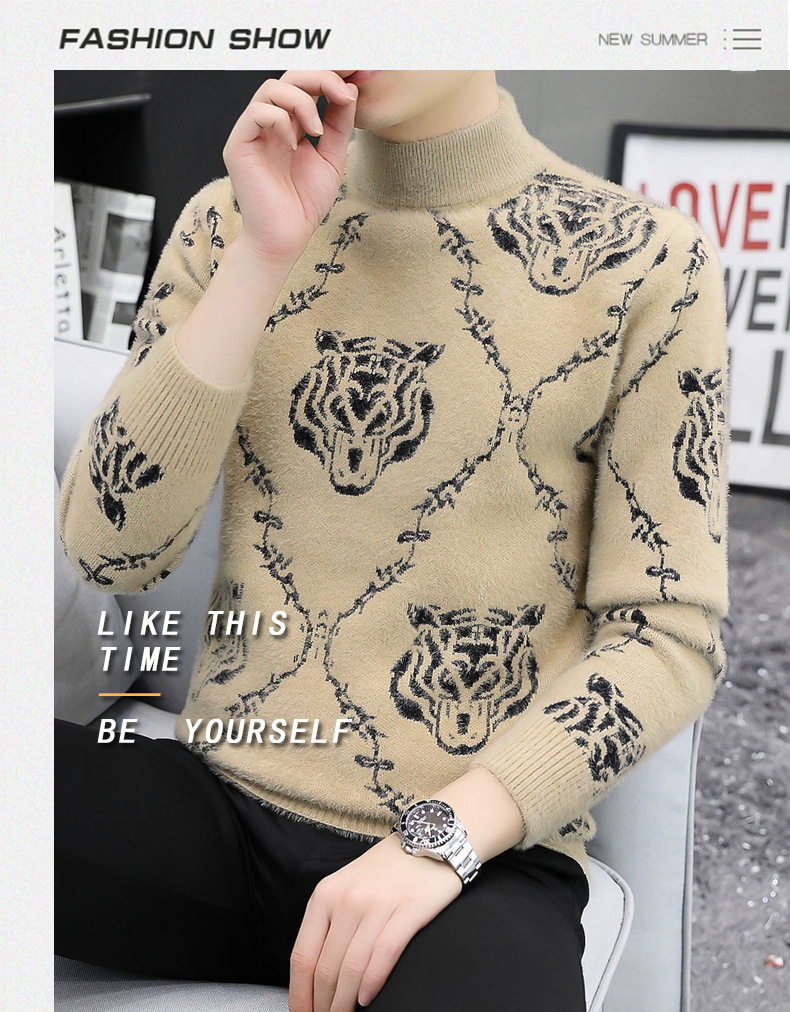 고급 하프 터틀넥 스웨터 남자 겨울 패션 새로운 따뜻한 니트웨어 남자 캐주얼 베이스 자카드 남자 스웨터스토어 가기