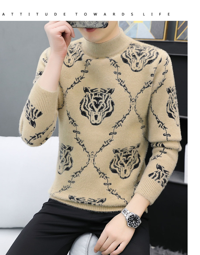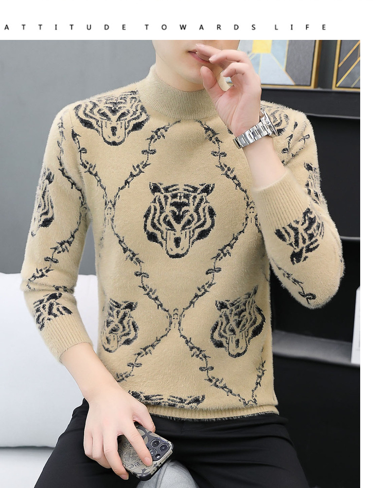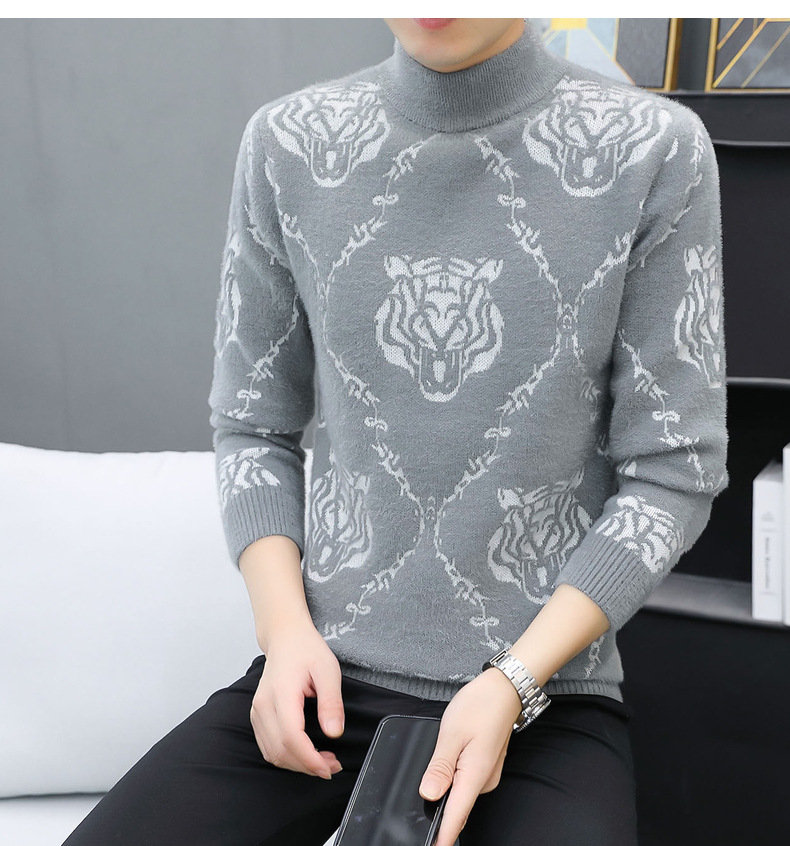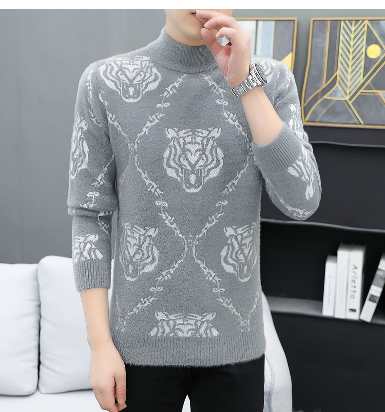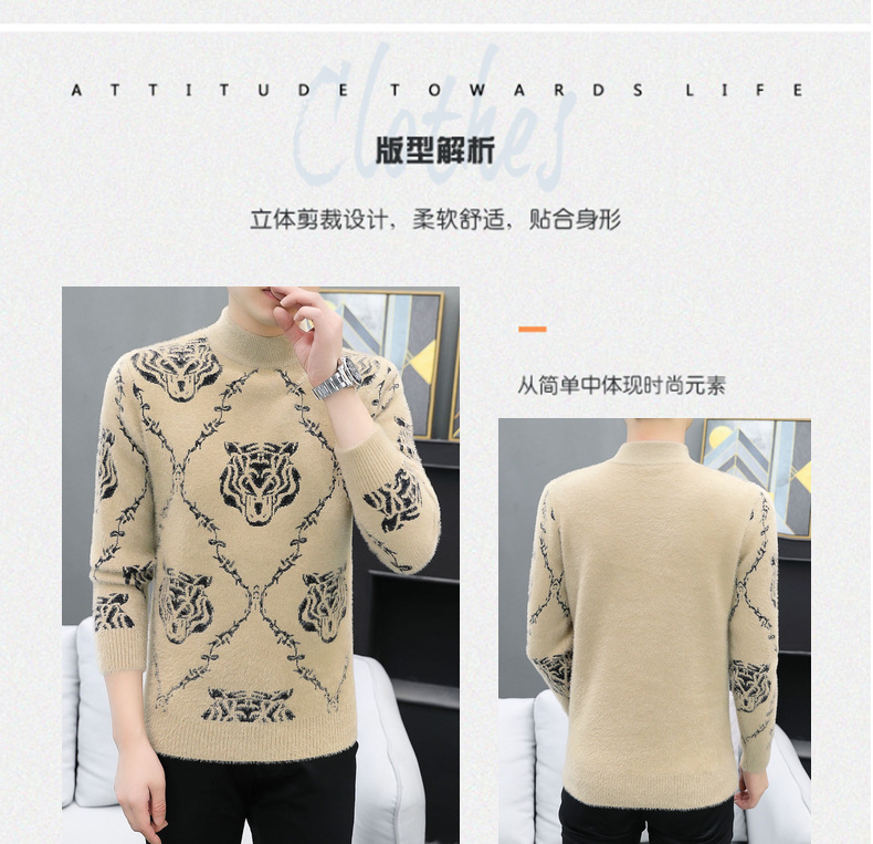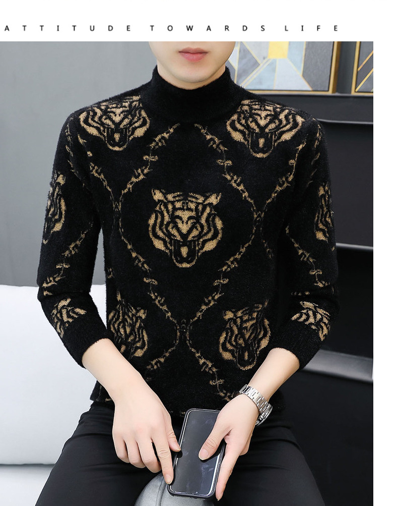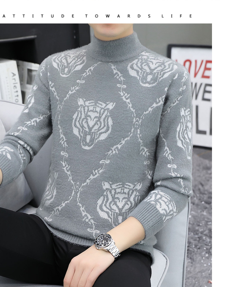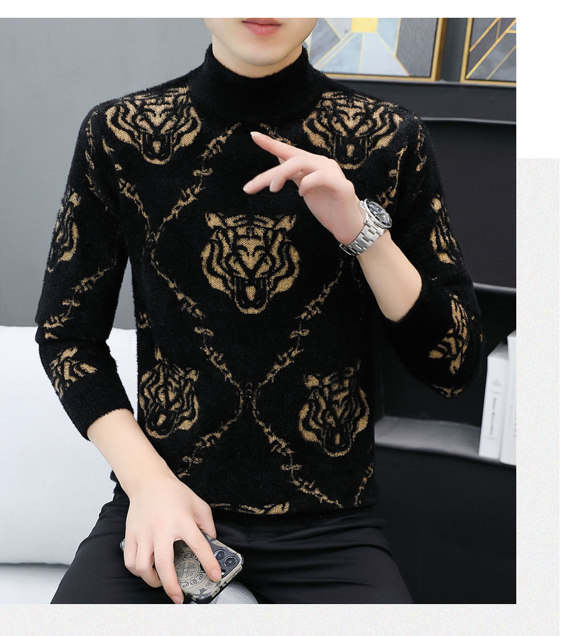 고급 하프 터틀넥 스웨터 남자 겨울 패션 새로운 따뜻한 니트웨어 남자 캐주얼 베이스 자카드 남자 스웨터스토어 가기