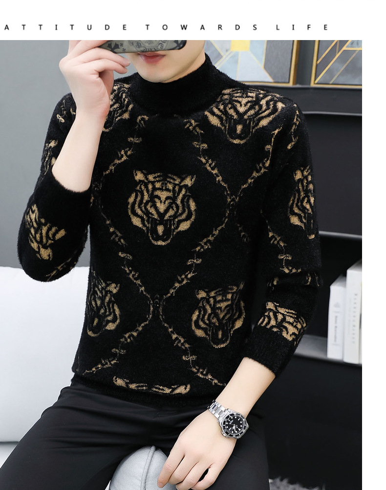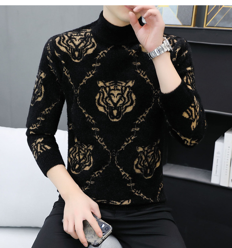 고급 하프 터틀넥 스웨터 남자 겨울 패션 새로운 따뜻한 니트웨어 남자 캐주얼 베이스 자카드 남자 스웨터
