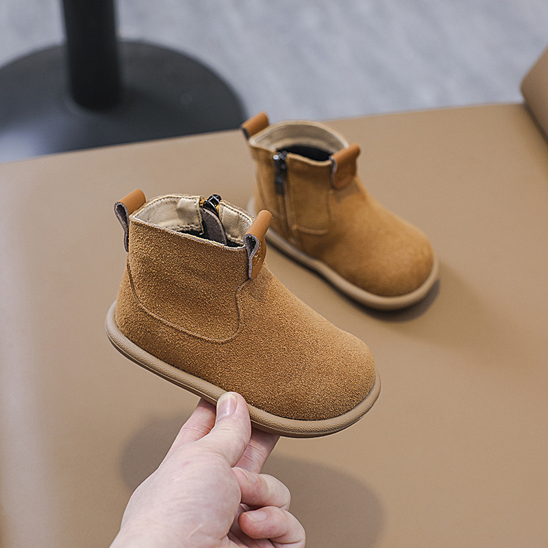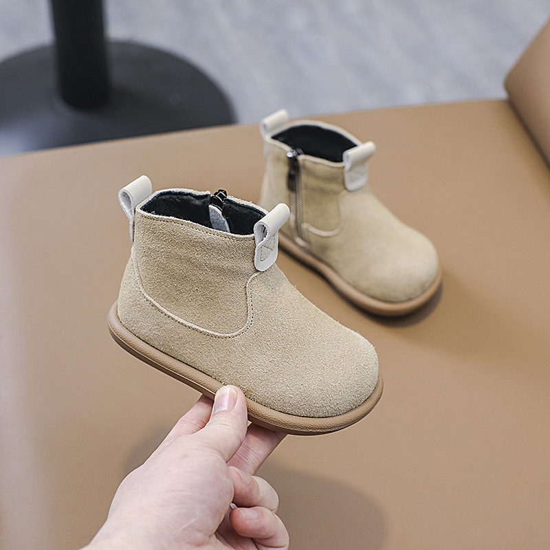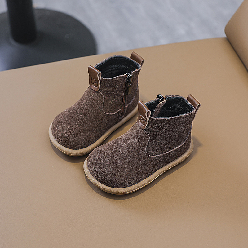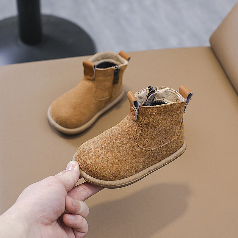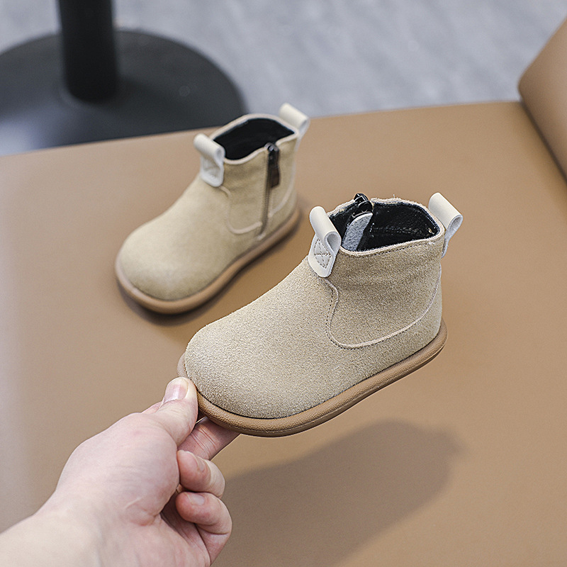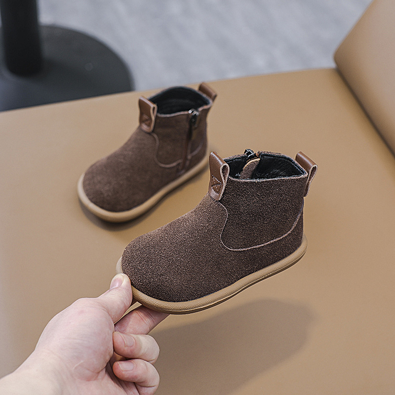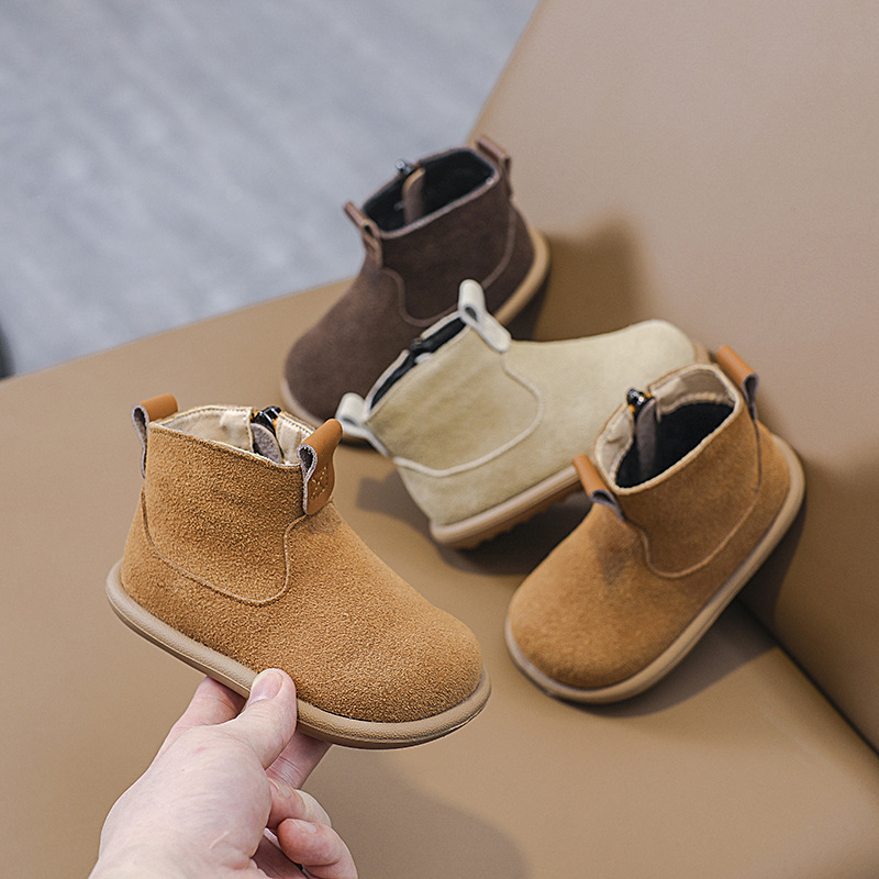 가을과 겨울 소녀 프로스트 가죽 사이드 지퍼 쇼트 벨벳 부츠 영국 스타일 베이비 마틴 부츠 올 매치 편안한 부드러운 밑창 남성용 코튼 부츠스토어 가기