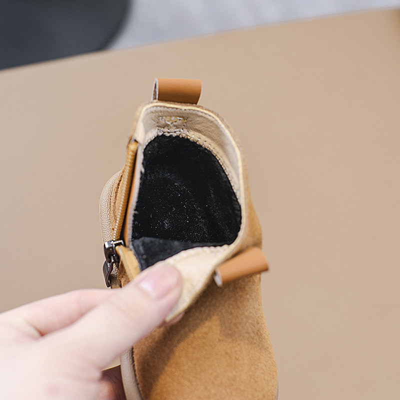 가을과 겨울 소녀 프로스트 가죽 사이드 지퍼 쇼트 벨벳 부츠 영국 스타일 베이비 마틴 부츠 올 매치 편안한 부드러운 밑창 남성용 코튼 부츠
