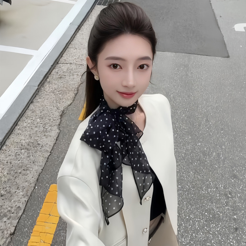 슈퍼 파이어 ~ 웨이브 도트 스카프 목 긴 스카프 모든 경기 틈새 디자인 센스 넥 액세서리 프랑스 스카프