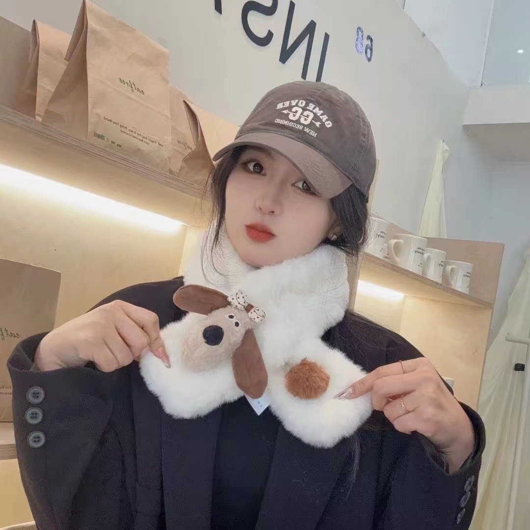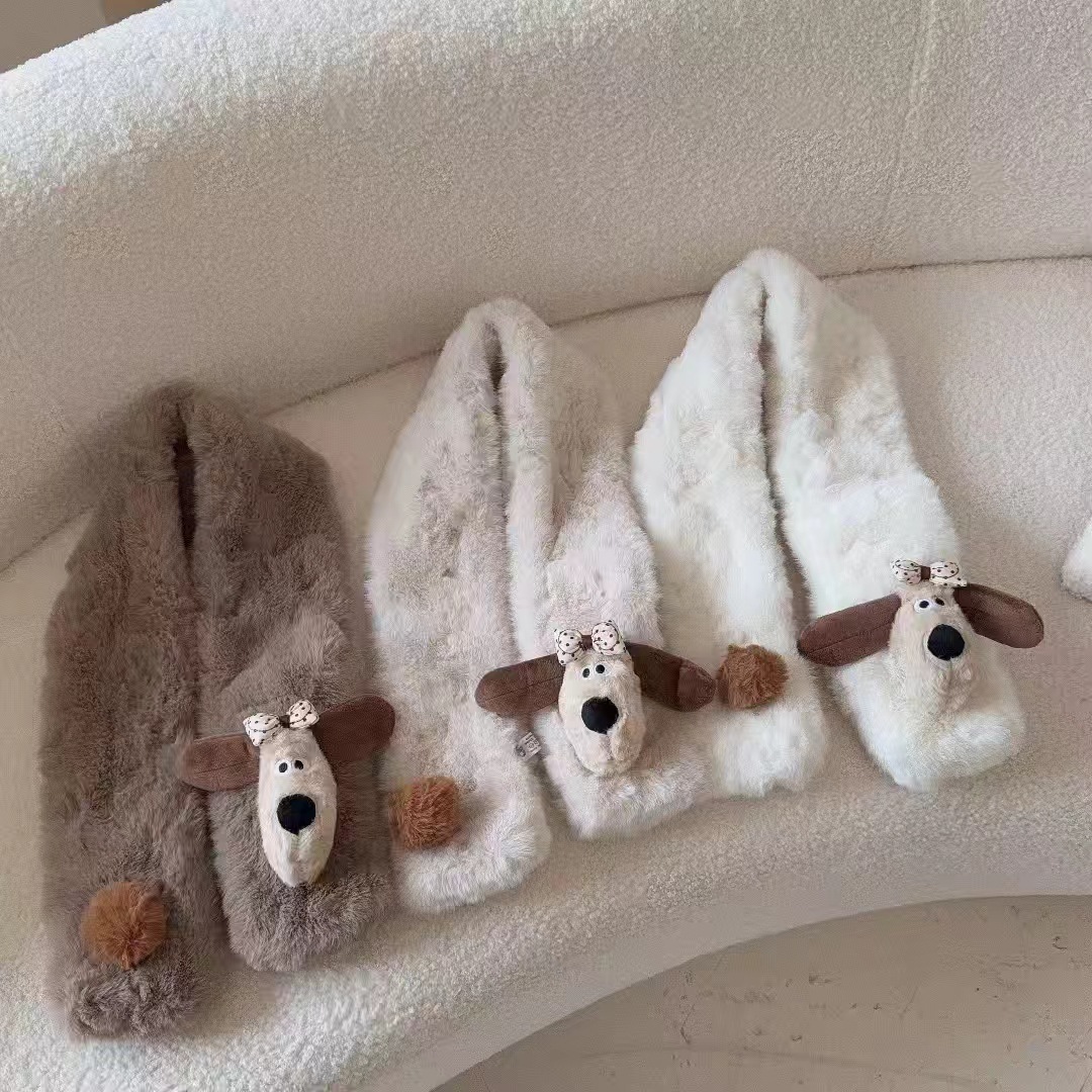 만화 강아지 인형 봉제 스카프 모피 칼라 스카프 여성의 겨울 따뜻한 어린이 소년 2024 새로운 귀여운스토어 가기