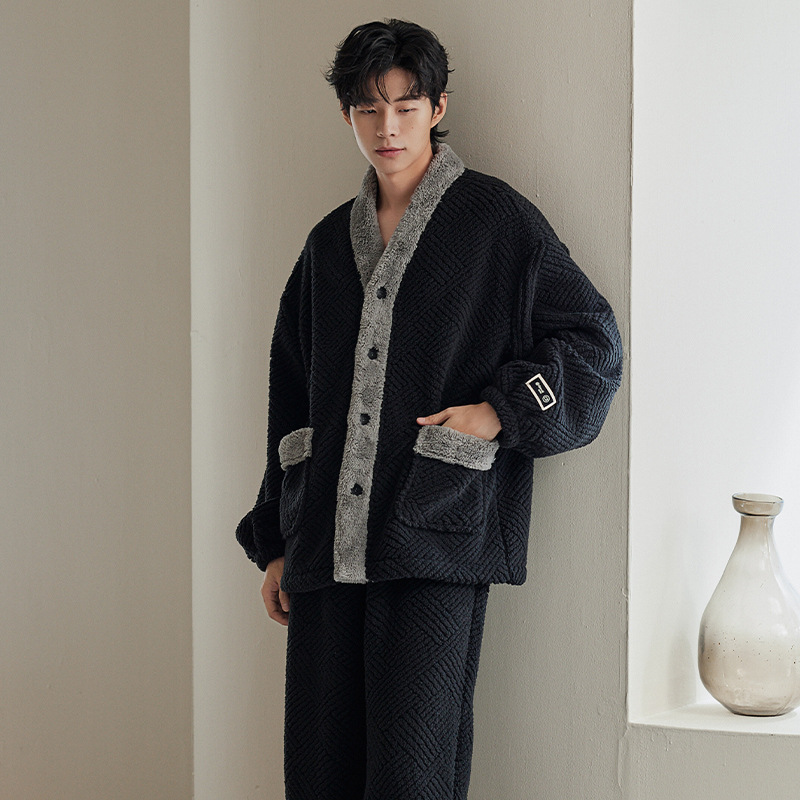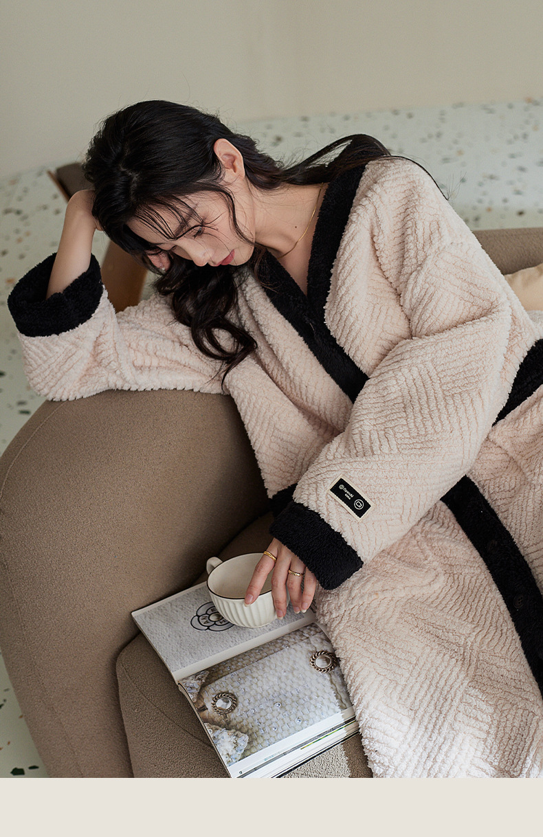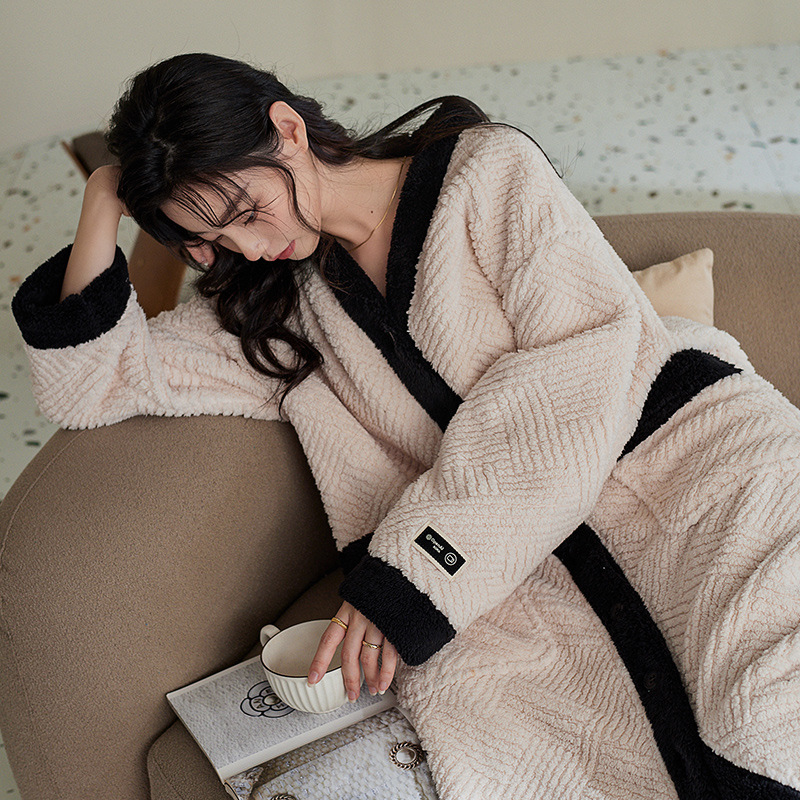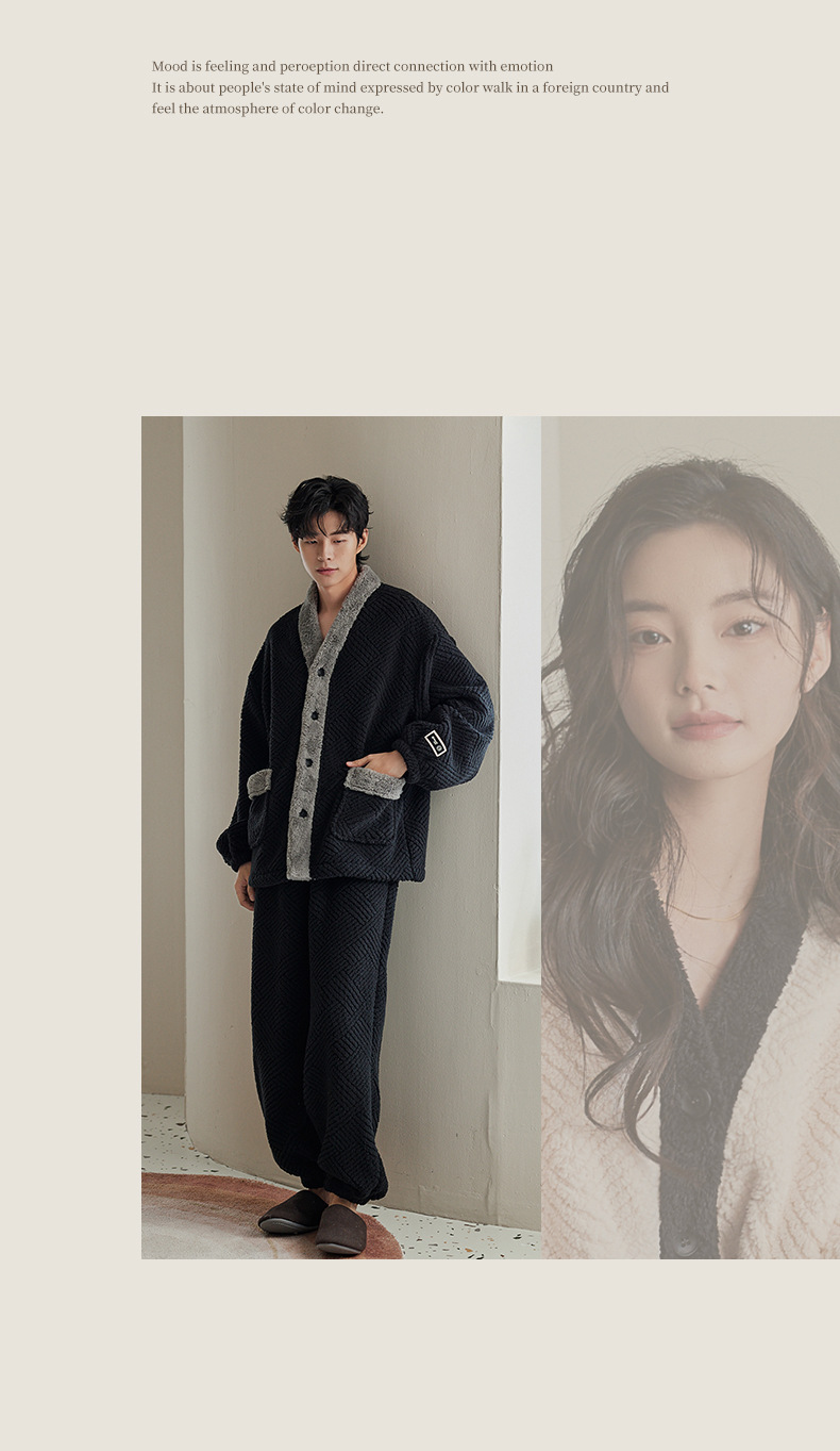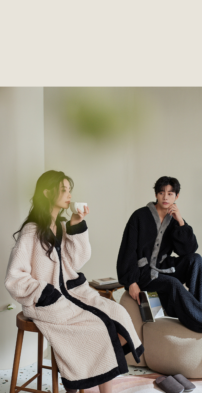 커플 잠옷 가을과 겨울 산호 양털 기모 두꺼운 긴 잠옷 여성의 아침 가운 플란넬 남자 홈 옷 세트
