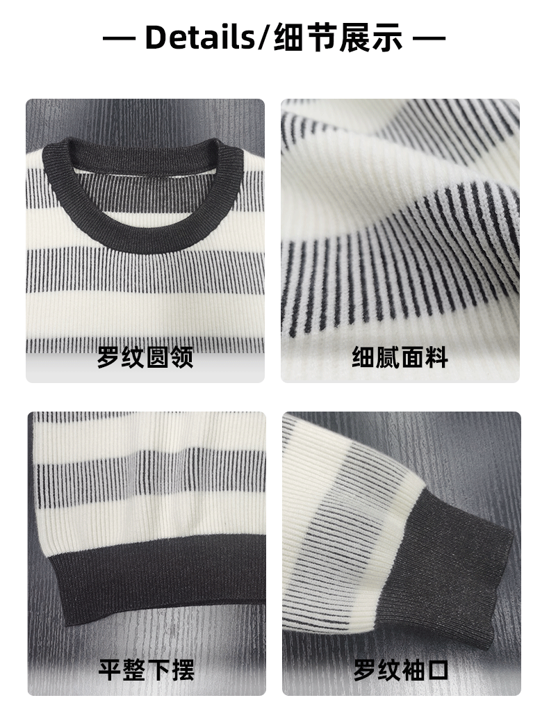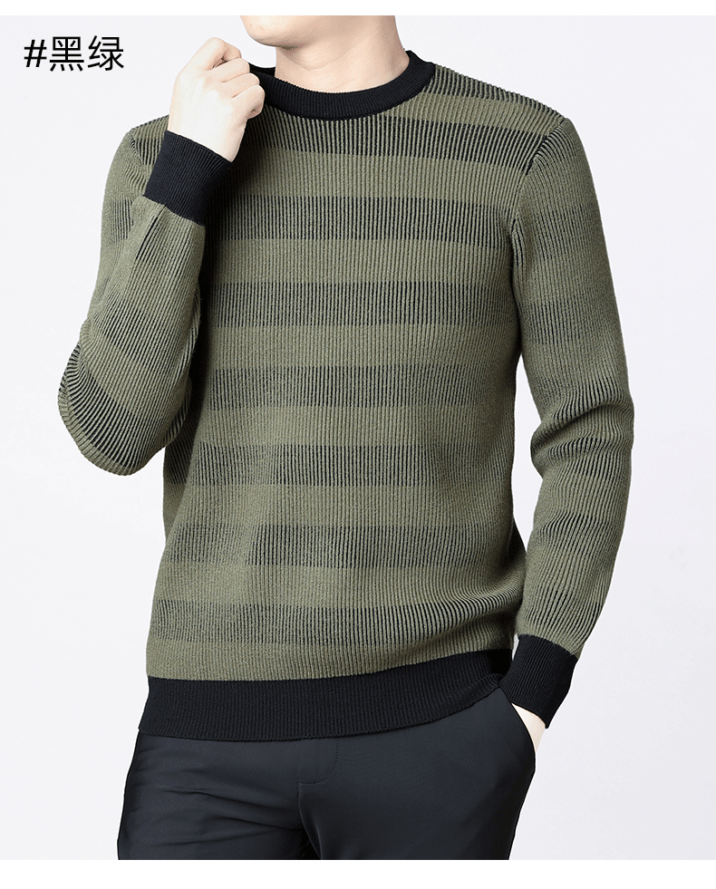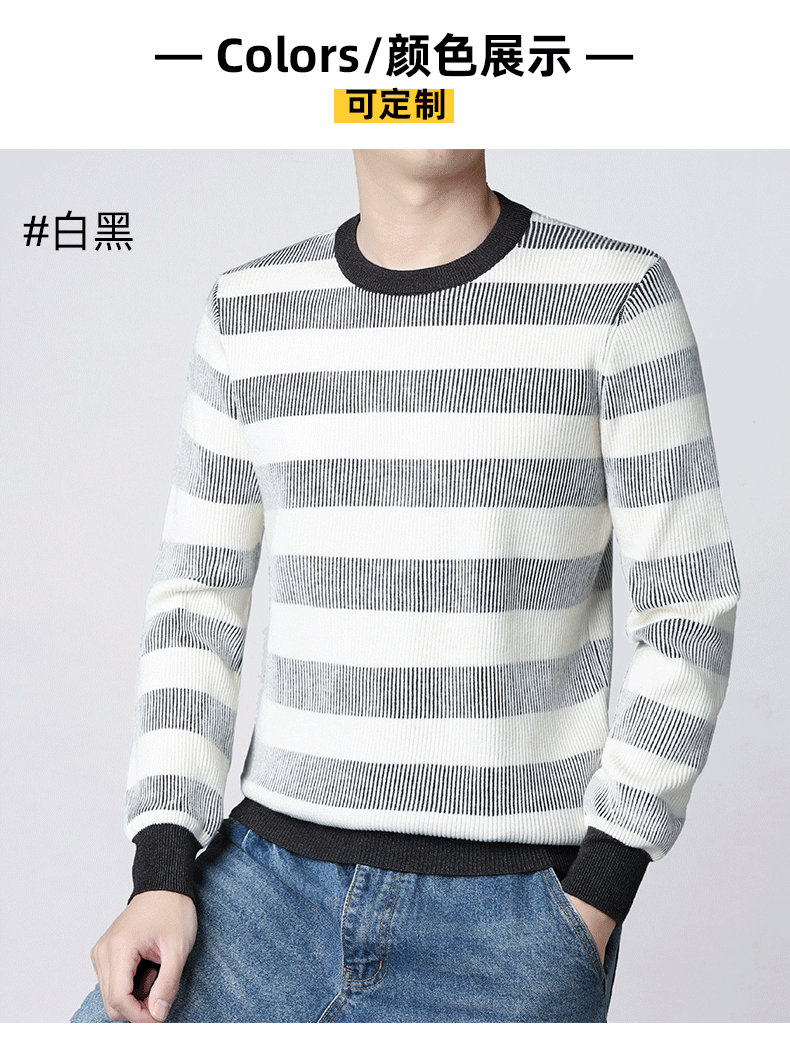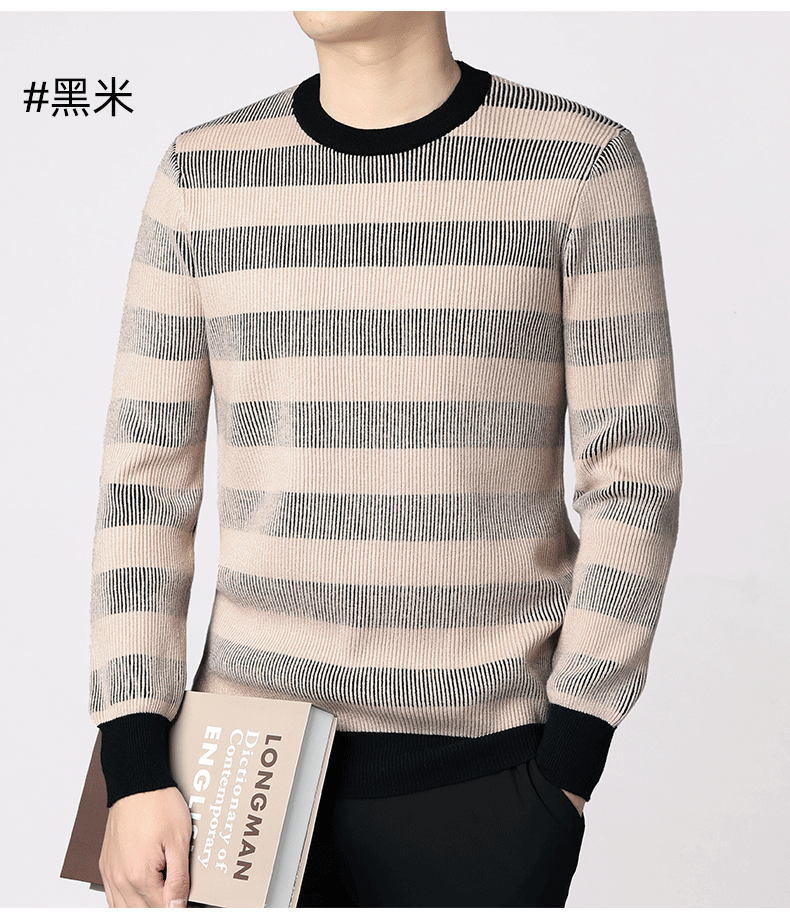 24 가을과 겨울 일본 명암 색 줄무늬 크루 넥 스웨터 스웨터 남성 패션 유행 캐주얼 남성복