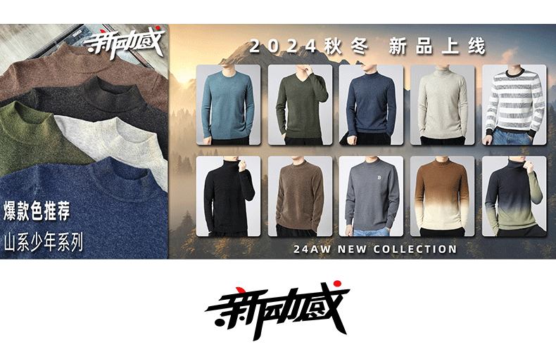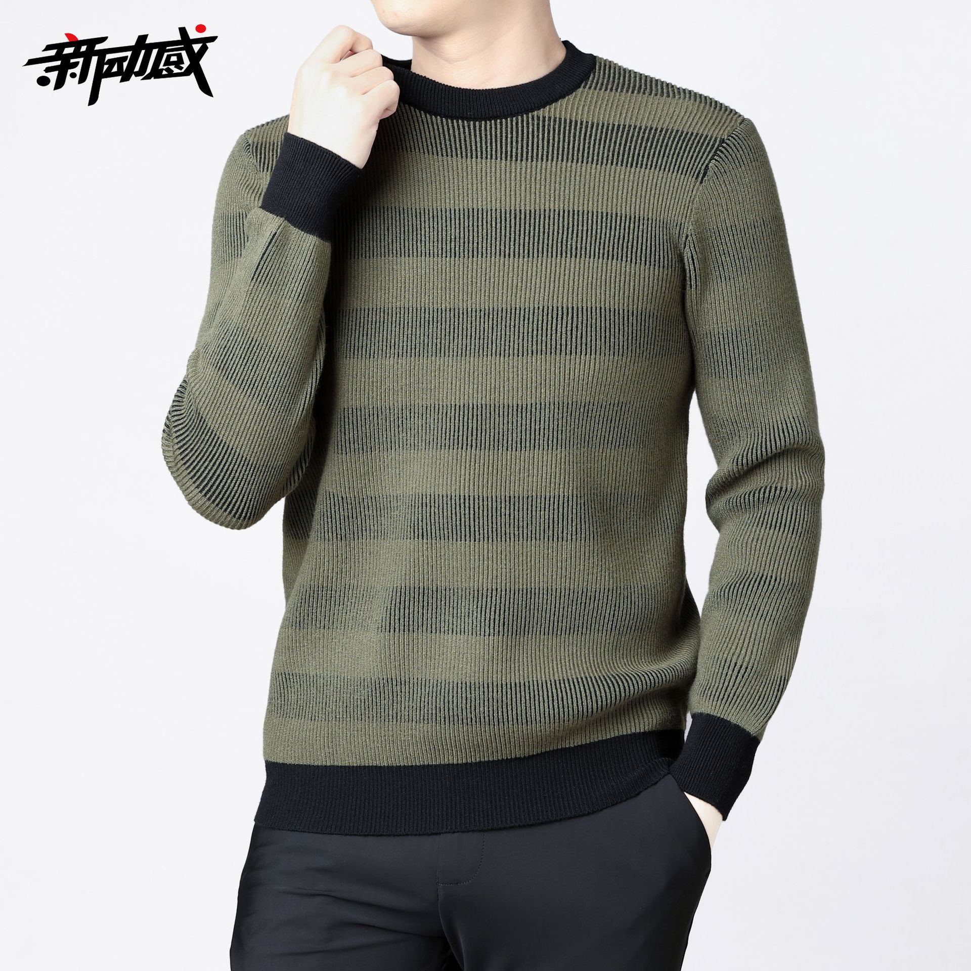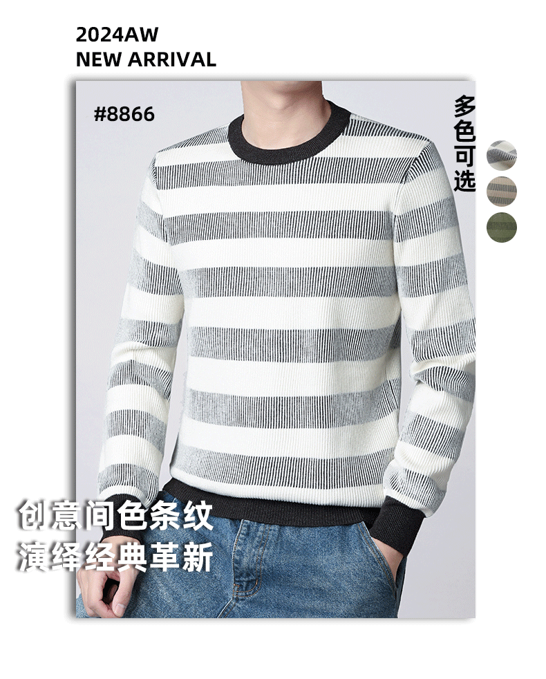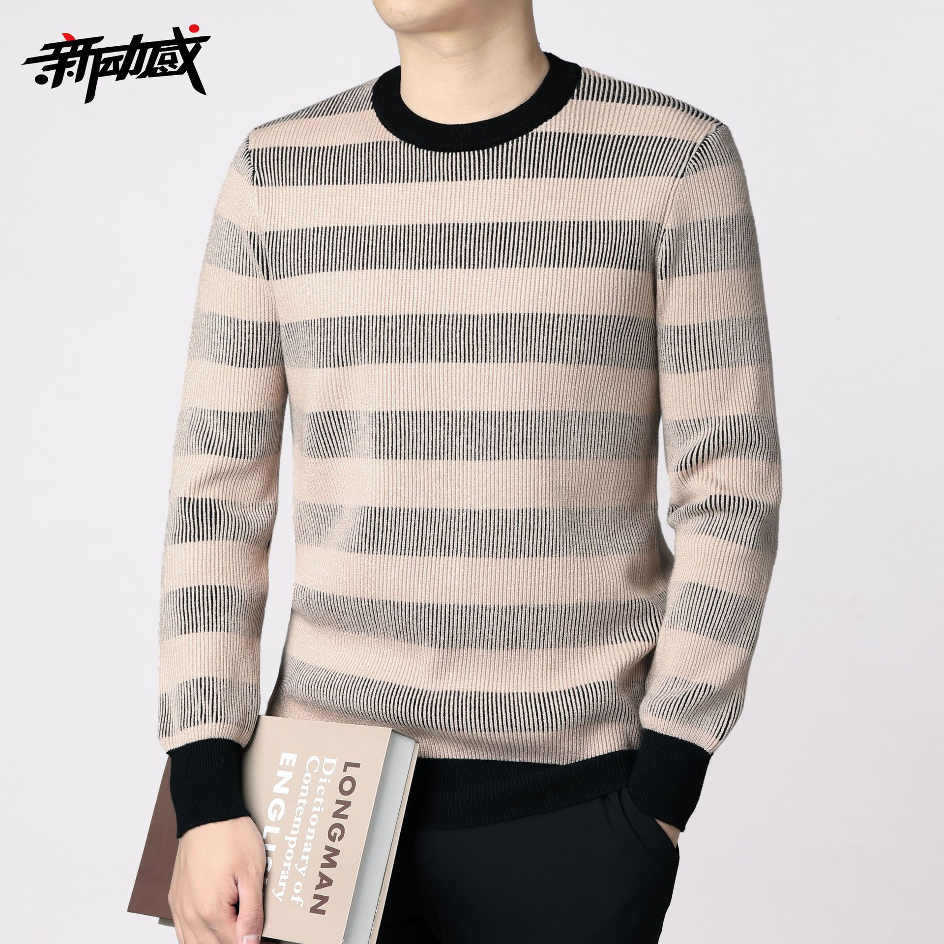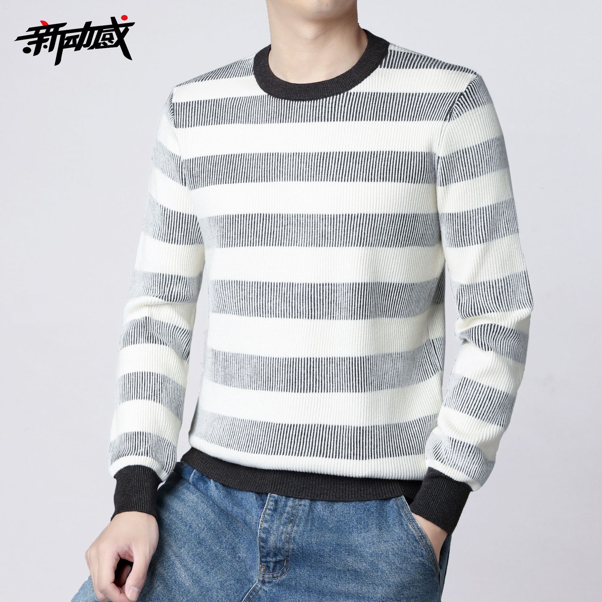 24 가을과 겨울 일본 명암 색 줄무늬 크루 넥 스웨터 스웨터 남성 패션 유행 캐주얼 남성복스토어 가기