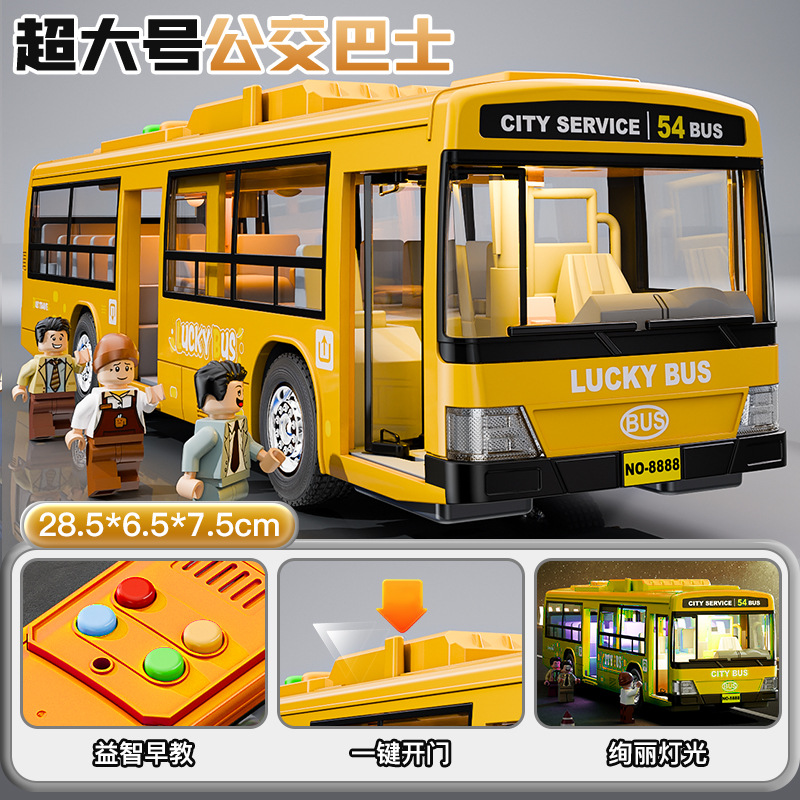 유아 교육용 버스 장난감, 문이 열리는 버스 모형, 아기용 음향 및 조명 버스 장난감스토어 가기