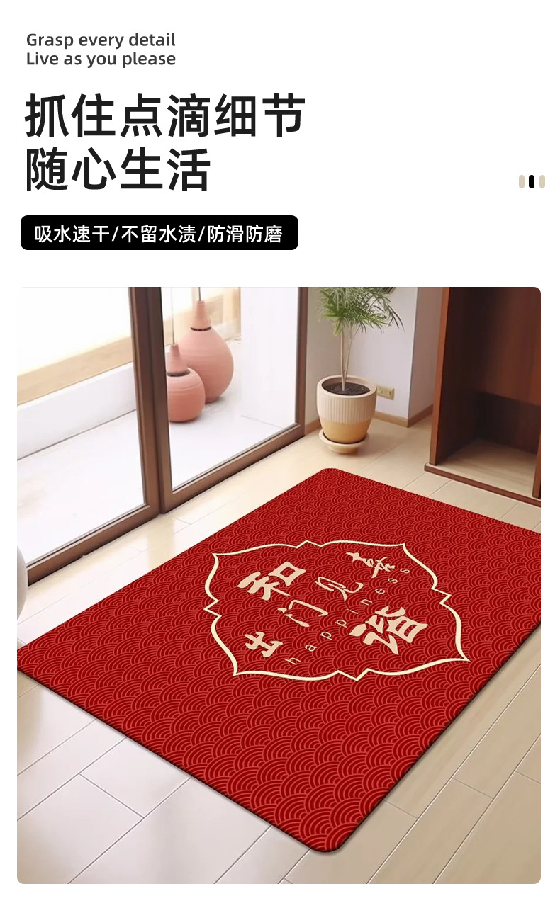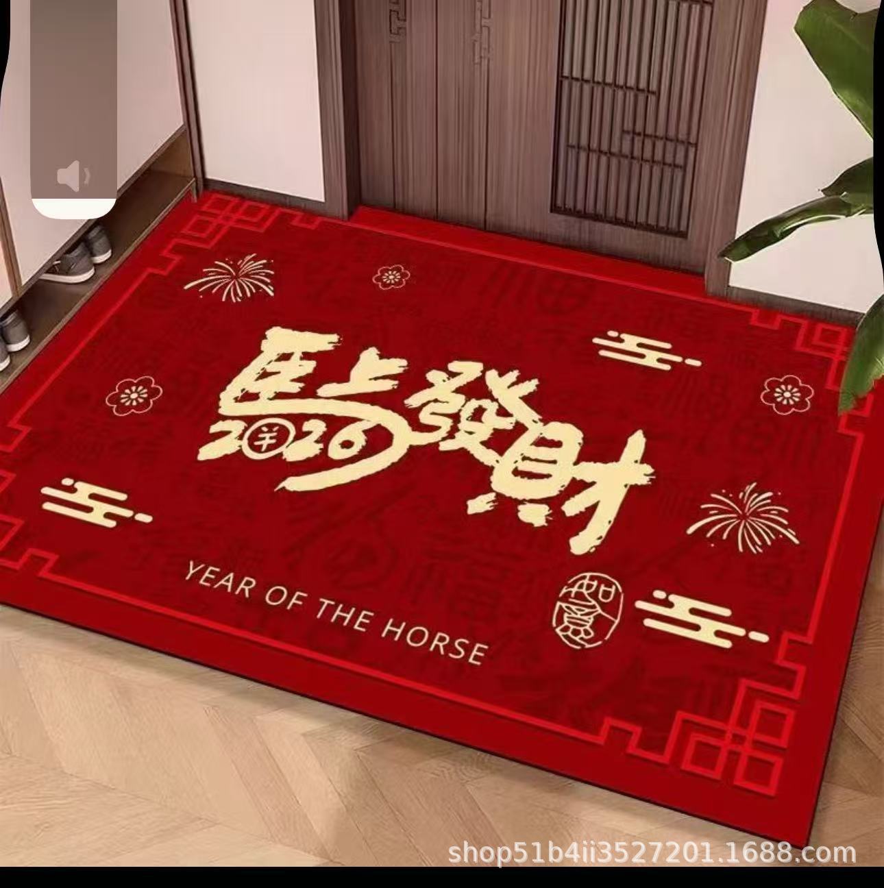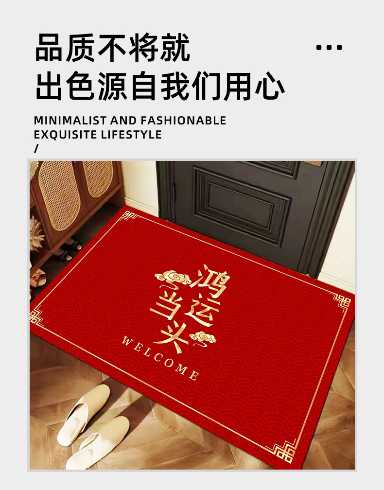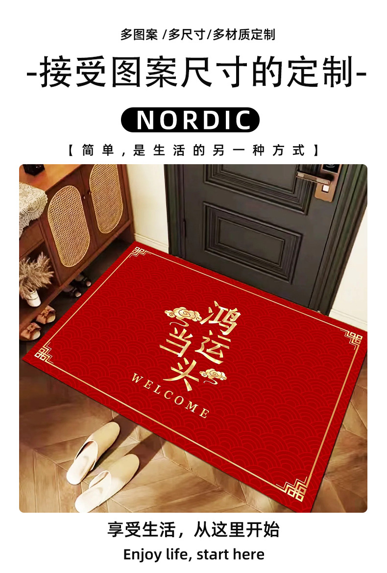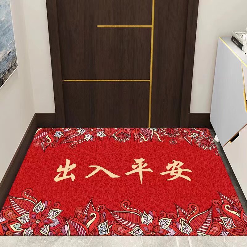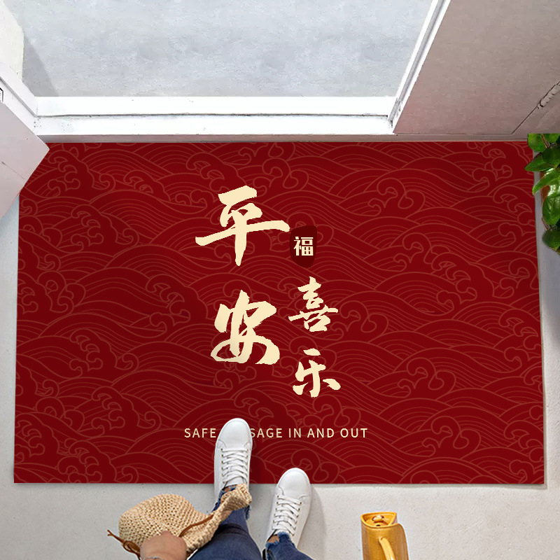 定制logo出入平安门口地垫防滑垫定做水晶绒入户玄关门口地垫红色