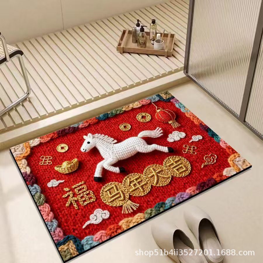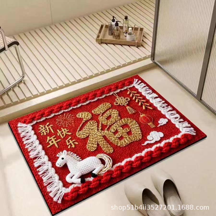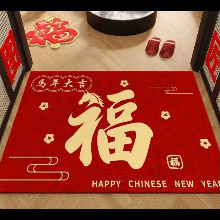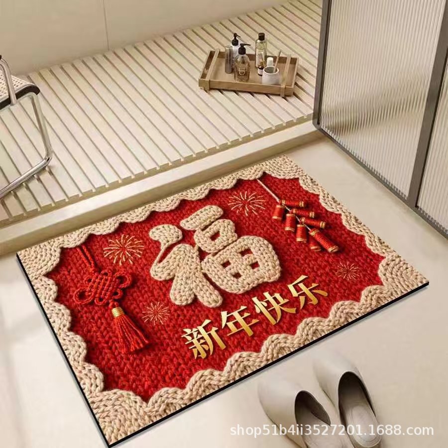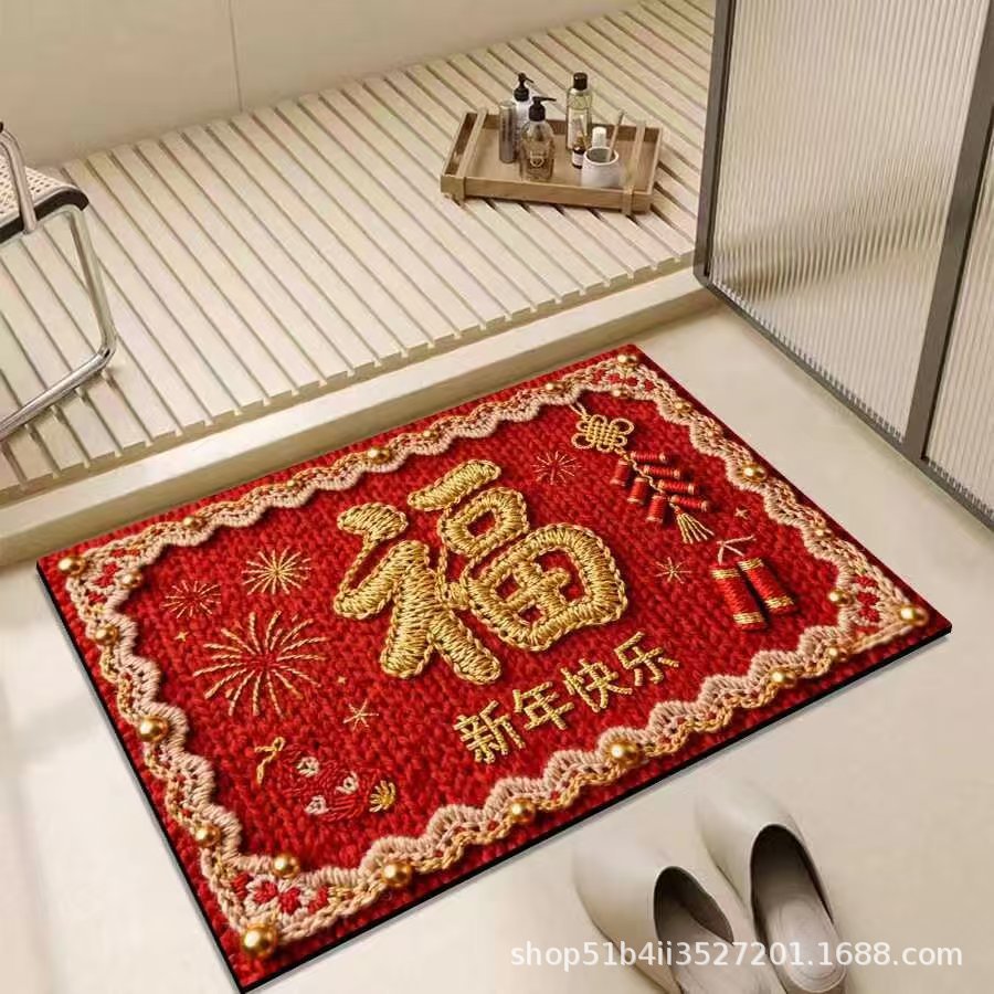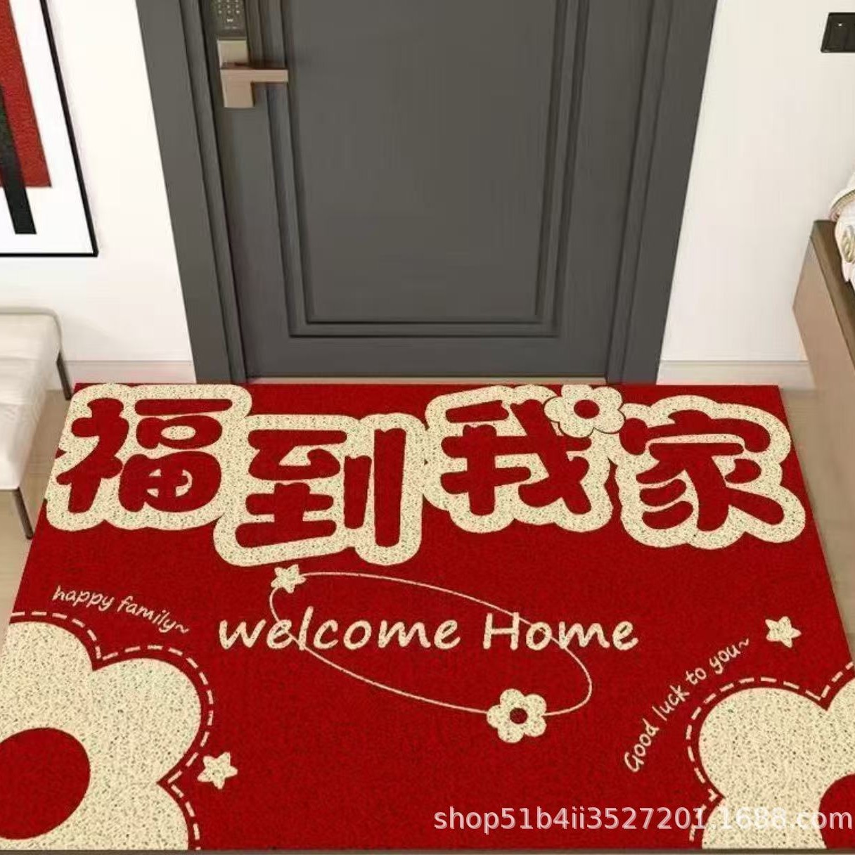 定制logo出入平安门口地垫防滑垫定做水晶绒入户玄关门口地垫红色