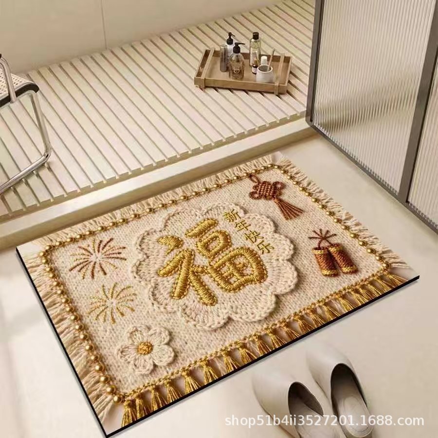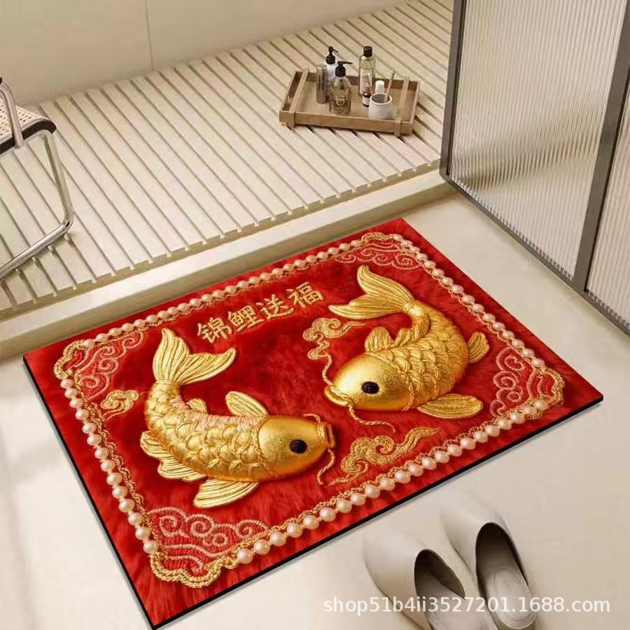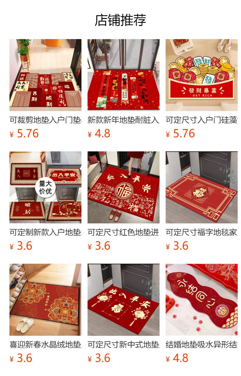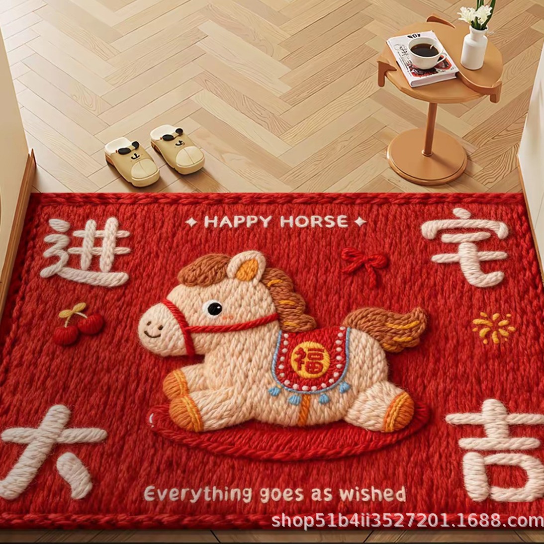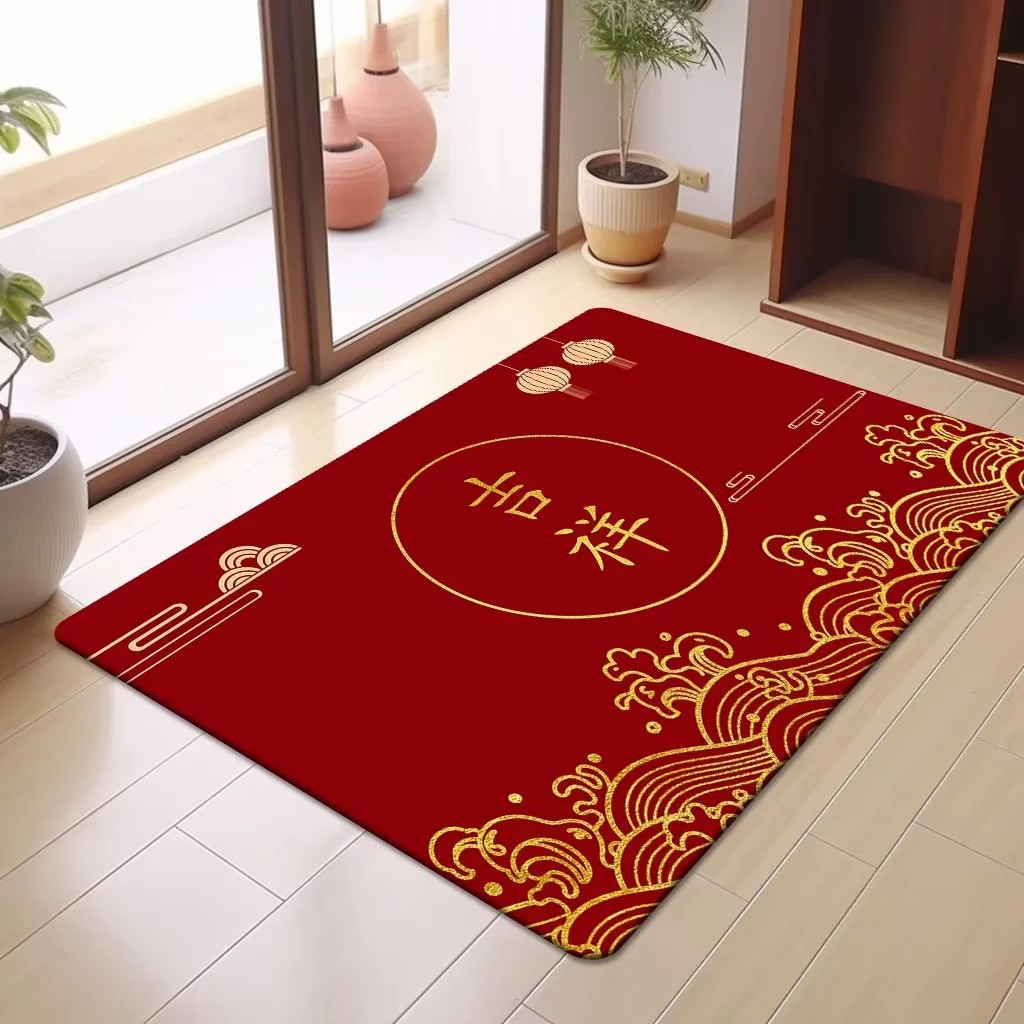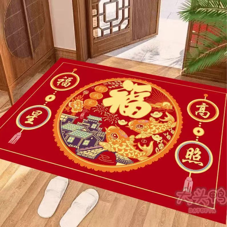 定制logo出入平安门口地垫防滑垫定做水晶绒入户玄关门口地垫红色