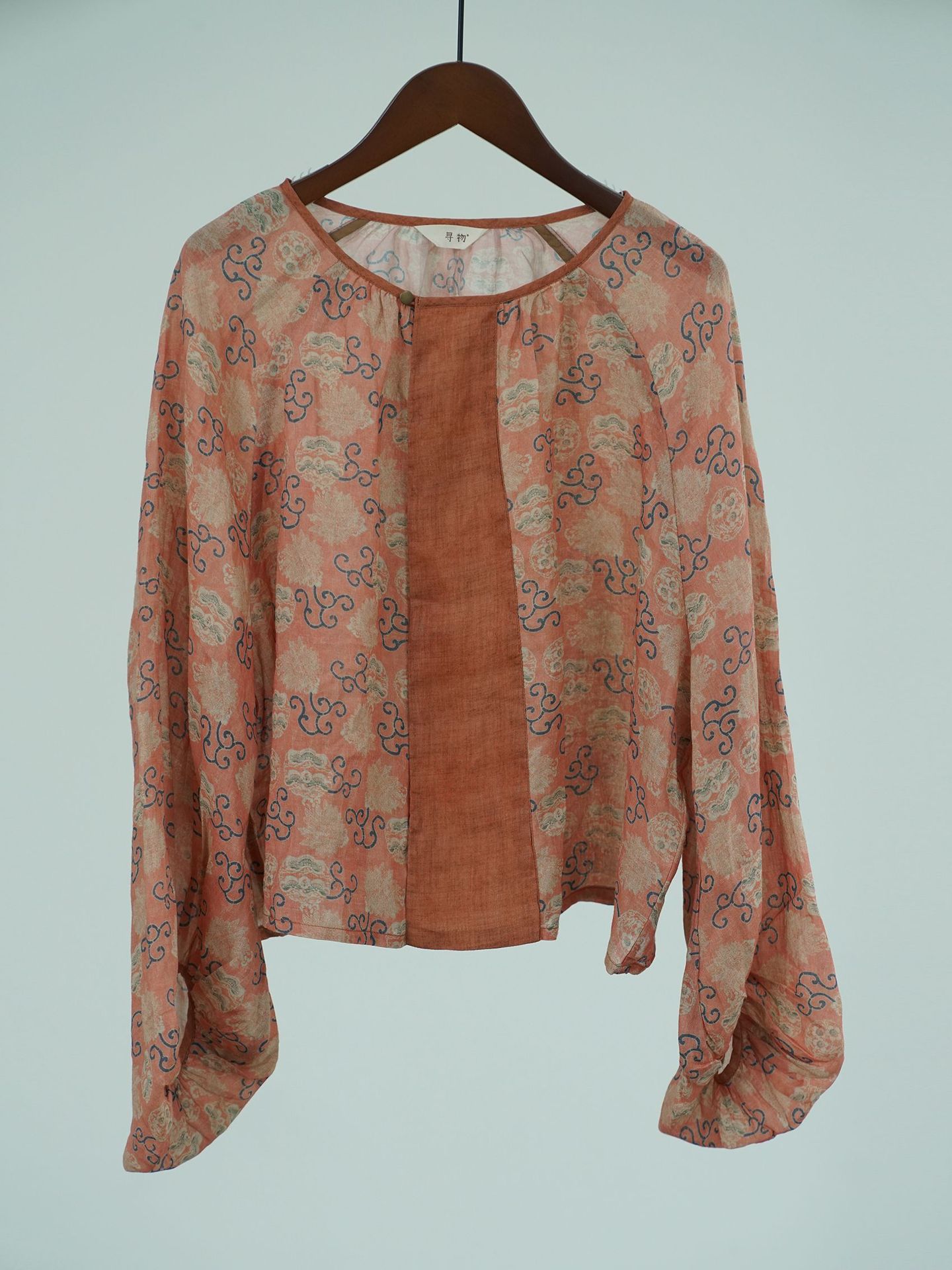 오리지널 레트로 뉴 내셔널 패션 대조 컬러 루즈 클래식 셔츠 송 랜턴 슬리브 라미 카디건 S24175