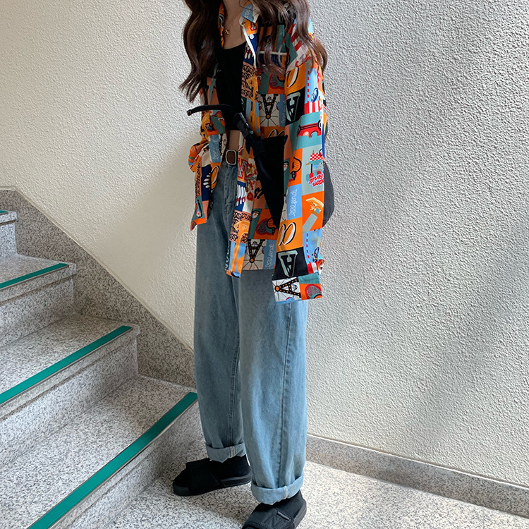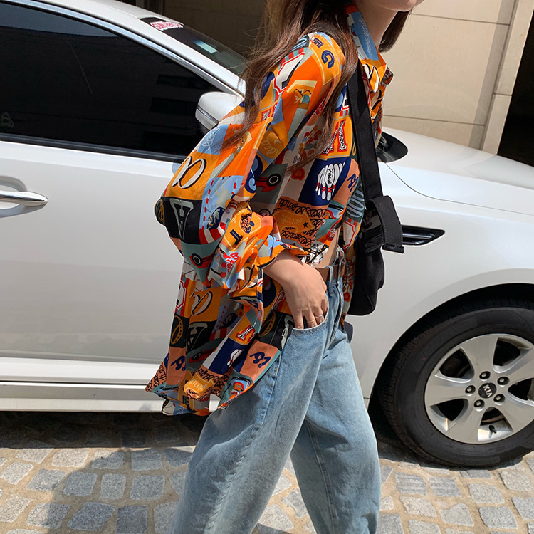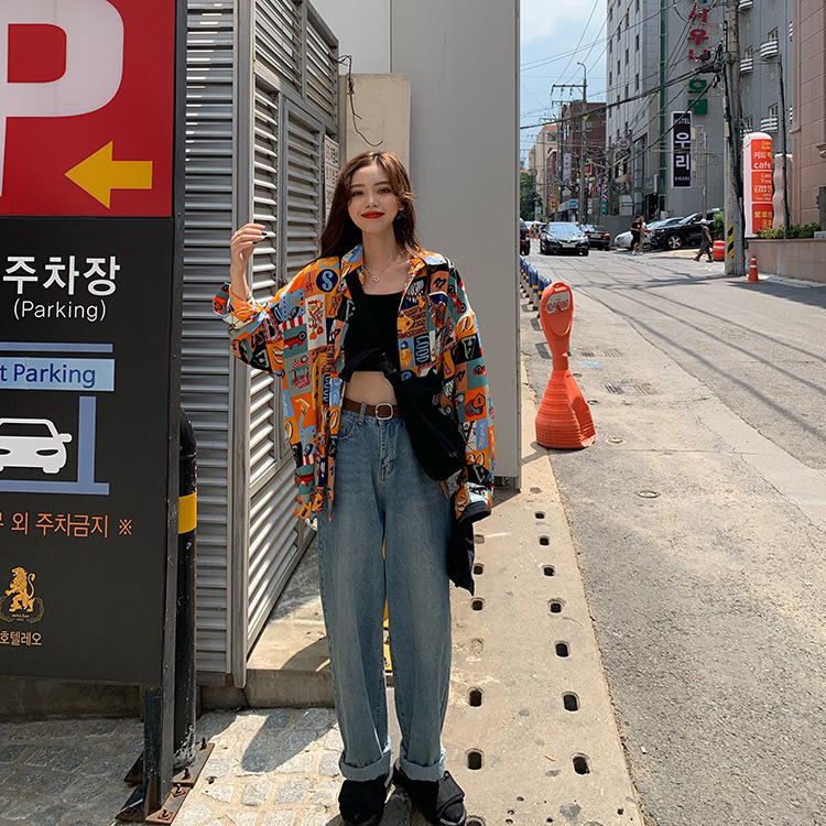 여름 홍콩 스타일 선스크린 꽃 셔츠 재킷 남자의 봄 세련된 남자와 여자의 셔츠 긴 소매 최고 가을 새로운스토어 가기