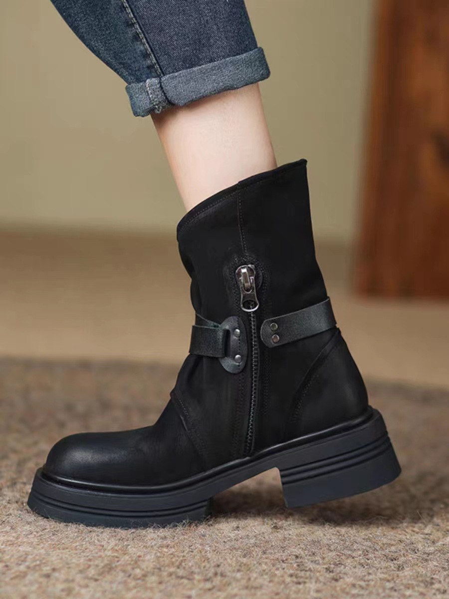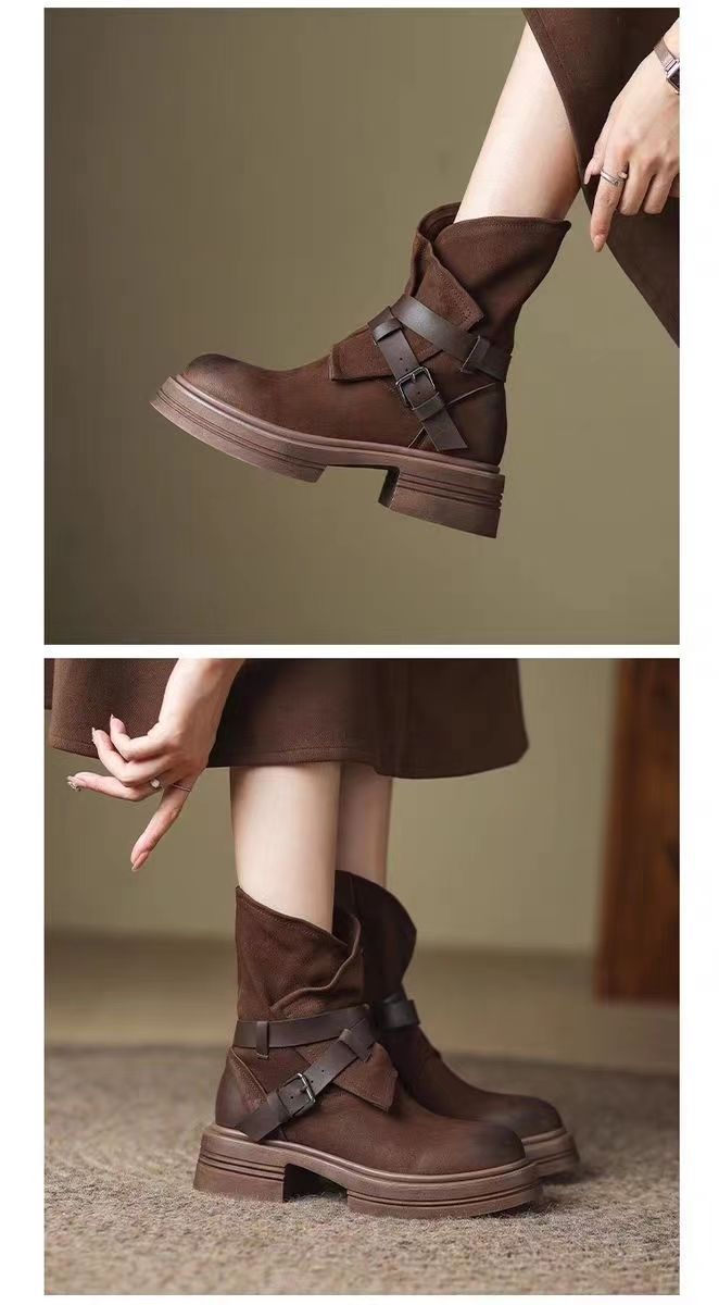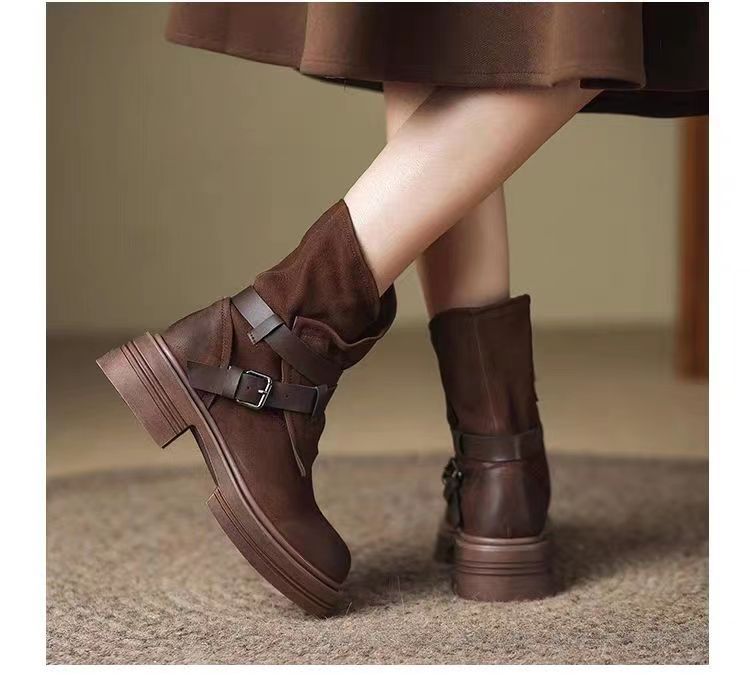 Martin Boots 2024 새로운 가을 할로우 Maillard 부츠 미드 배럴 웨스턴 카우보이 부츠 레트로 여성용 부츠 사이드 지퍼