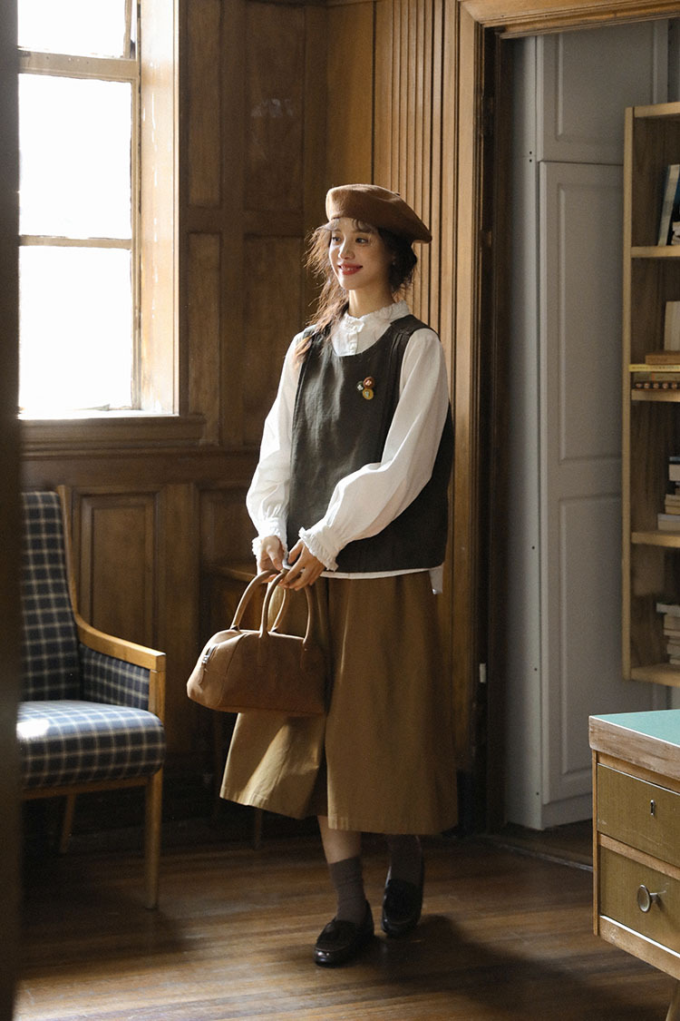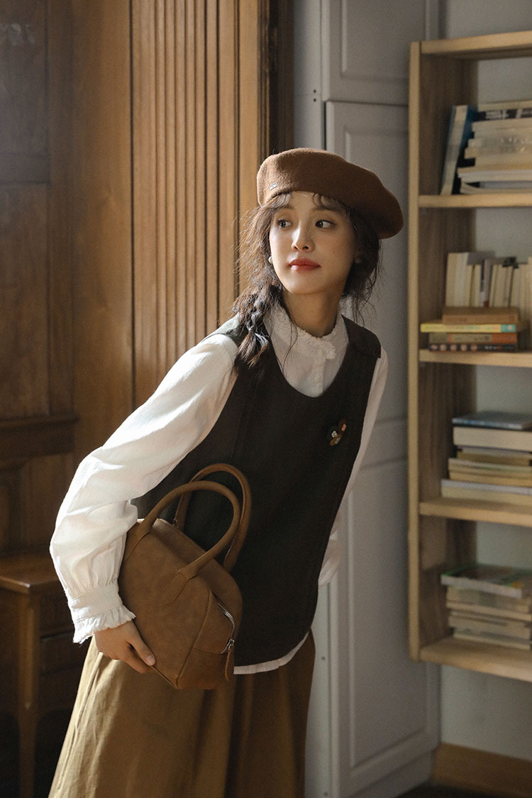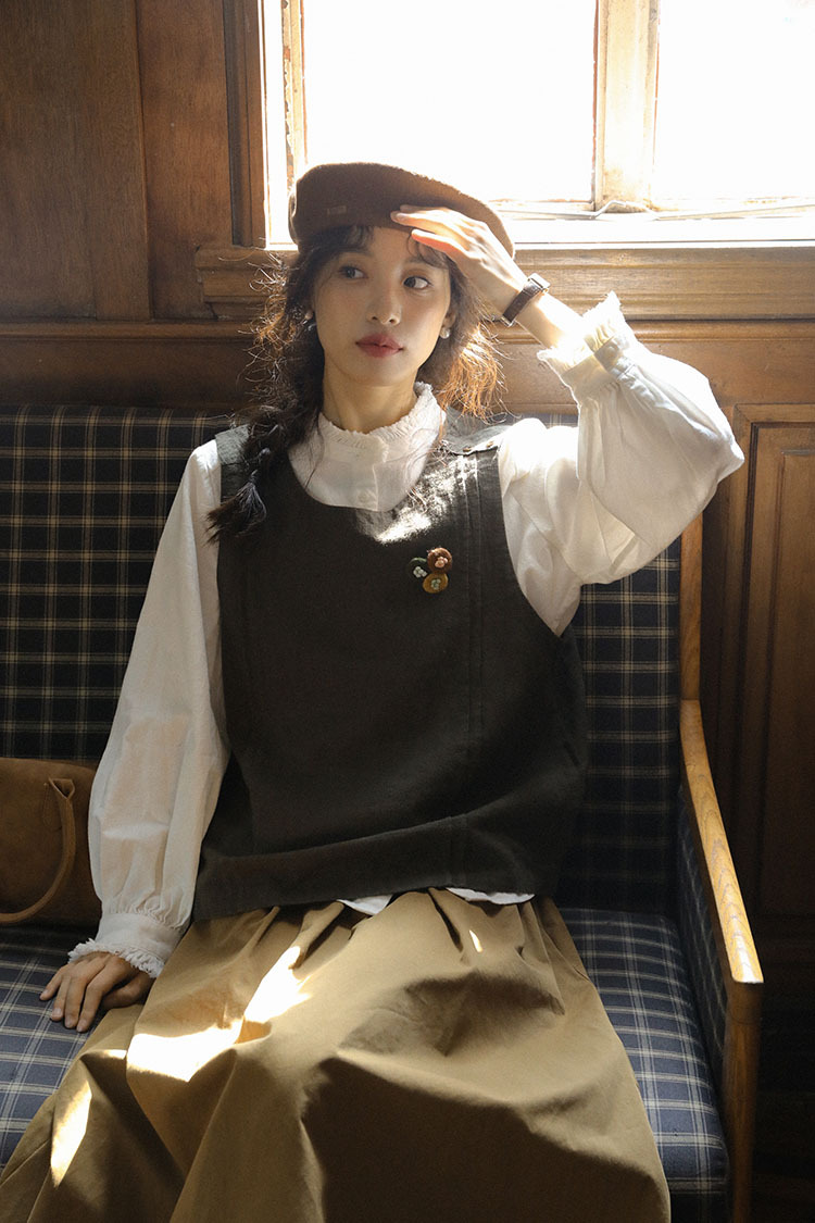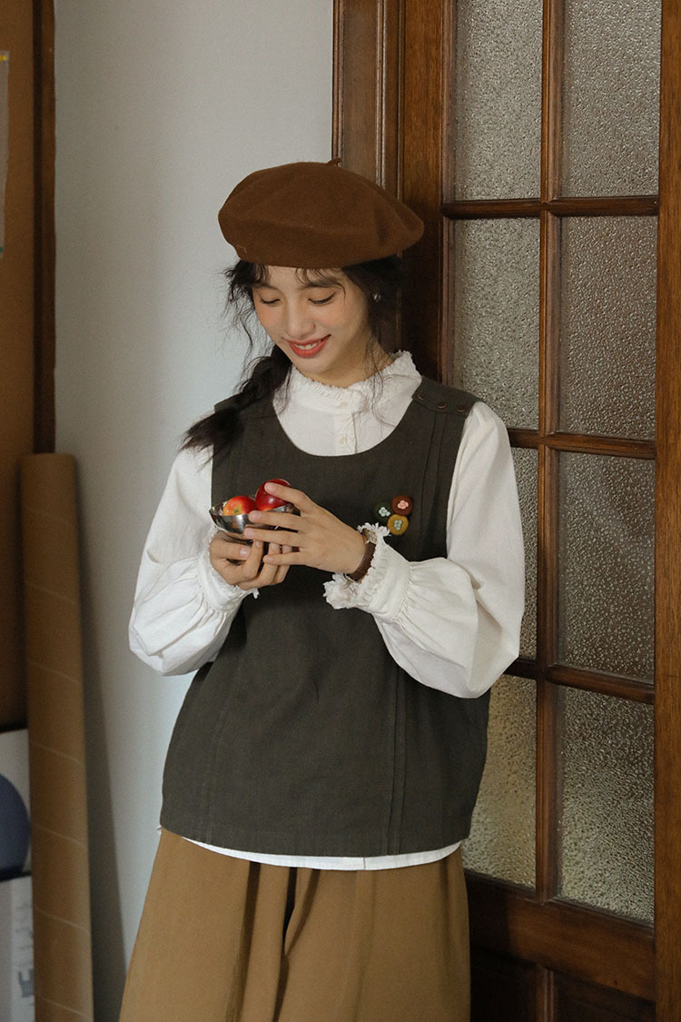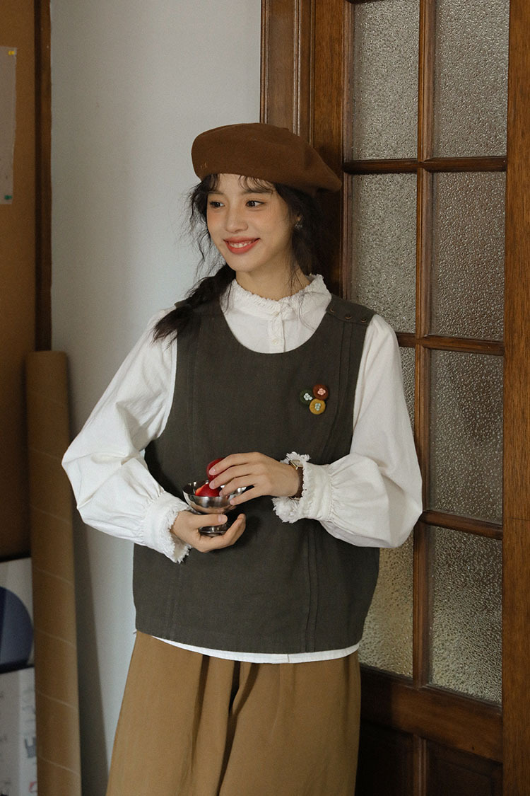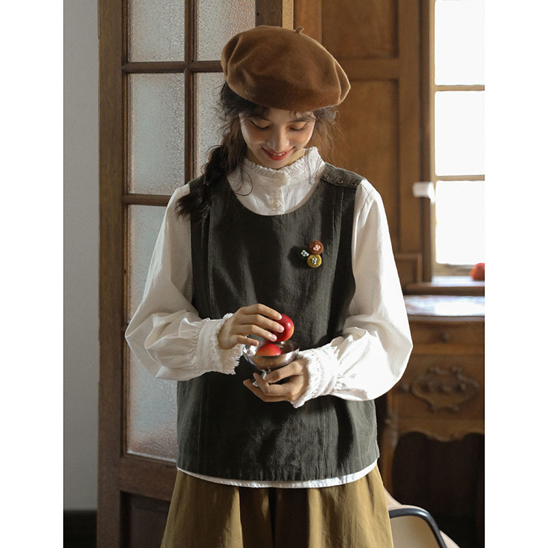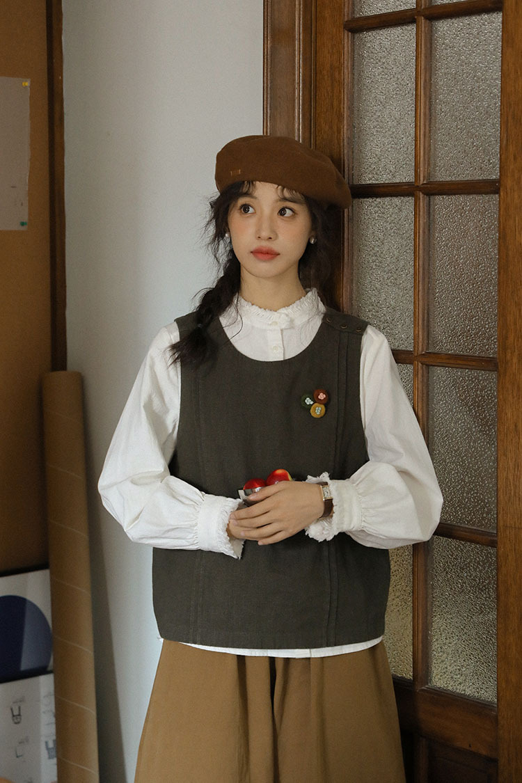 실제 촬영 2025 가을 신상 일본 레트로 문학적 스타일의 신선한 느낌의 테두리가 있는 긴 소매 흰색 셔츠 여성용스토어 가기