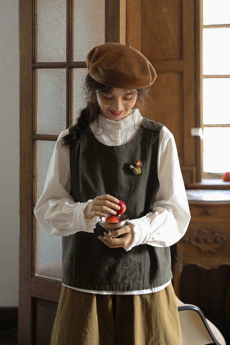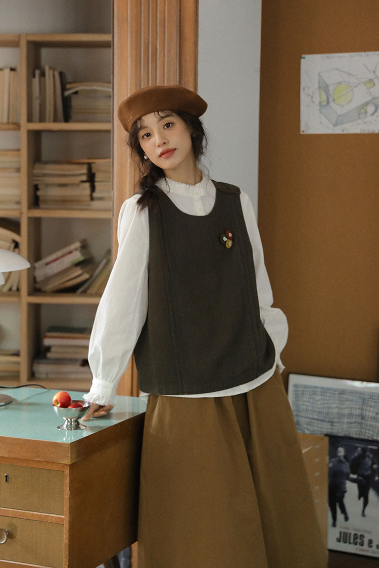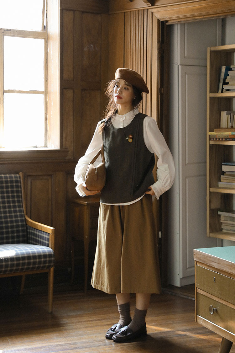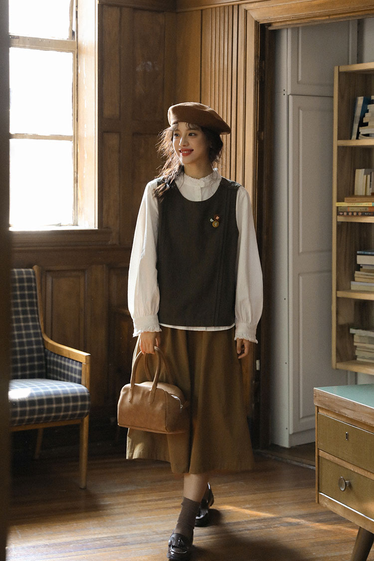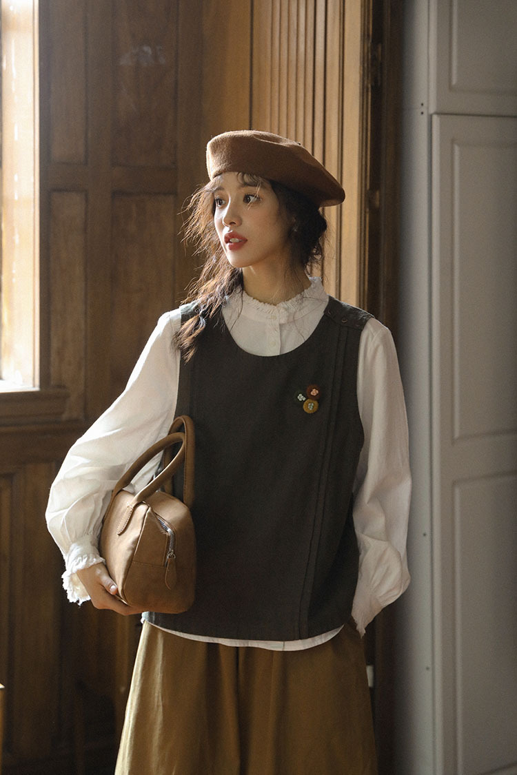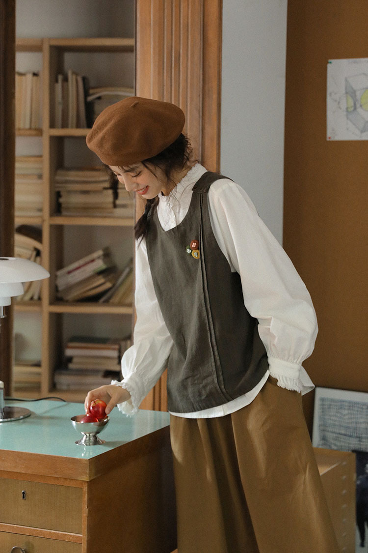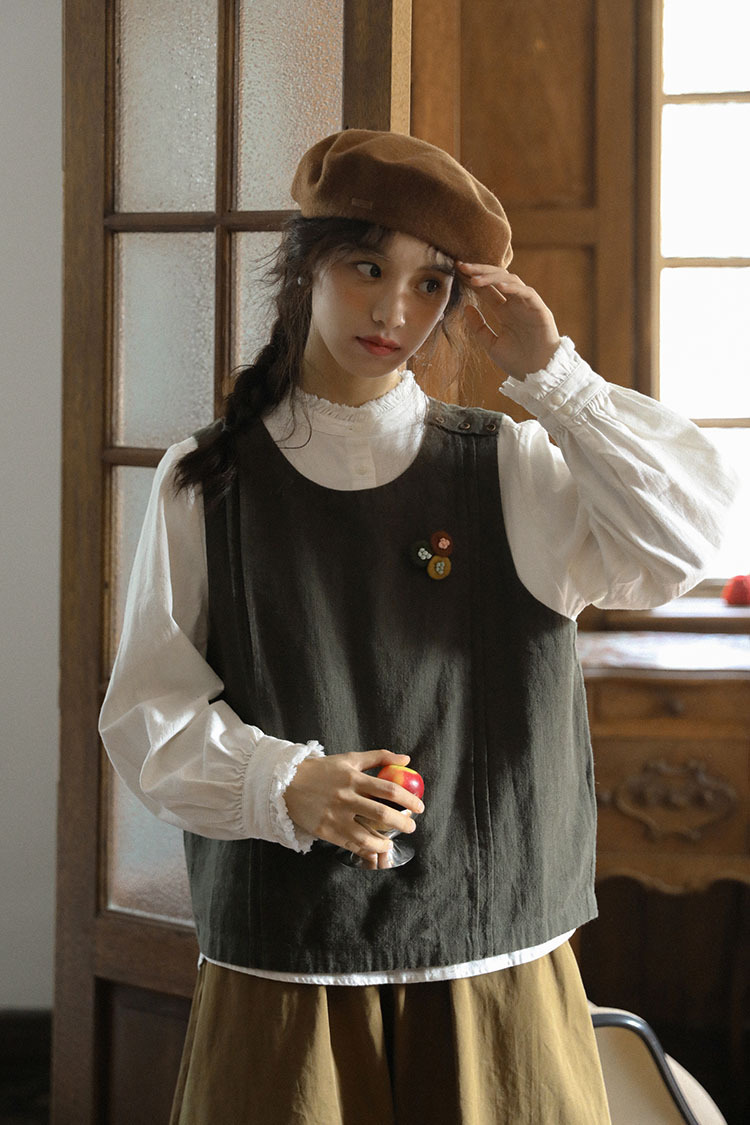 실제 촬영 2025 가을 신상 일본 레트로 문학적 스타일의 신선한 느낌의 테두리가 있는 긴 소매 흰색 셔츠 여성용스토어 가기