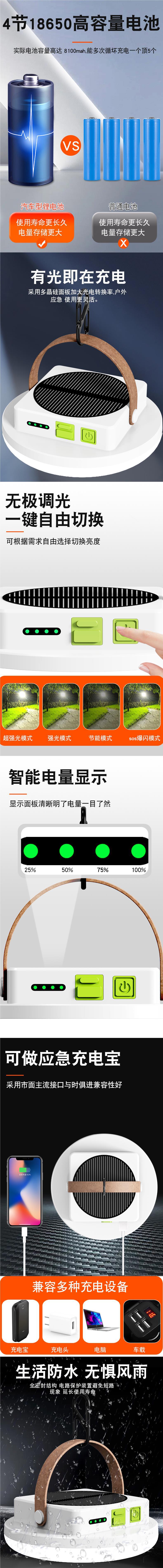 캠핑 조명 긴 내구성 태양 야외 휴대용 캠핑 정전 캠프 캐노피 텐트 충전 조명
