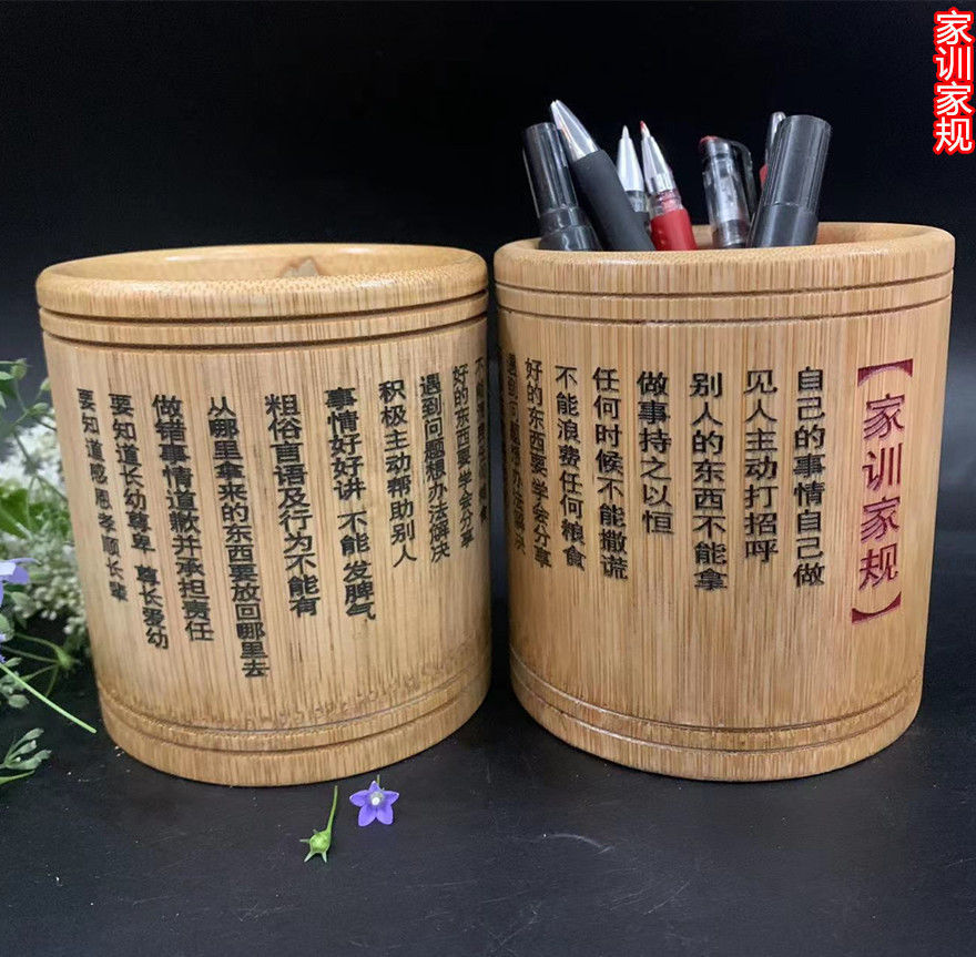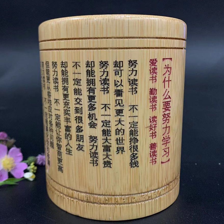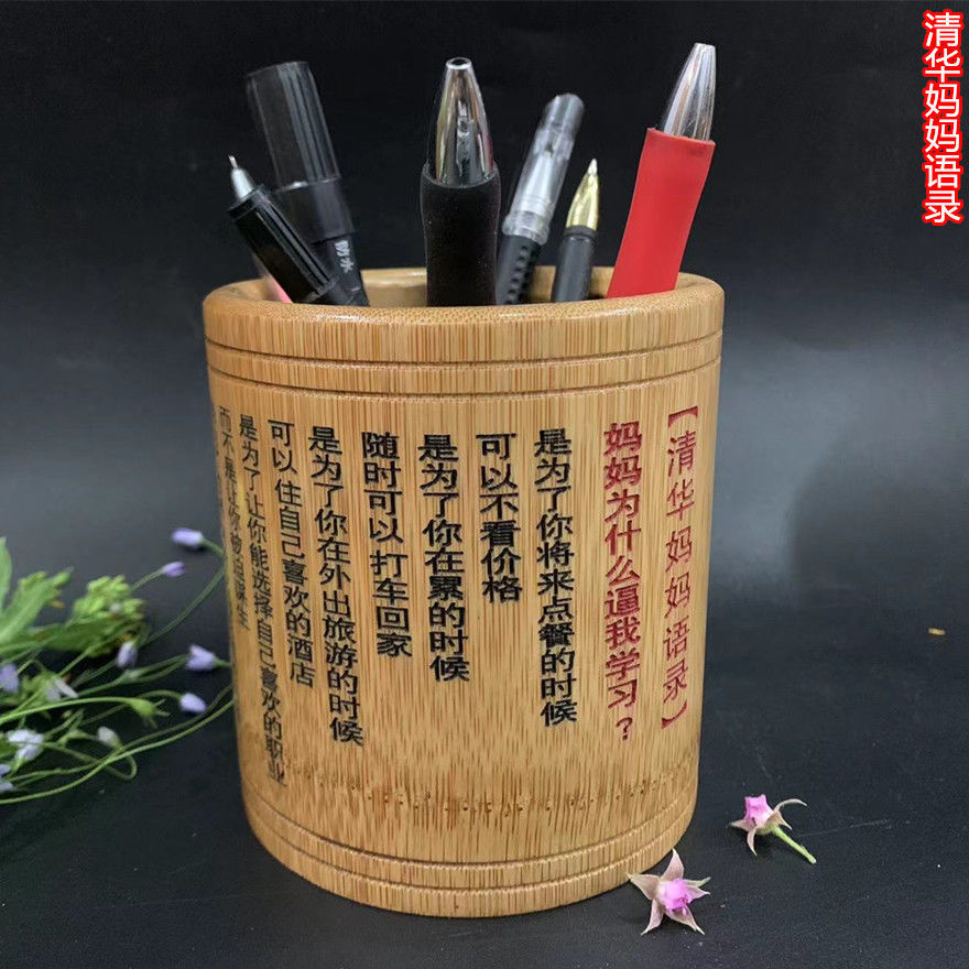 둥근 대나무 조각 펜 케이스 학생 사무실 책상 조각 펜 케이스 창조적 인 패션 다기능 펜 버킷 데스크탑 저장 난초스토어 가기