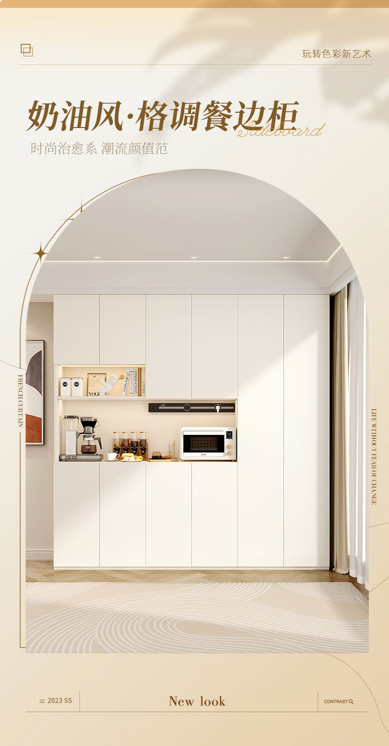 ENF 크림 스타일 솔리드 우드 사이드 보드 통합 벽 저장 캐비닛 가정용 거실 높은 캐비닛 가벼운 고급 와인 캐비닛스토어 가기