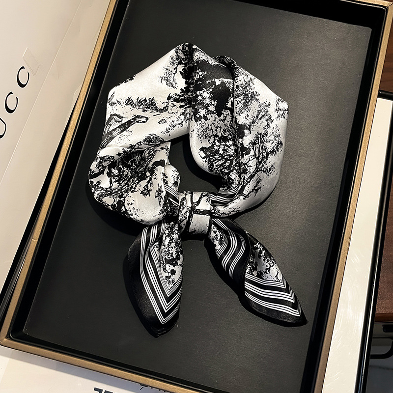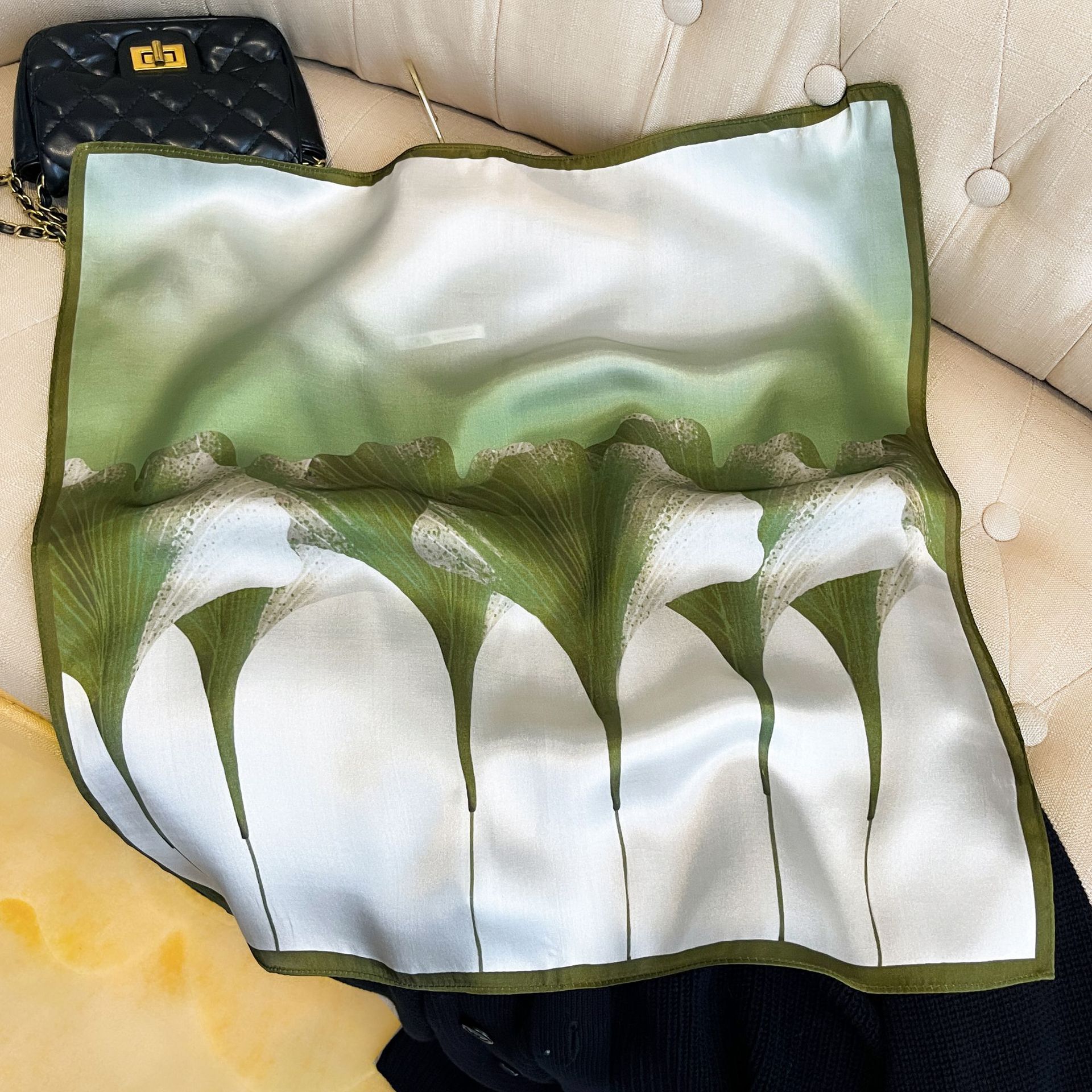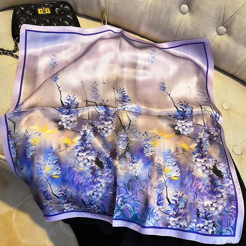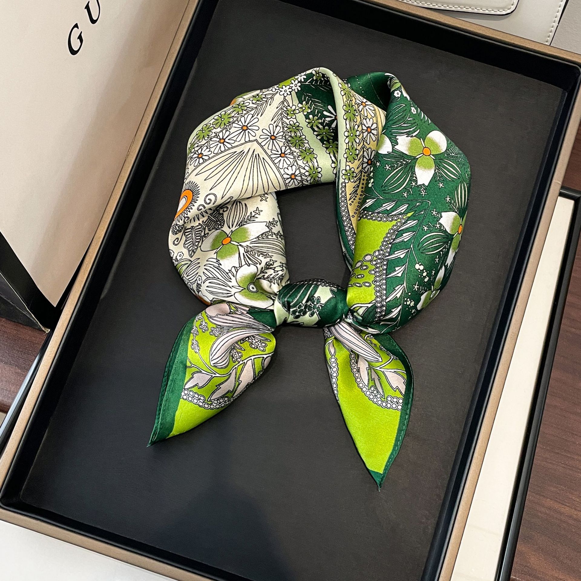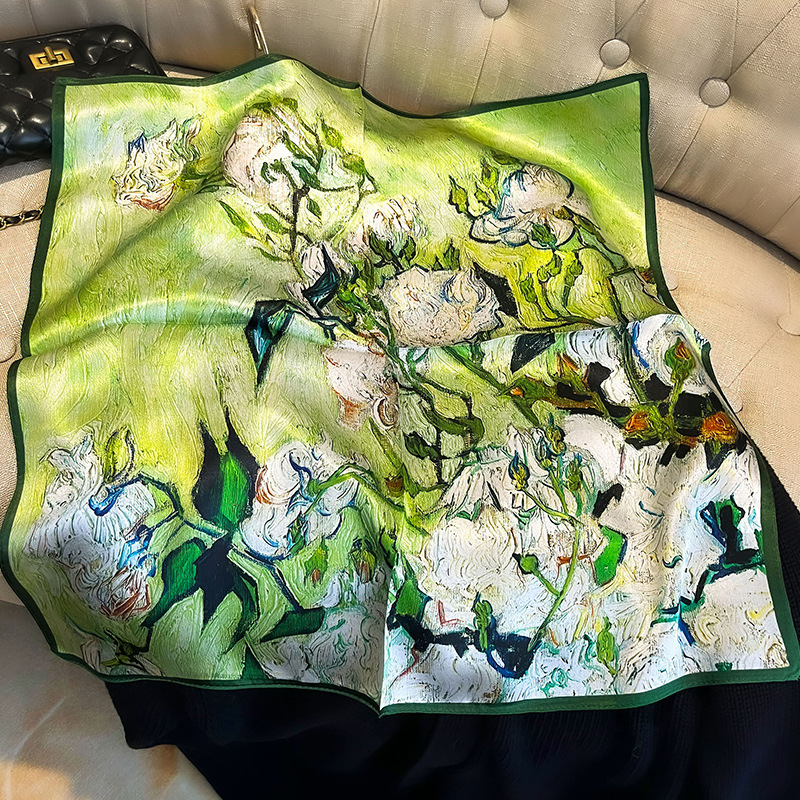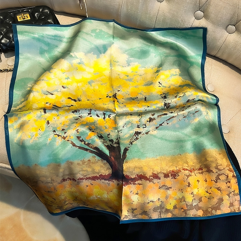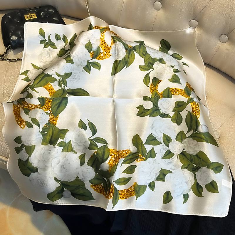 녹색 Guofeng 100% 뽕나무 실크 스카프 여성 고급 감각 실크 작은 광장 스카프 선물 스카프 봄과 가을 스카프 목도리스토어 가기