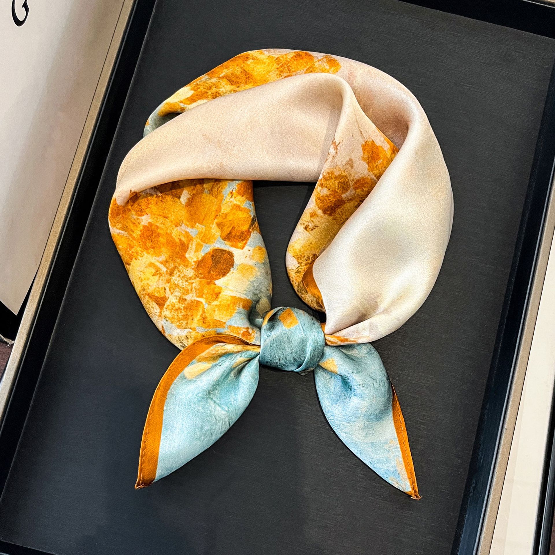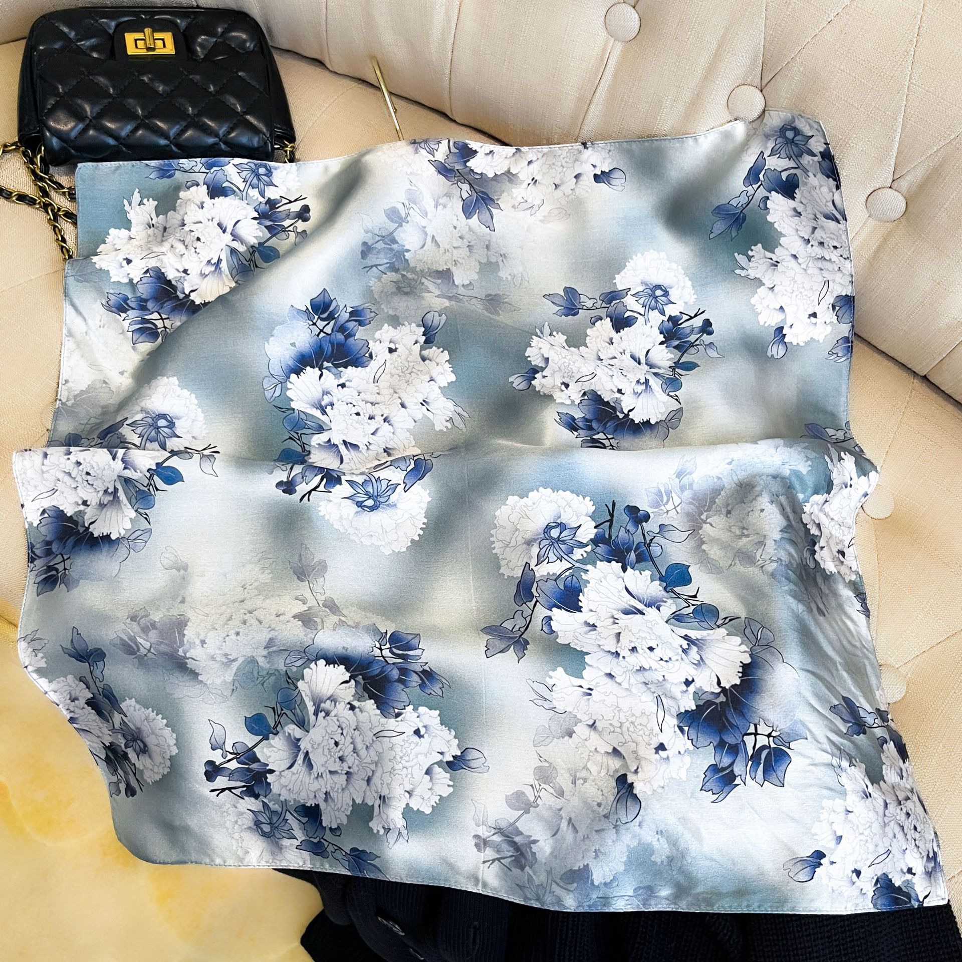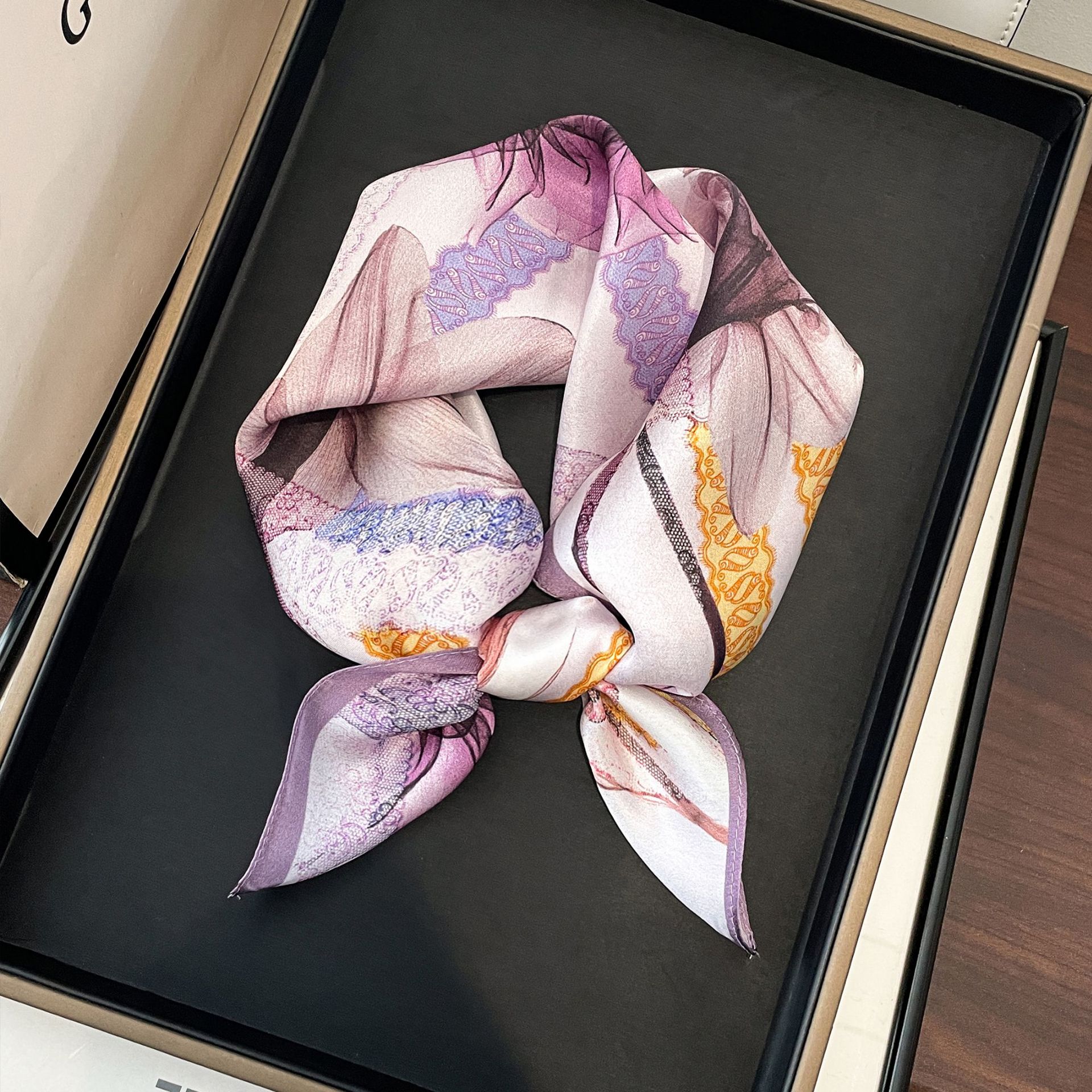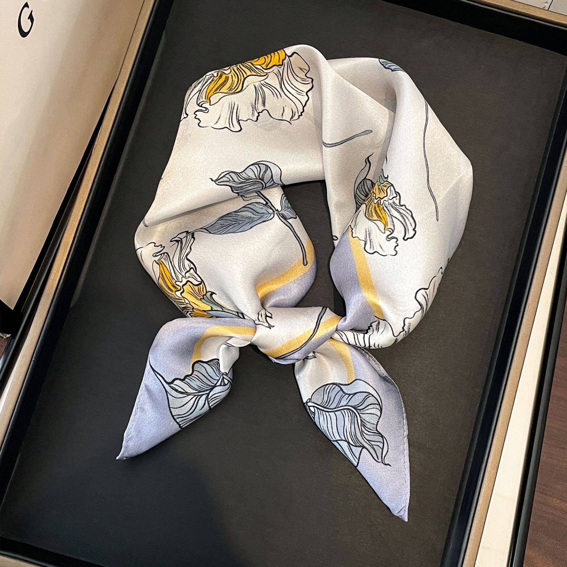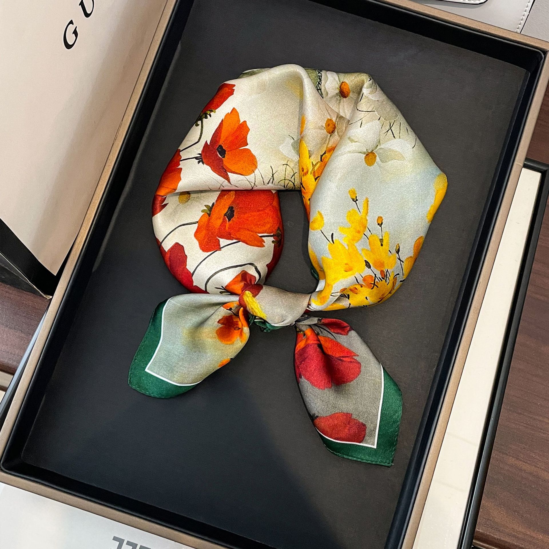 녹색 Guofeng 100% 뽕나무 실크 스카프 여성 고급 감각 실크 작은 광장 스카프 선물 스카프 봄과 가을 스카프 목도리스토어 가기