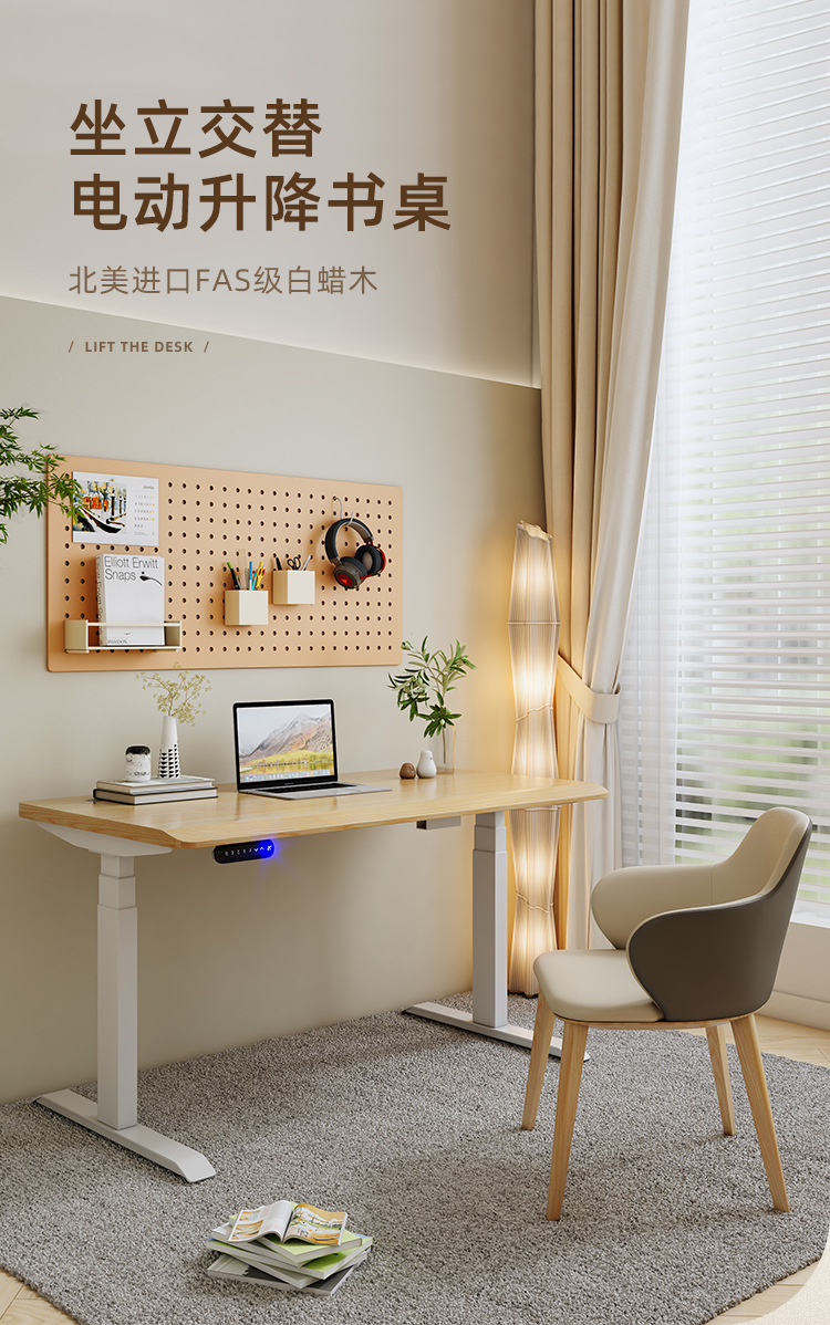 전기 리프팅 컴퓨터 데스크 애쉬 우드 데스크 멀티 높이 조절 가능한 책상 솔리드 우드 어린이 학습 책상