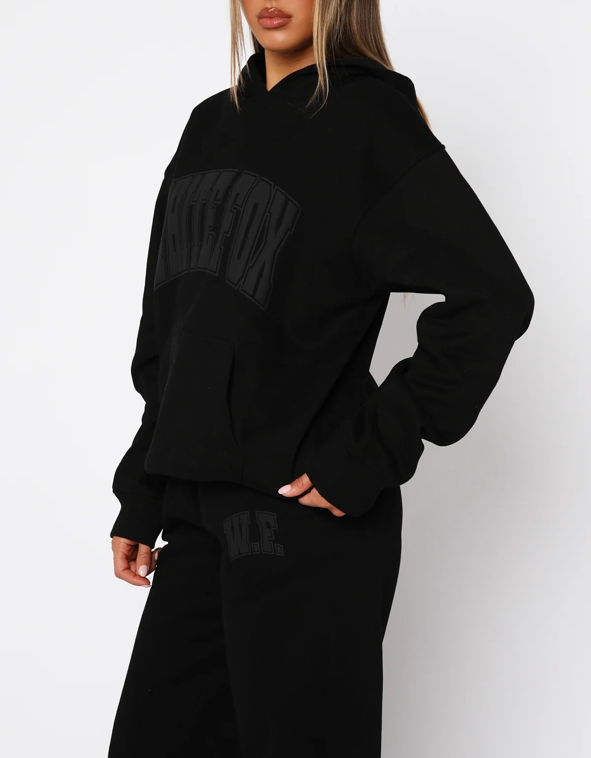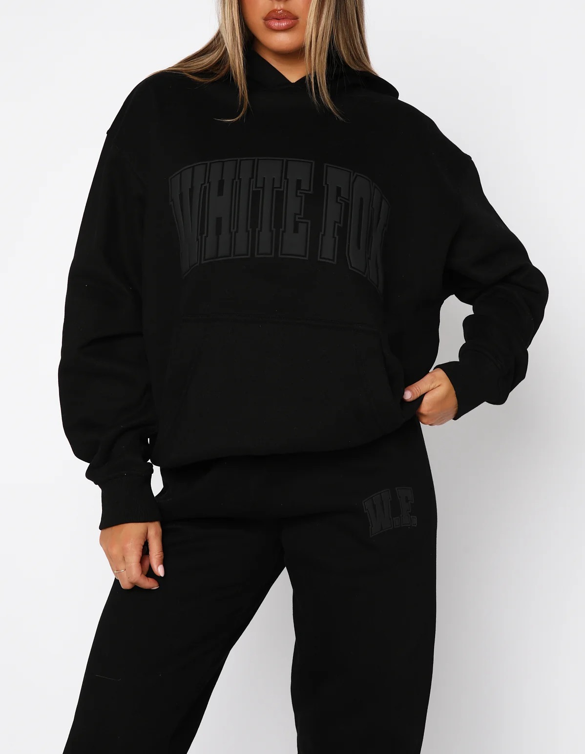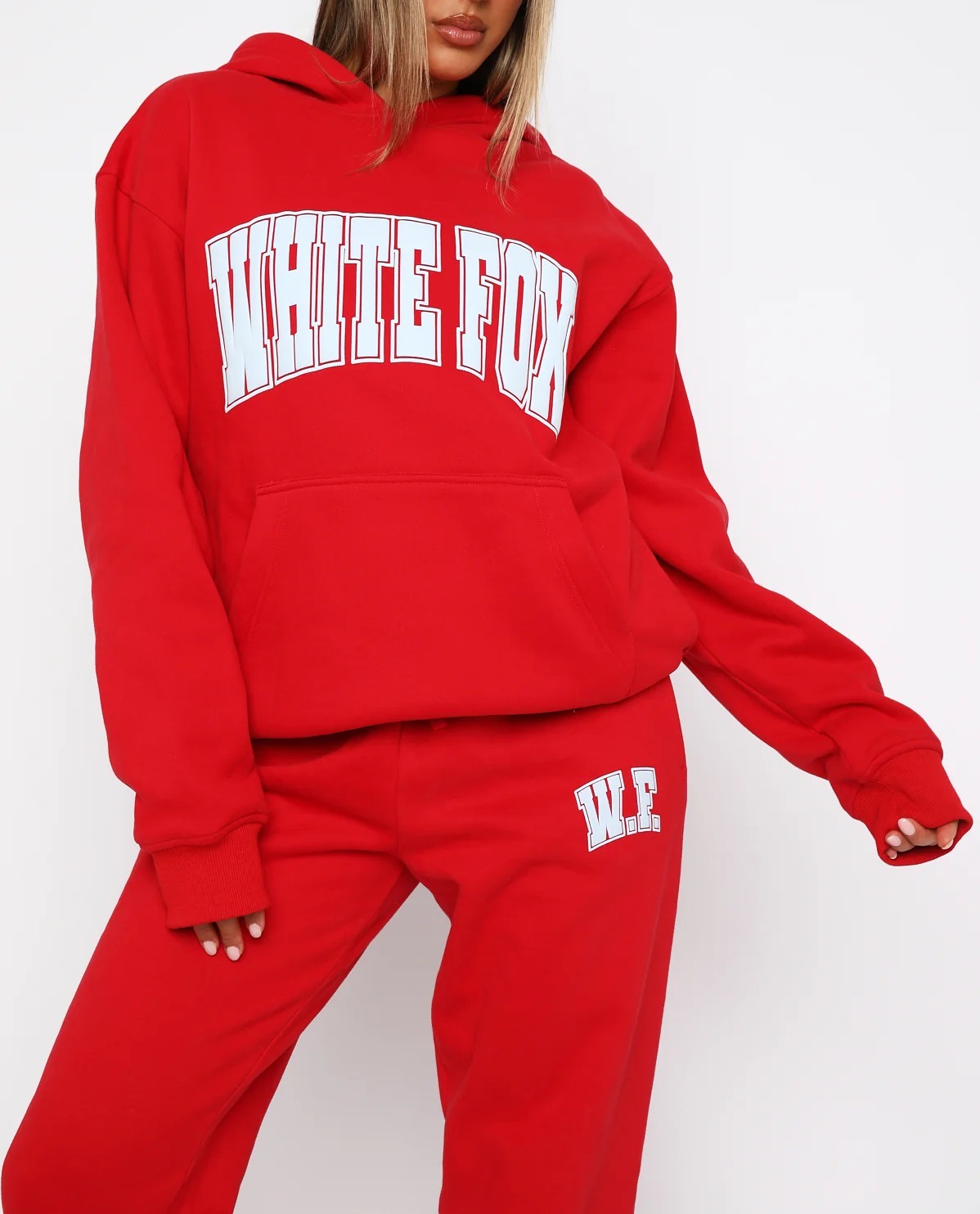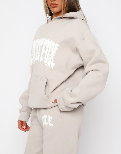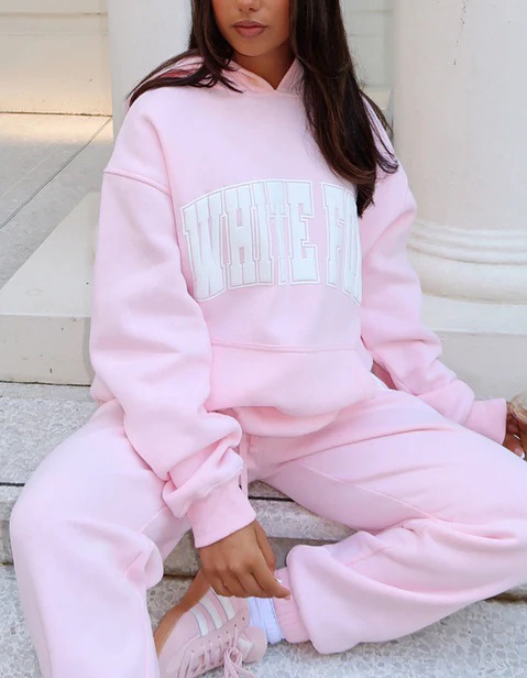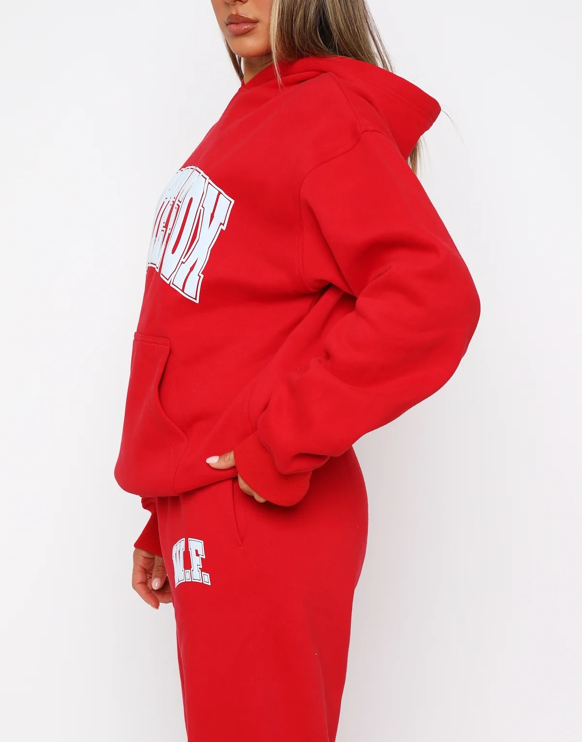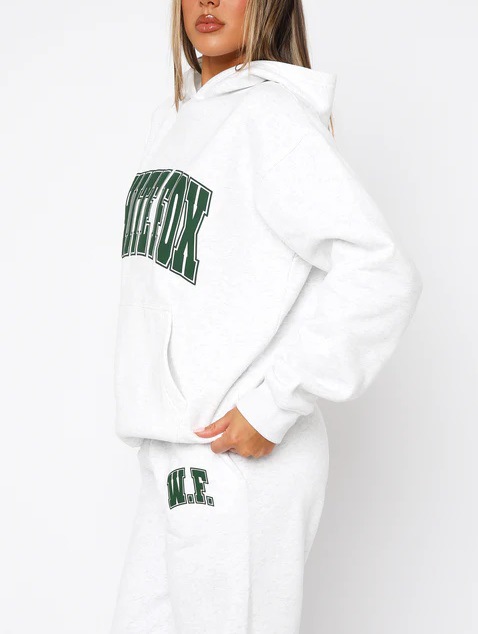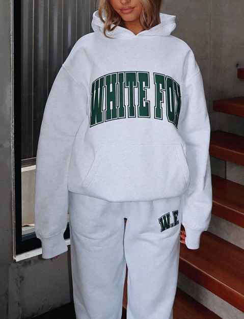 유럽과 미국의 국경 간 2025 가을 겨울 새로운 여성 패션 스웨트 슈트 편지 인쇄 긴팔 풀오버 후드 투피스 세트스토어 가기