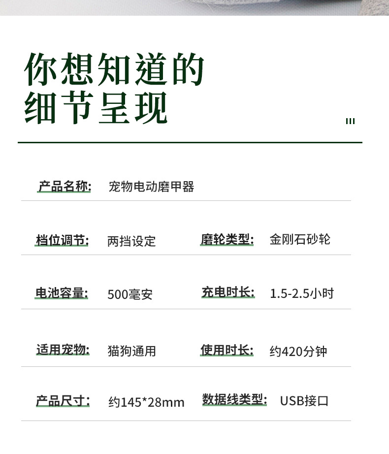 • #애완동물 전동 손톱깎이 [그린] (영문 포장)