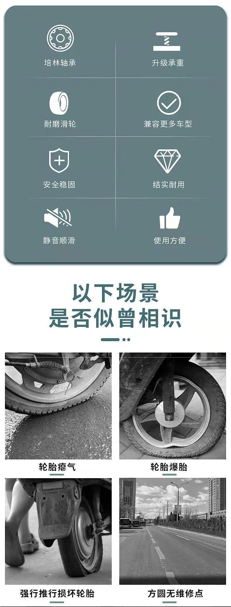 전기 오토바이 타이어 버스트 자체 구조 트레일러 2-세발 자전거 플랫 타이어 버스트 타이어 비상 보조 승마 타이어 부스터스토어 가기