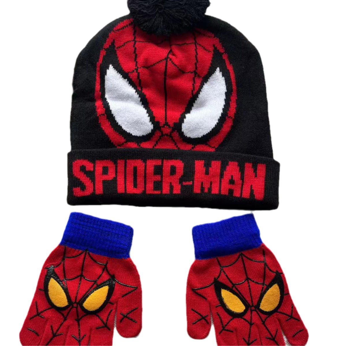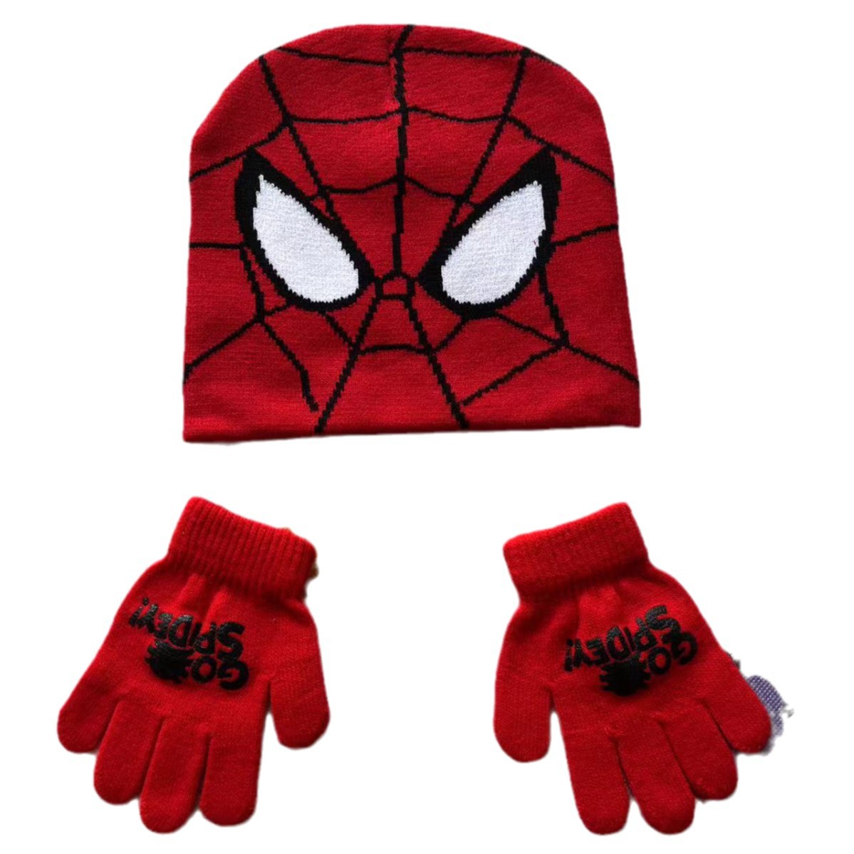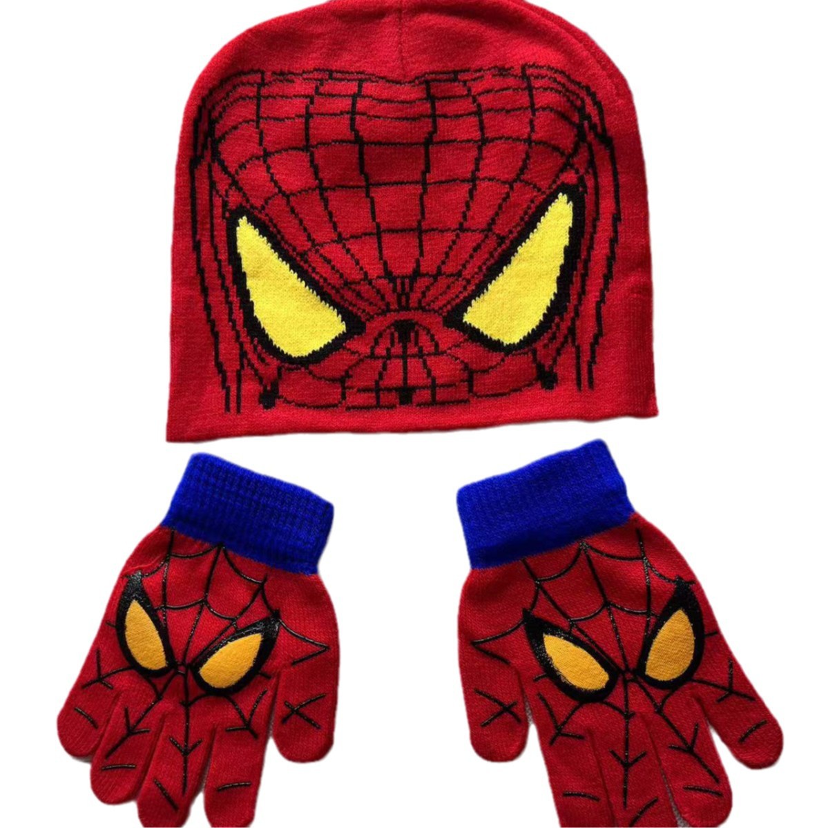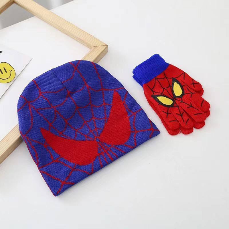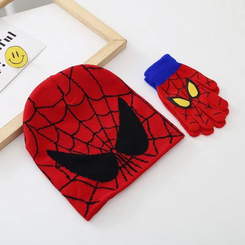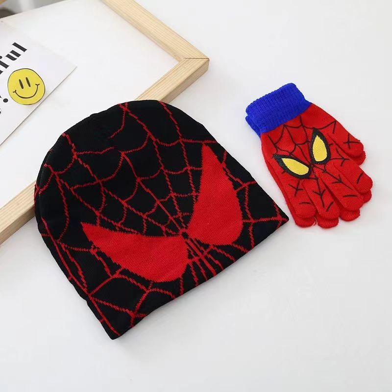 새로운 스파이더 맨 니트 모자 장갑 어린이 만화 가을과 겨울 따뜻한 세트 야외 스케이트 놀이 눈 울 모자