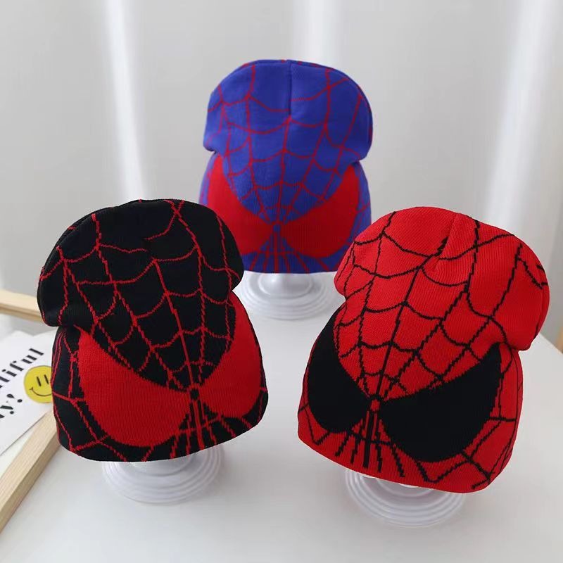 새로운 스파이더 맨 니트 모자 장갑 어린이 만화 가을과 겨울 따뜻한 세트 야외 스케이트 놀이 눈 울 모자스토어 가기