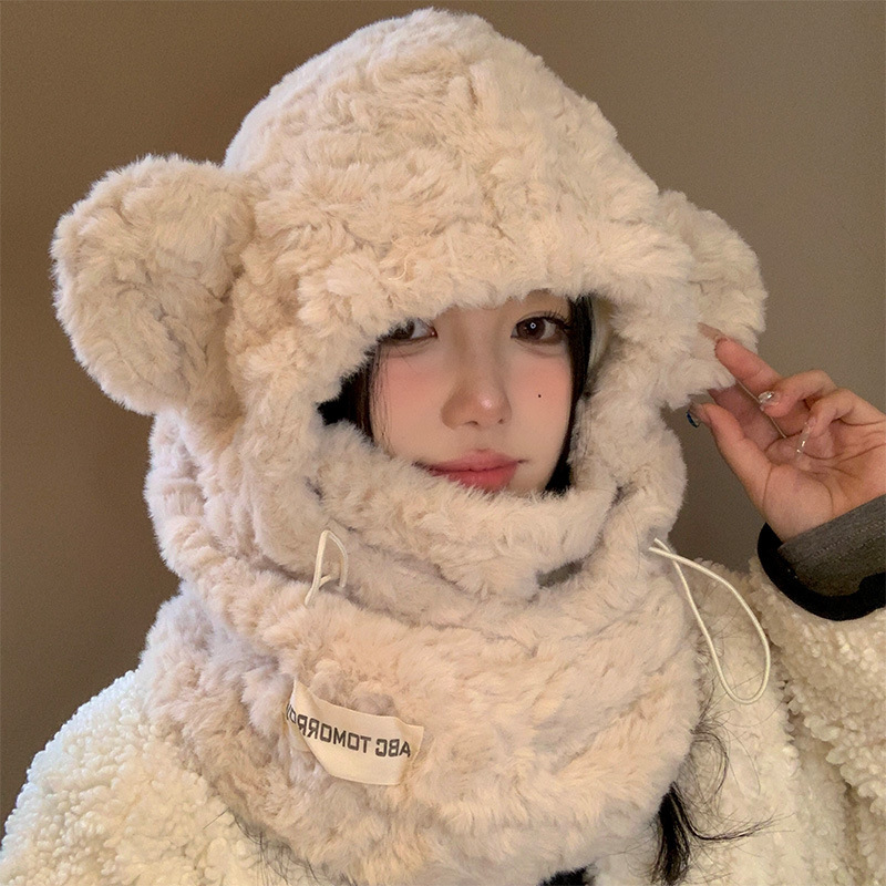 두꺼운 귀여운 곰 귀 모자 마스크 원피스 따뜻한 자모 풀리 모자 겨울 올 매치 사이클링 냉장 모자스토어 가기