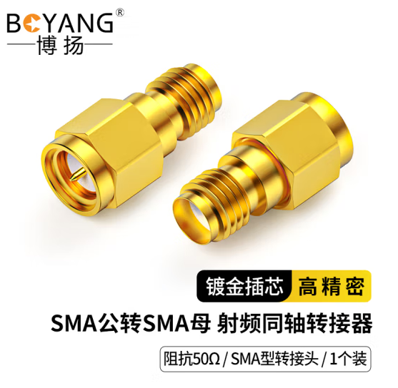博扬 高频射频同轴转接器50欧 SMA公转SMA母转换器 SMA型转接头 1个装 BY-SMA-JK
