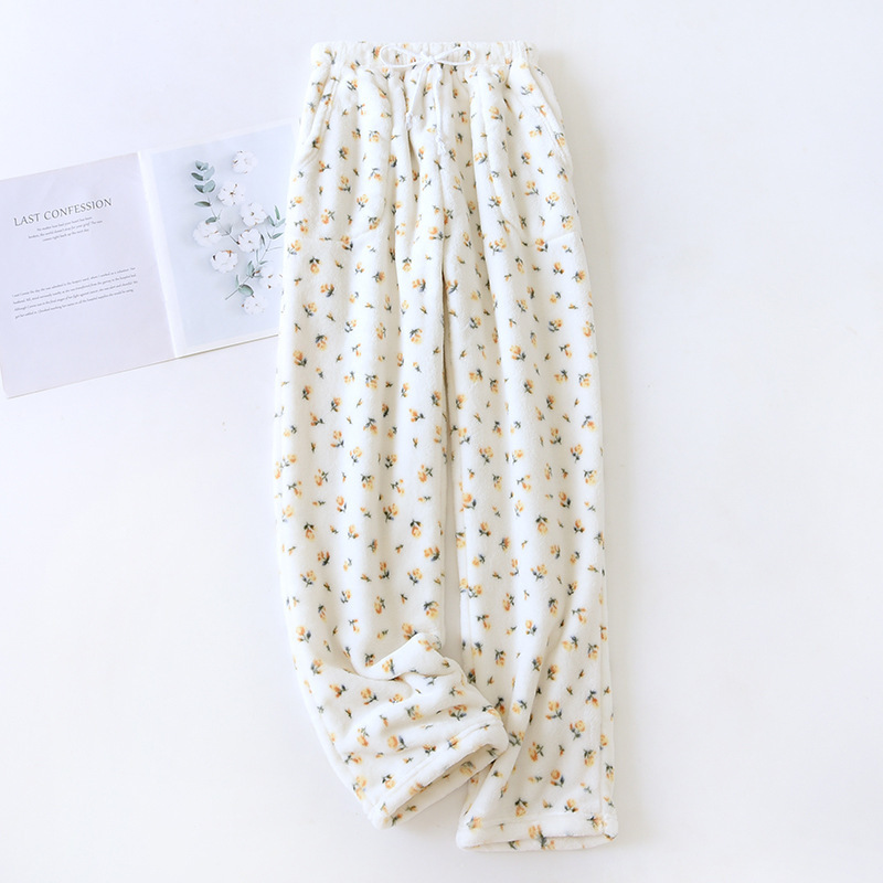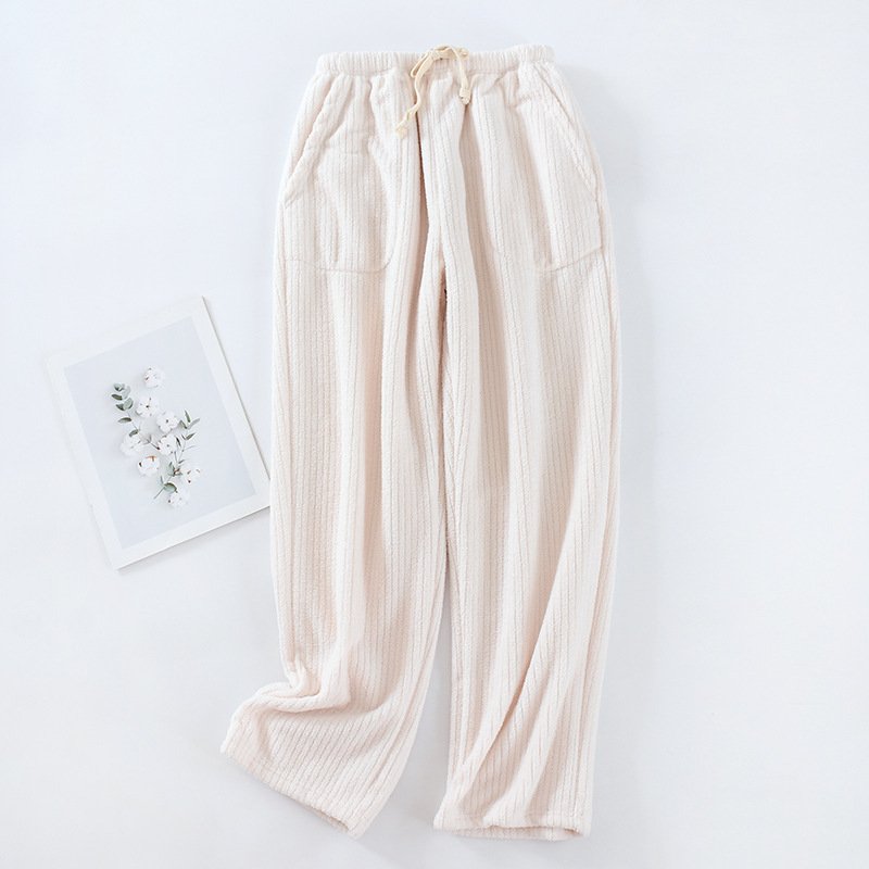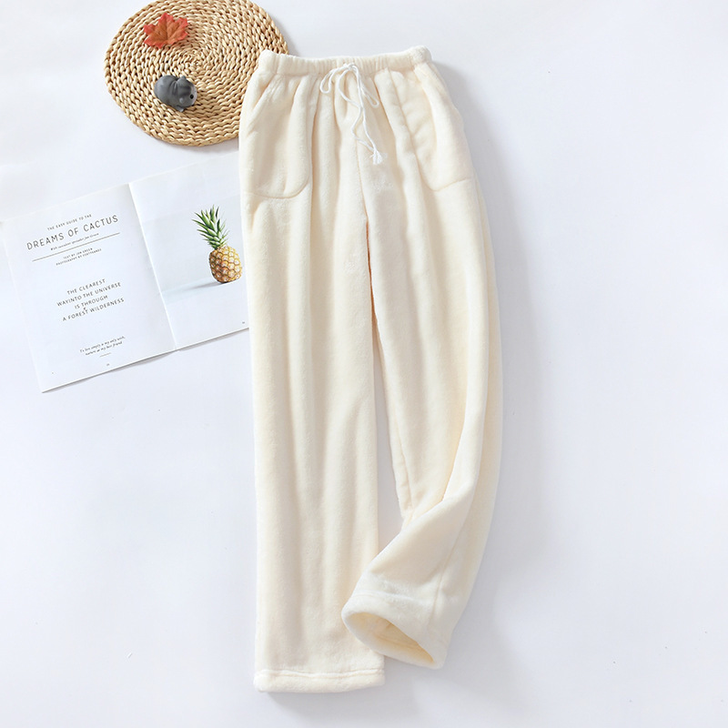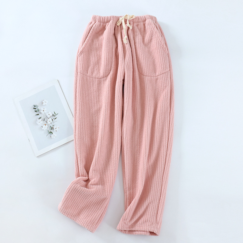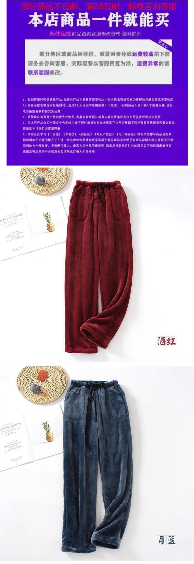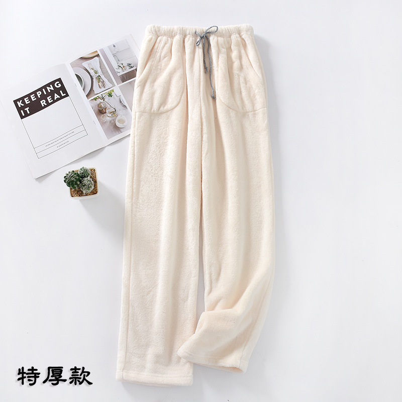 두꺼운 플란넬 바지 여성용 가을/겨울 파자마 바지 홈 느슨한 플러스 사이즈 스트레이트 플랫 탑 플랫 레그 산호 양털 홈 바지