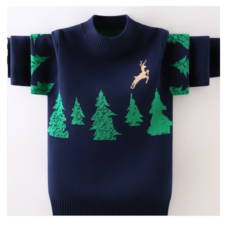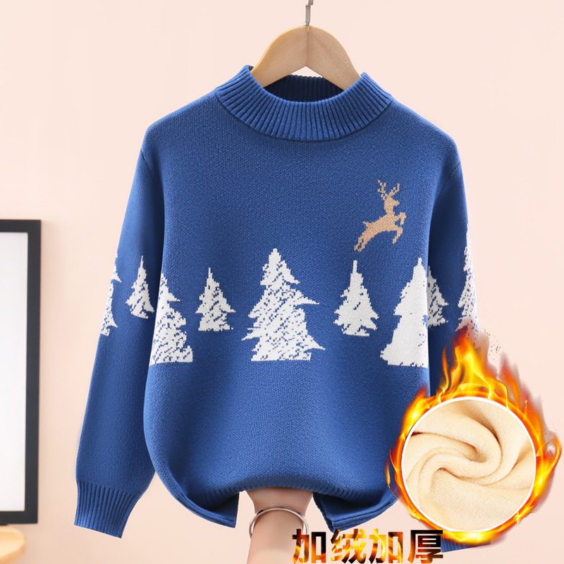 남학생용 두꺼운 니트 스웨터 2025년 신상 가을 겨울 순면 플리스 스웨터 학생용 대학 스타일