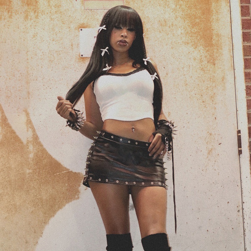 가을 2024 새로운 유행 바위 단색 디자인 센스 장식 타이트 피규어 가죽 스커트스토어 가기
