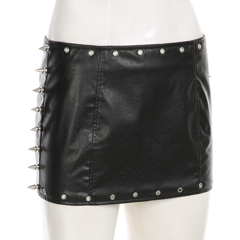 가을 2024 새로운 유행 바위 단색 디자인 센스 장식 타이트 피규어 가죽 스커트