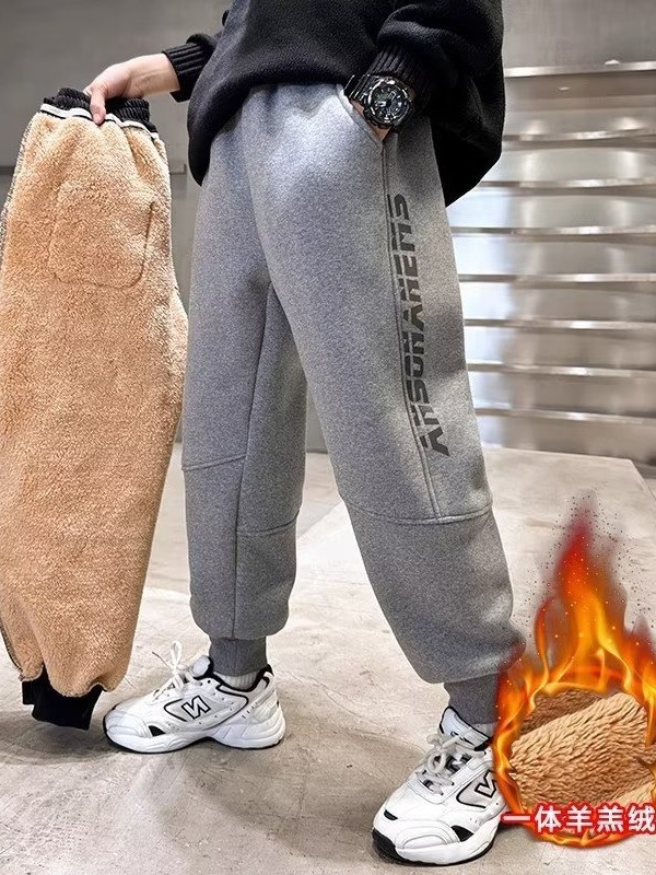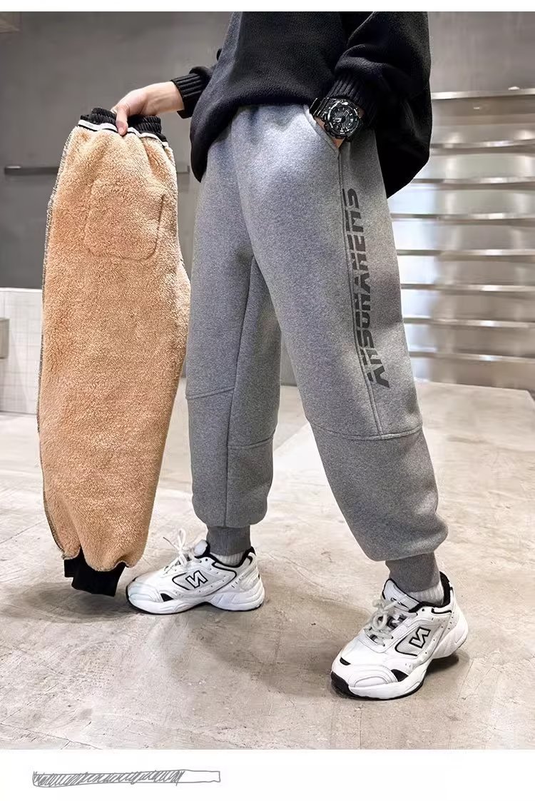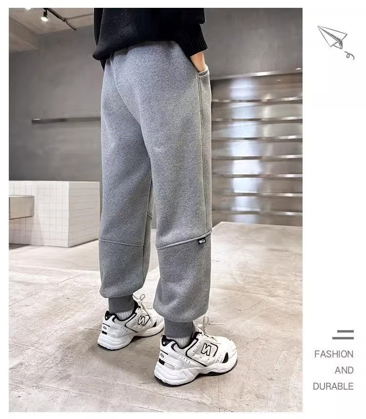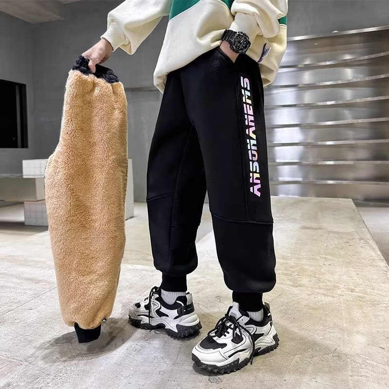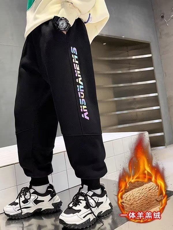 어린이 착용 소년 패션 유행 바지 가을 겨울 2024 새로운 기모 큰 아이들 따뜻한 올 매치 긴 바지스토어 가기