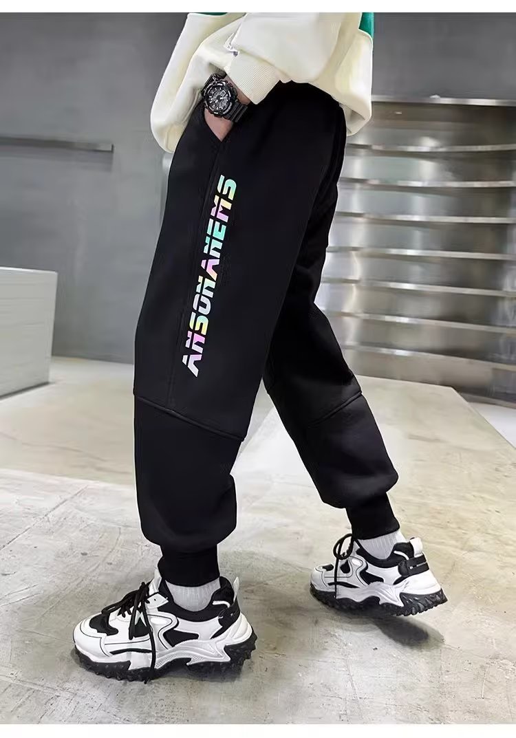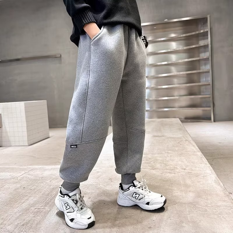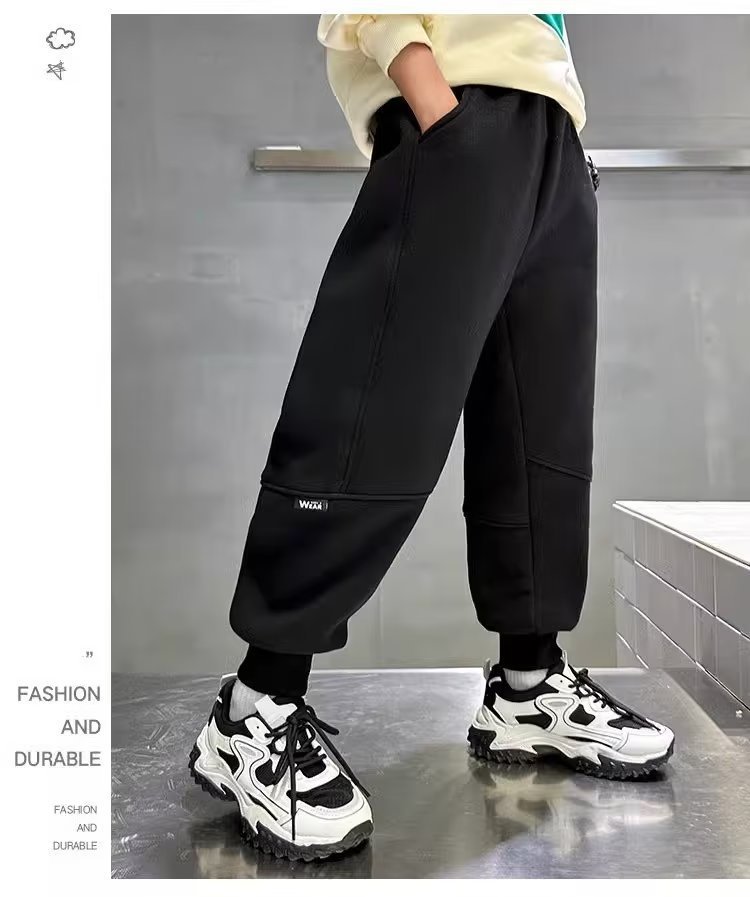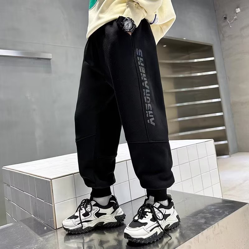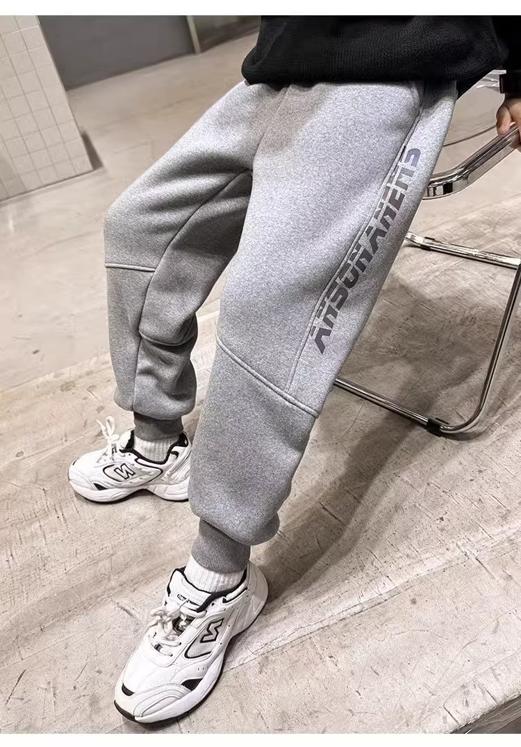 어린이 착용 소년 패션 유행 바지 가을 겨울 2024 새로운 기모 큰 아이들 따뜻한 올 매치 긴 바지스토어 가기