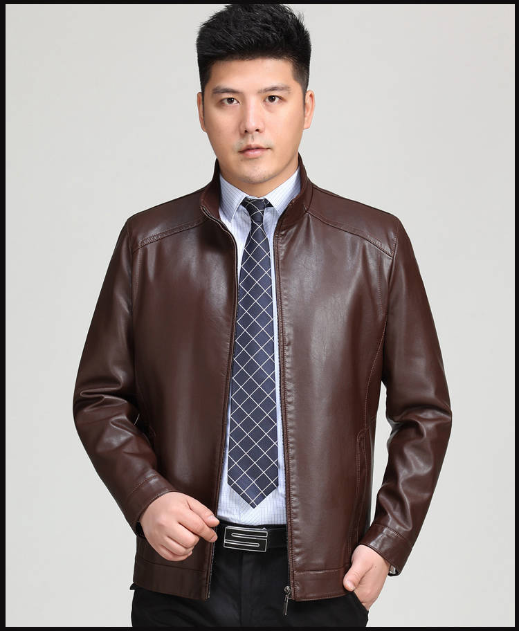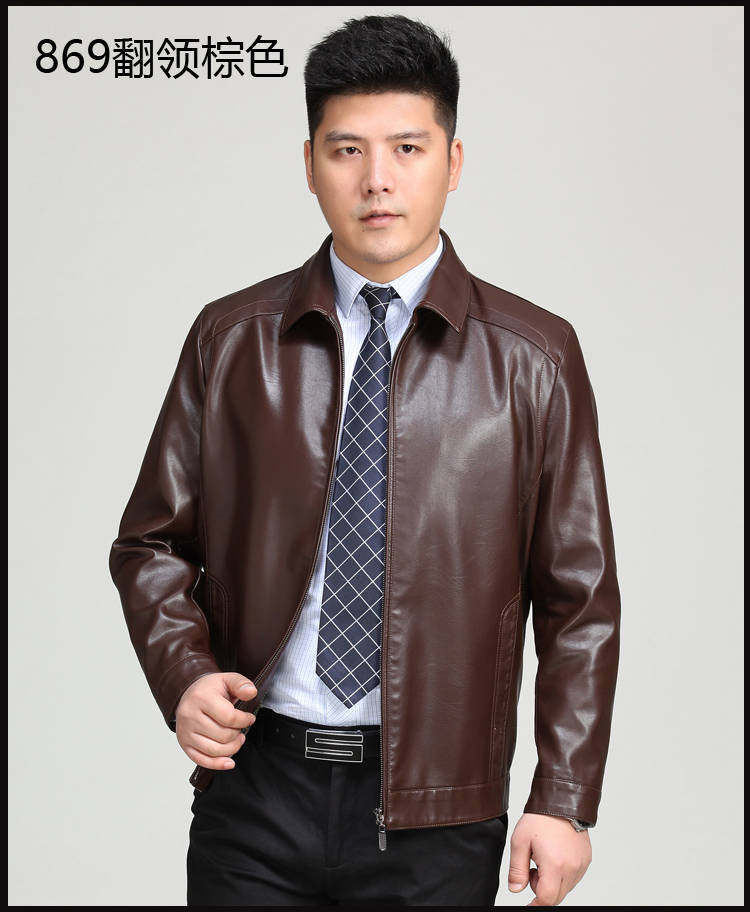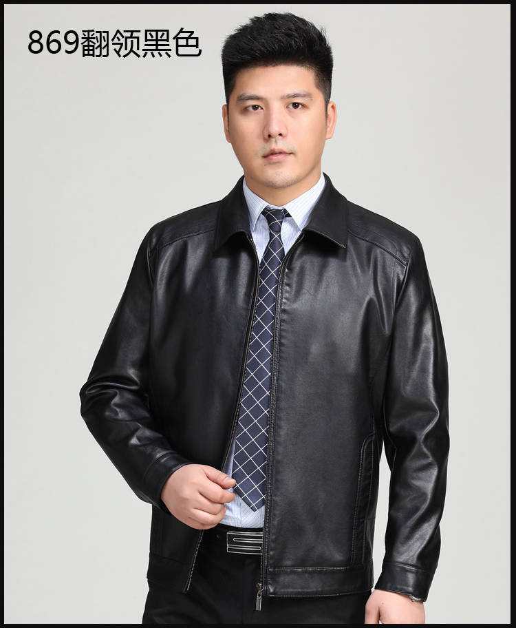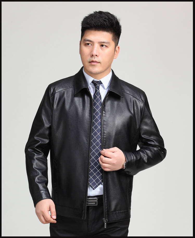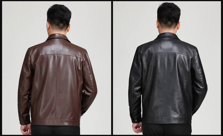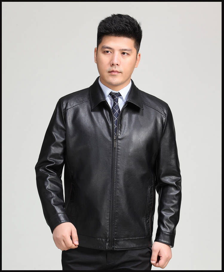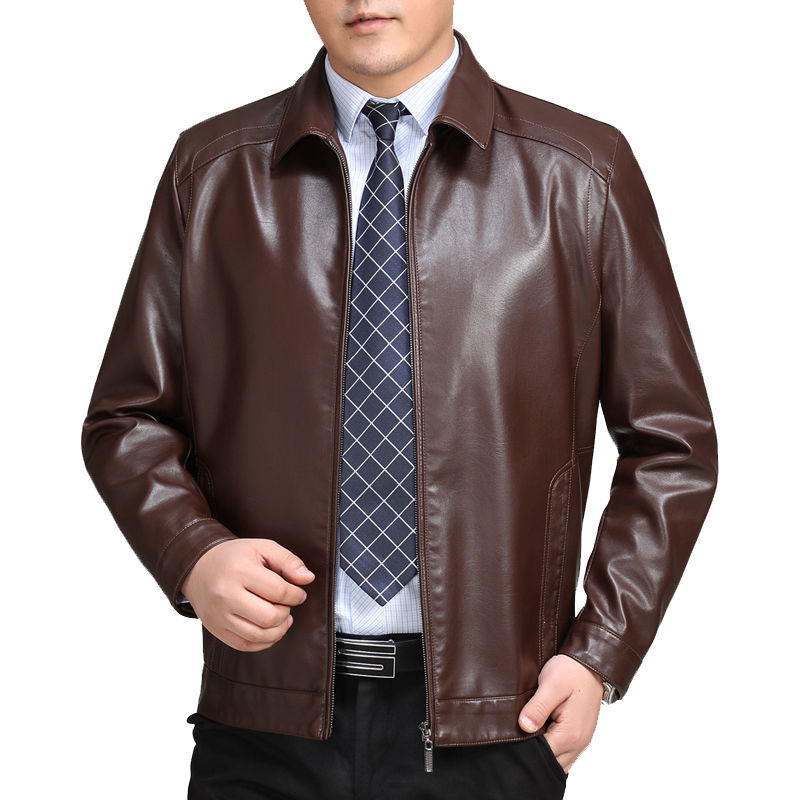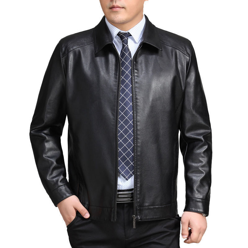 해닝 최고급 가죽 재킷 남성 중장년 아빠용 얇은 가죽 자켓 라펠 봄 가을 코트 트렌디