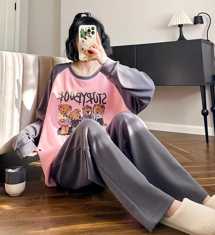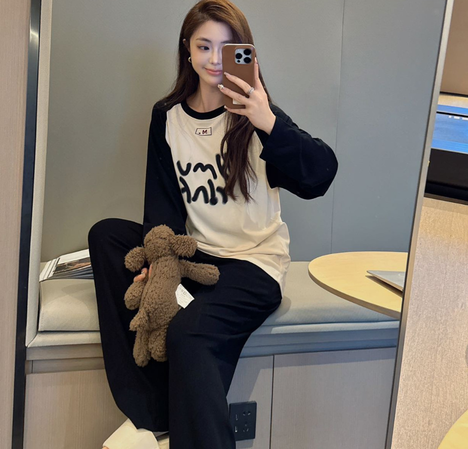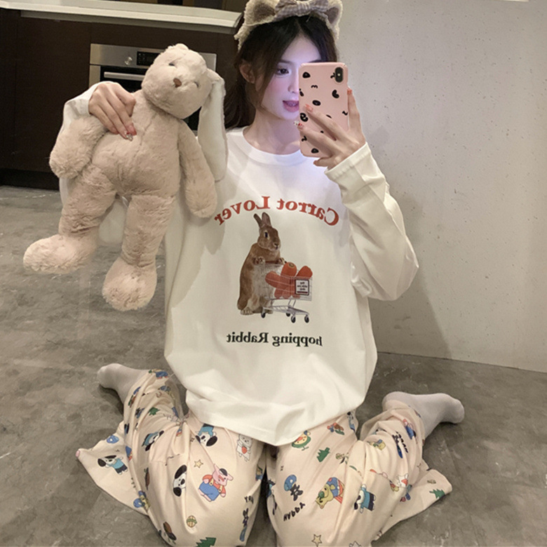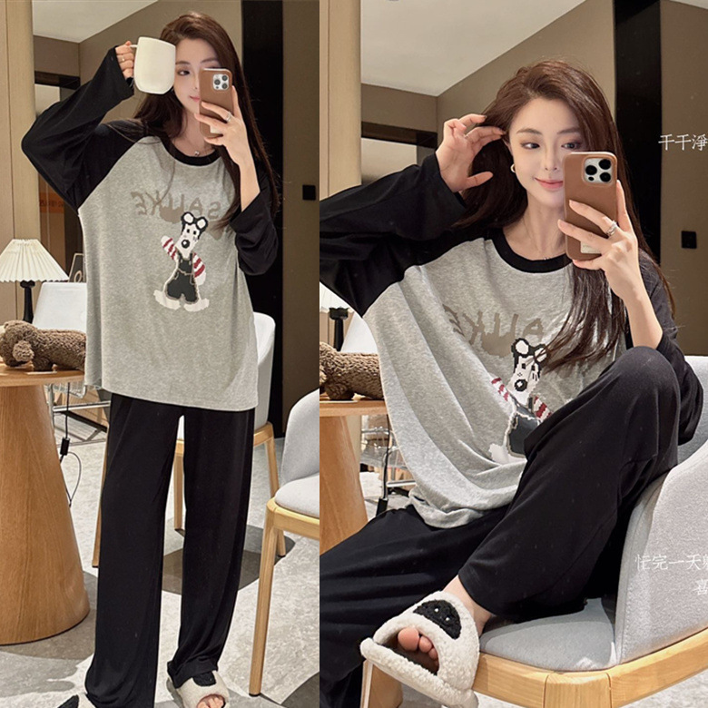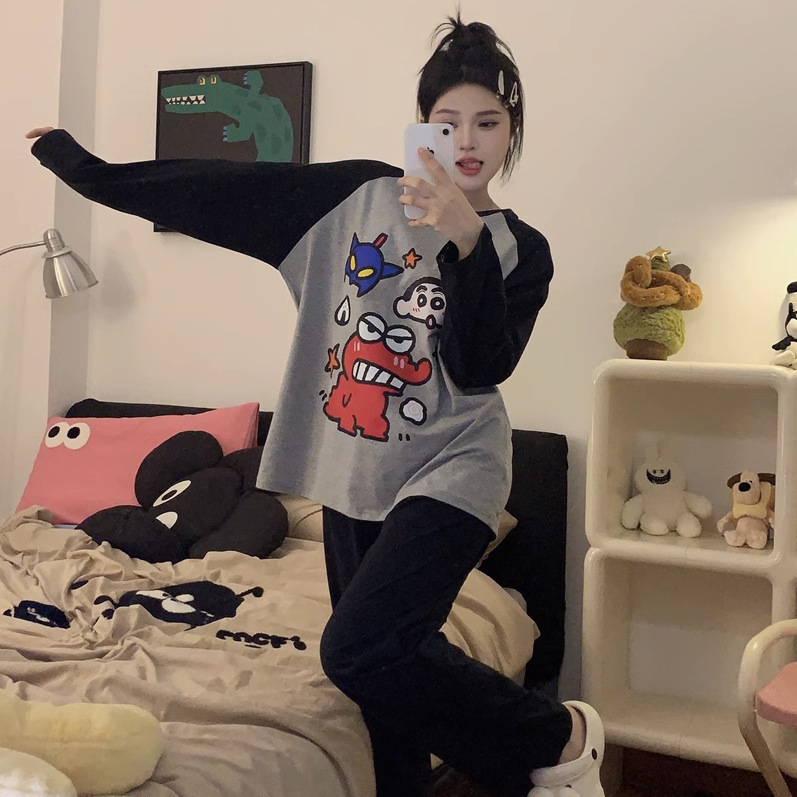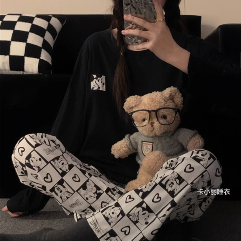 2023 새로운 봄과 가을 캐주얼 긴 소매 만화 잠옷 한국 간단한 가정 옷 세트스토어 가기