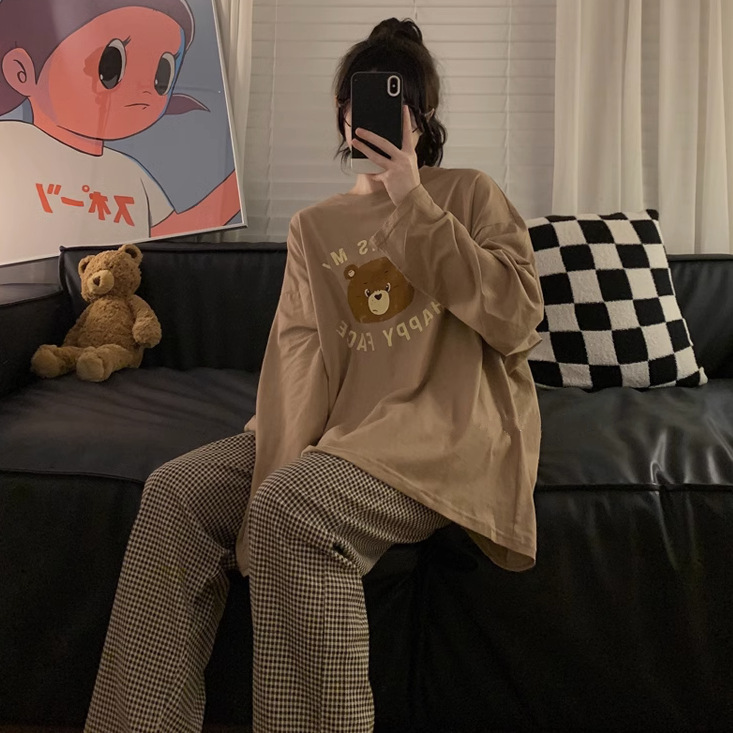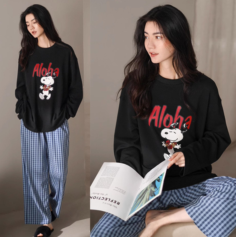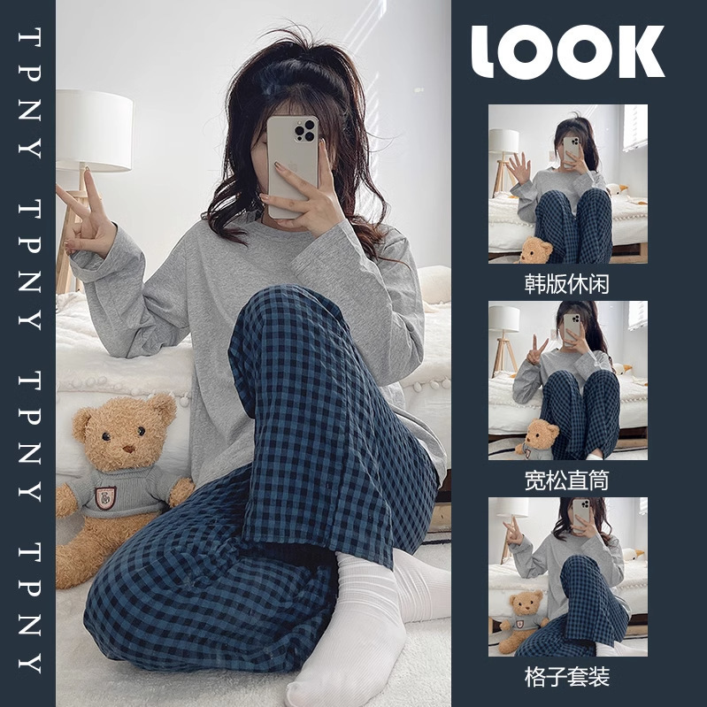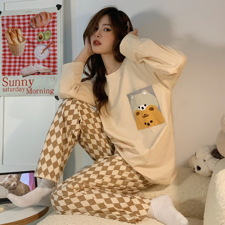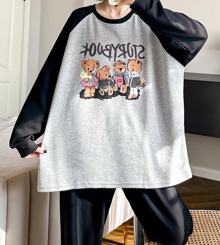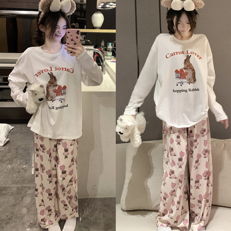 2023 새로운 봄과 가을 캐주얼 긴 소매 만화 잠옷 한국 간단한 가정 옷 세트스토어 가기
